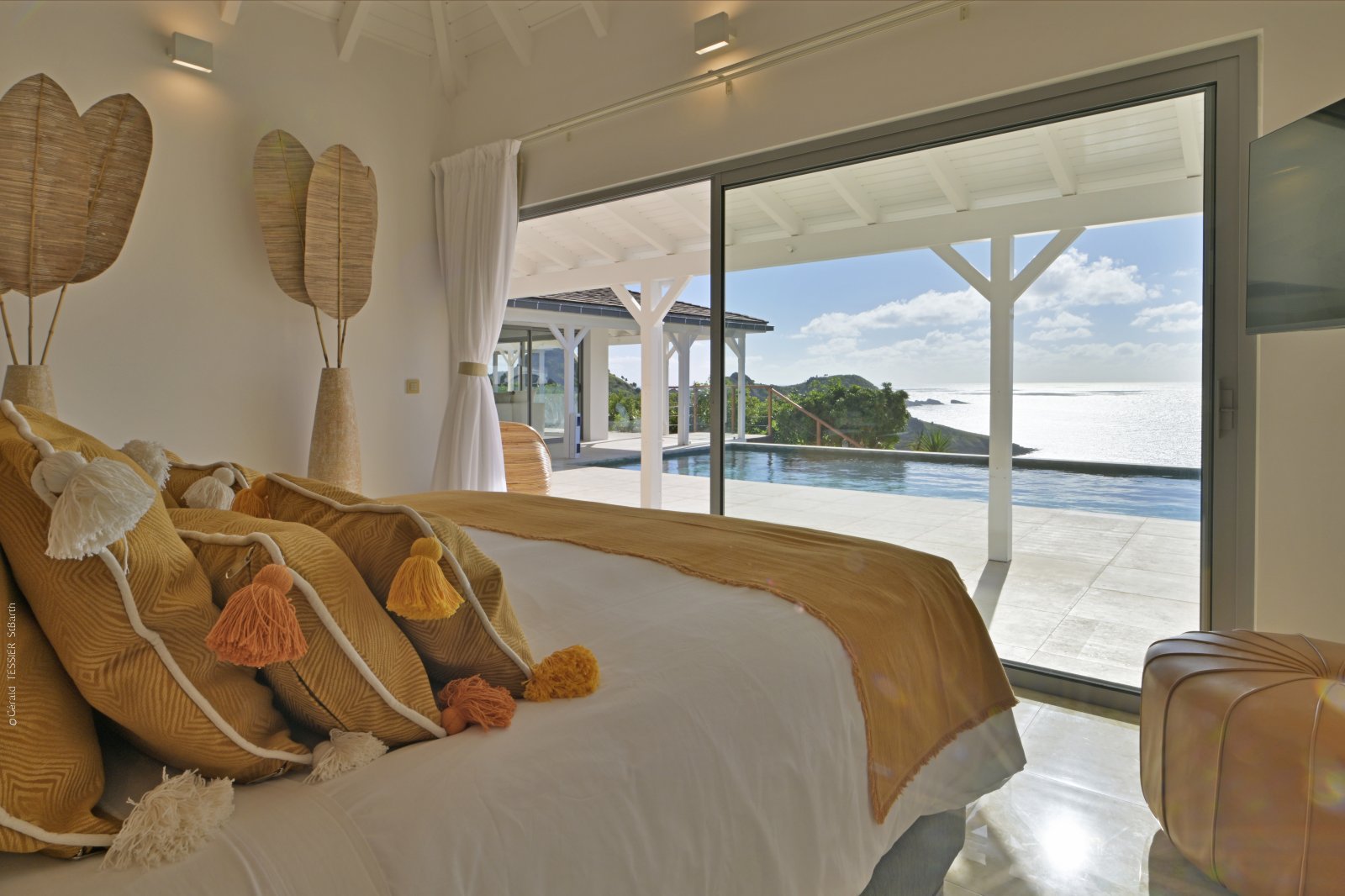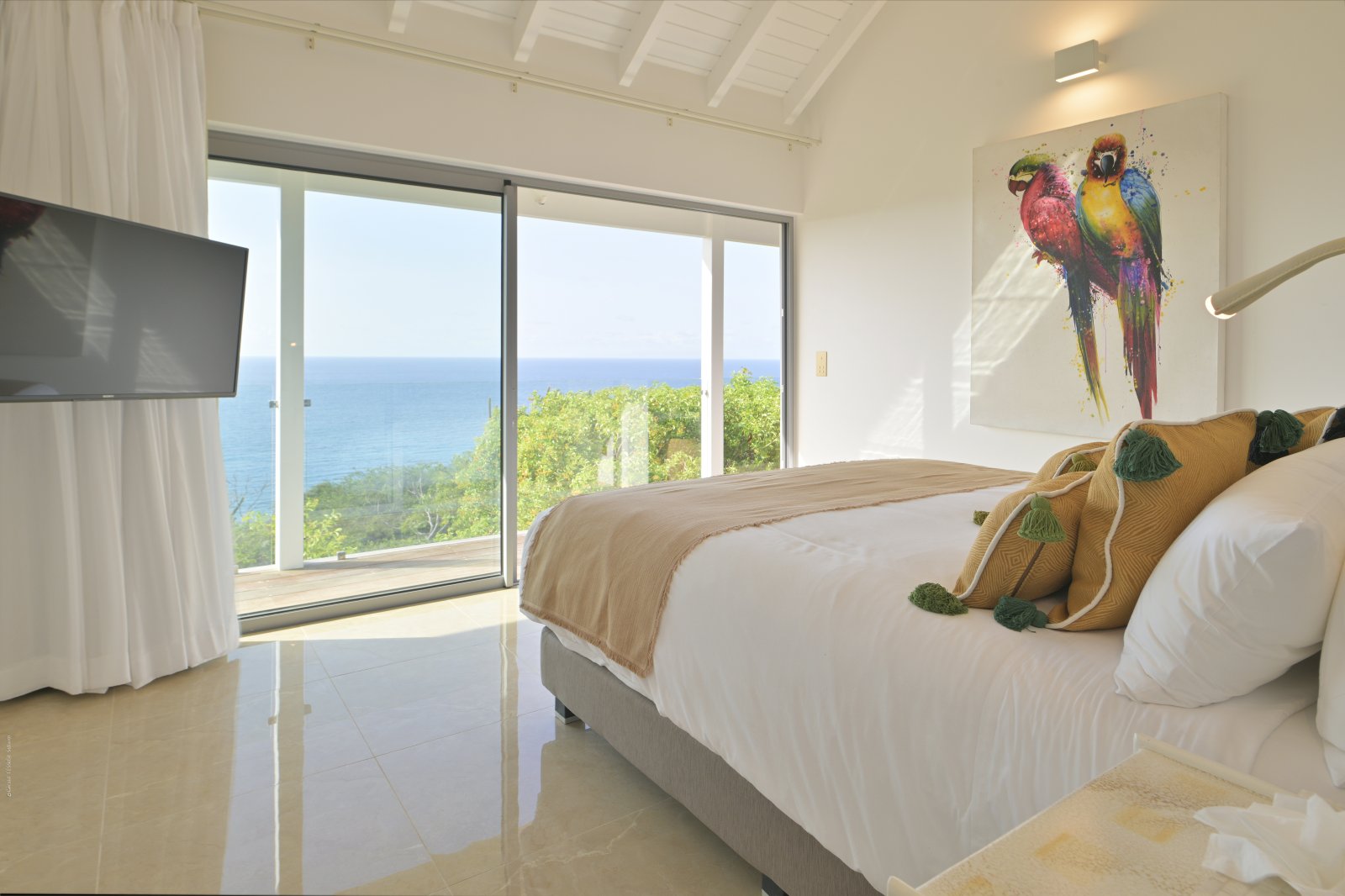 Bed: King Bed • En-Suite Bath with Rainfall Shower, Hair Dryer and Dual Vanity • High Definition TV • Air Conditioning • Safe • Direct Access to Deck and Pool • Ocean View