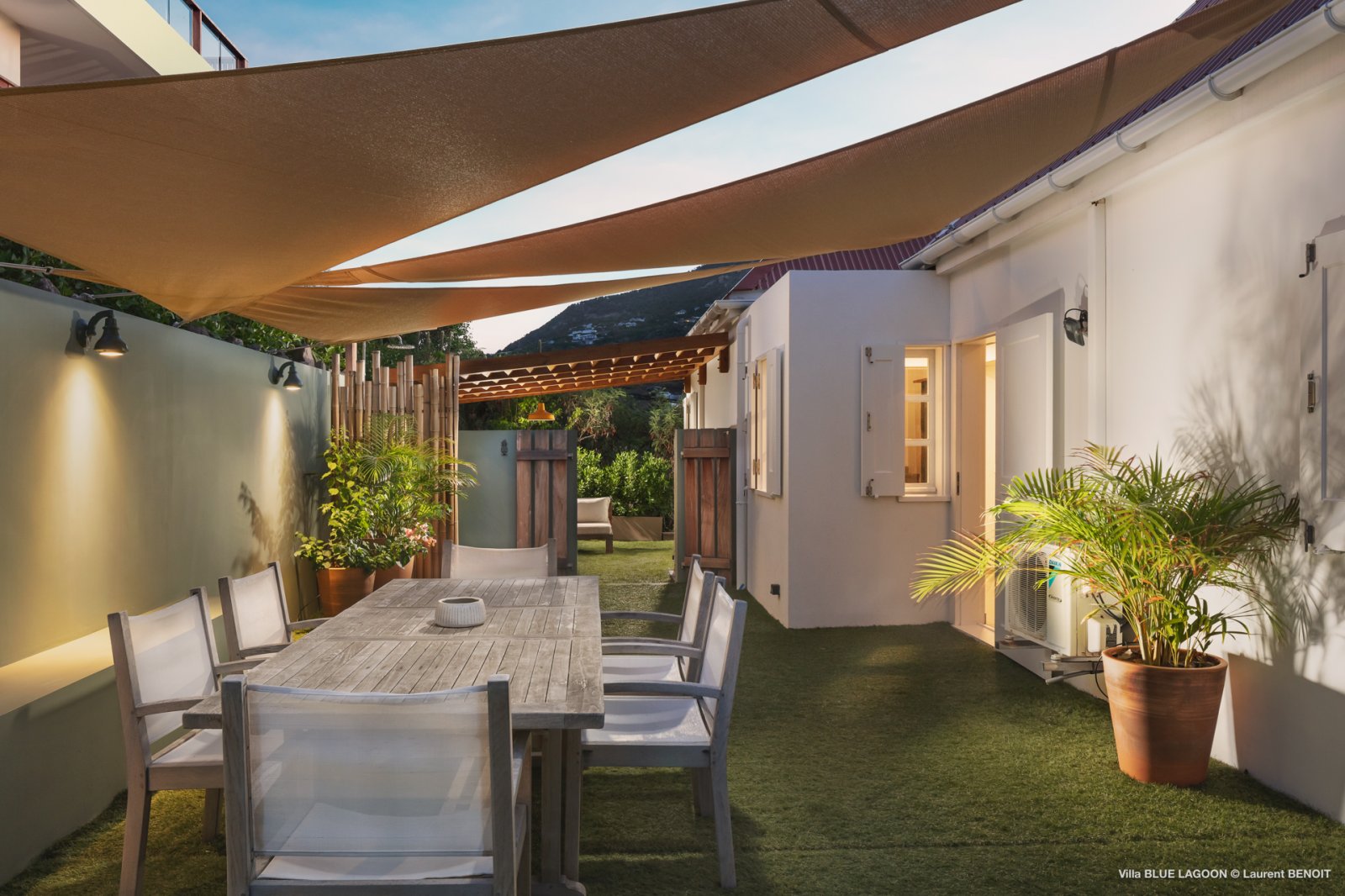 In addition to the terrace with lagoon views, Blue Lagoon also features a private backyard with a dining table and a relaxed outdoor lounge area – perfect for slow mornings, shaded meals, or evening cocktails under the stars.