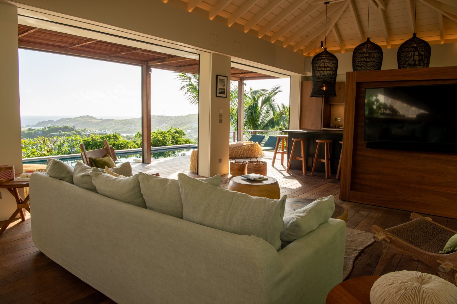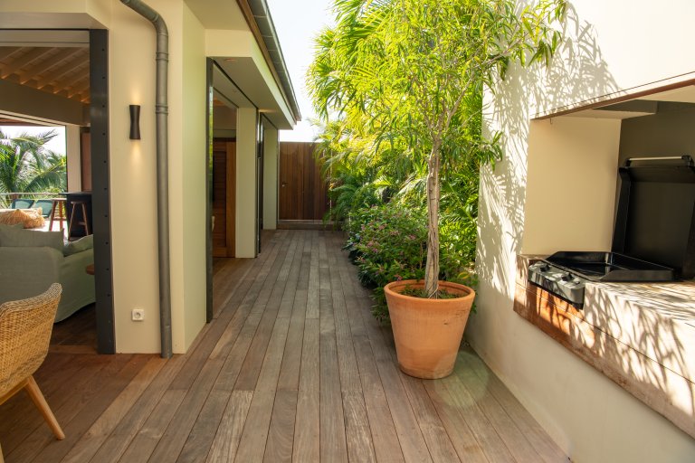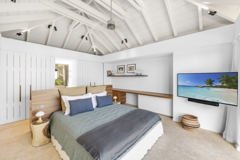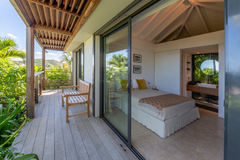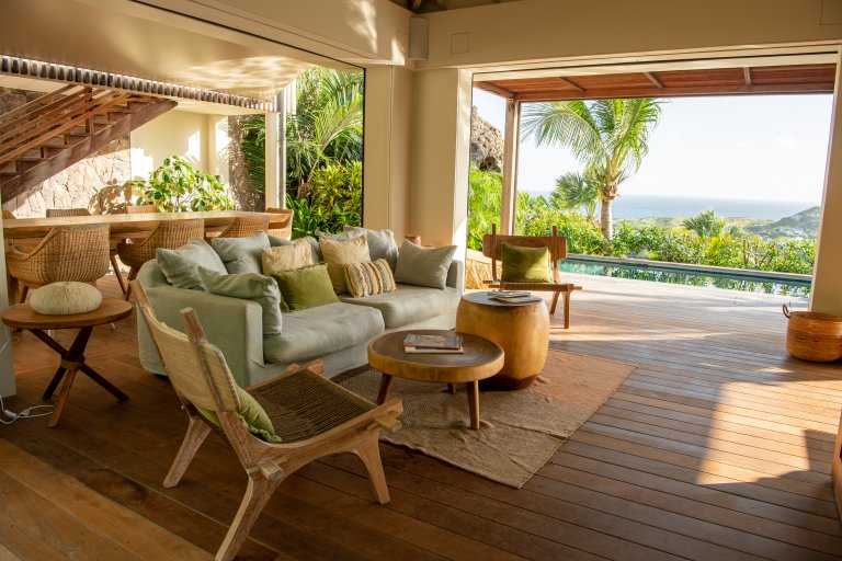 St. Barth style – pure and simple – is the defining feature of Villa Kaz, a newly built luxury rental property with a modern and comfortable feeling. Its high, vaulted ceilings and wide, retractable windows give it a sense of spaciousness and allow the Caribbean breezes to waft through. The terrace makes it ideal for indoor-outdoor living.