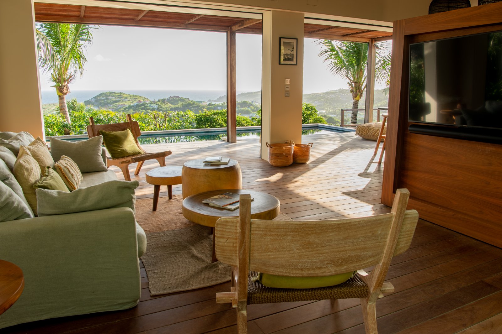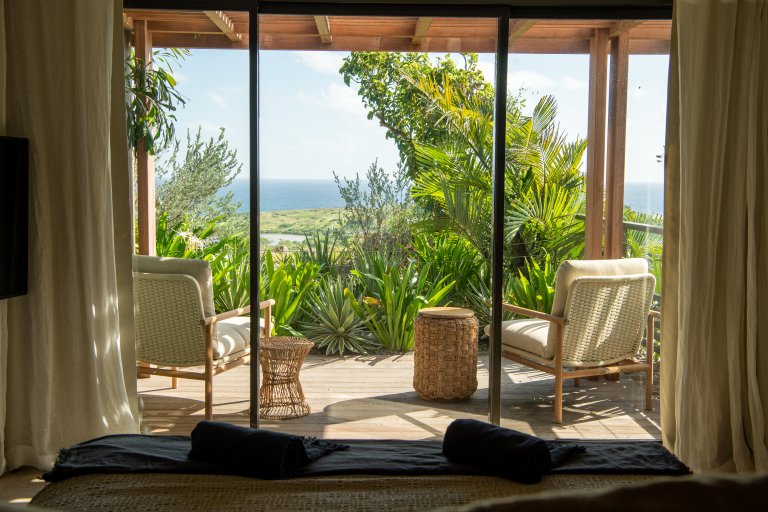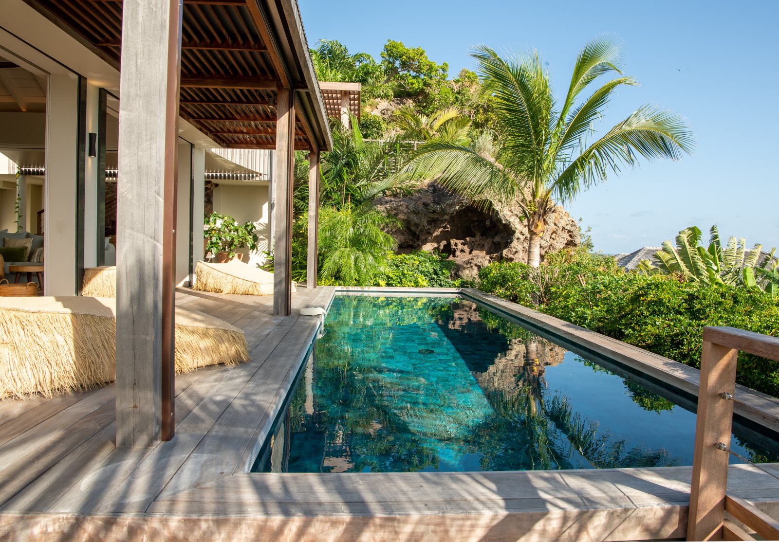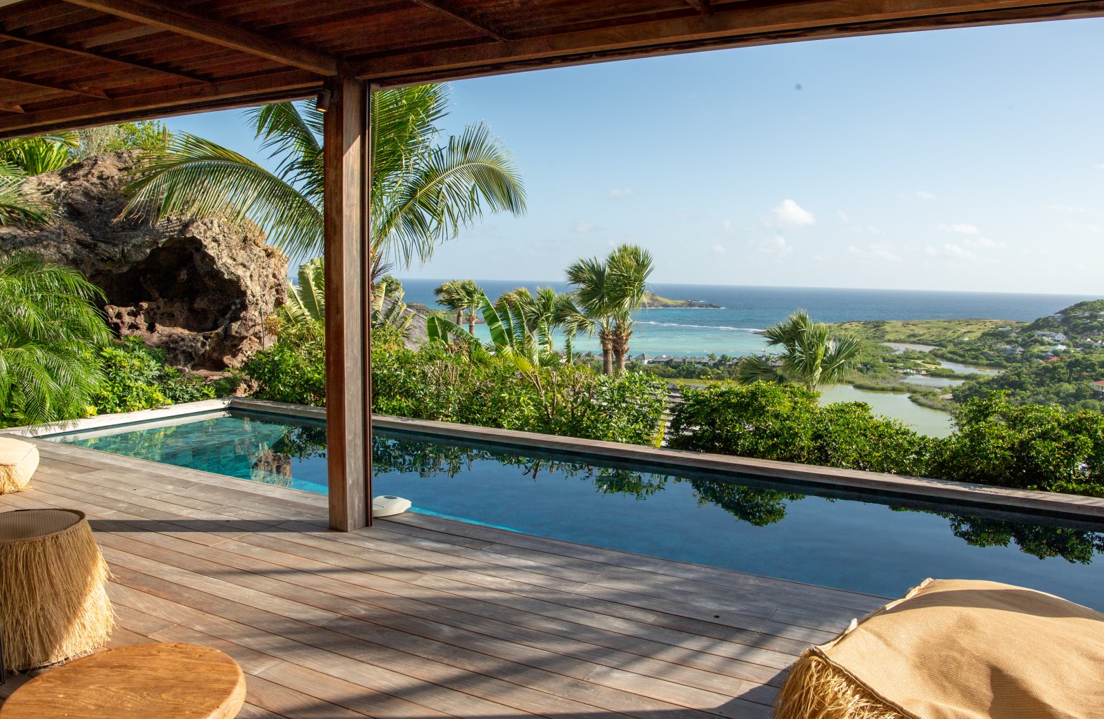 St. Barth style – pure and simple – is the defining feature of Villa Kaz, a newly built luxury rental property with a modern and comfortable feeling. Its high, vaulted ceilings and wide, retractable windows give it a sense of spaciousness and allow the Caribbean breezes to waft through. The terrace makes it ideal for indoor-outdoor living.