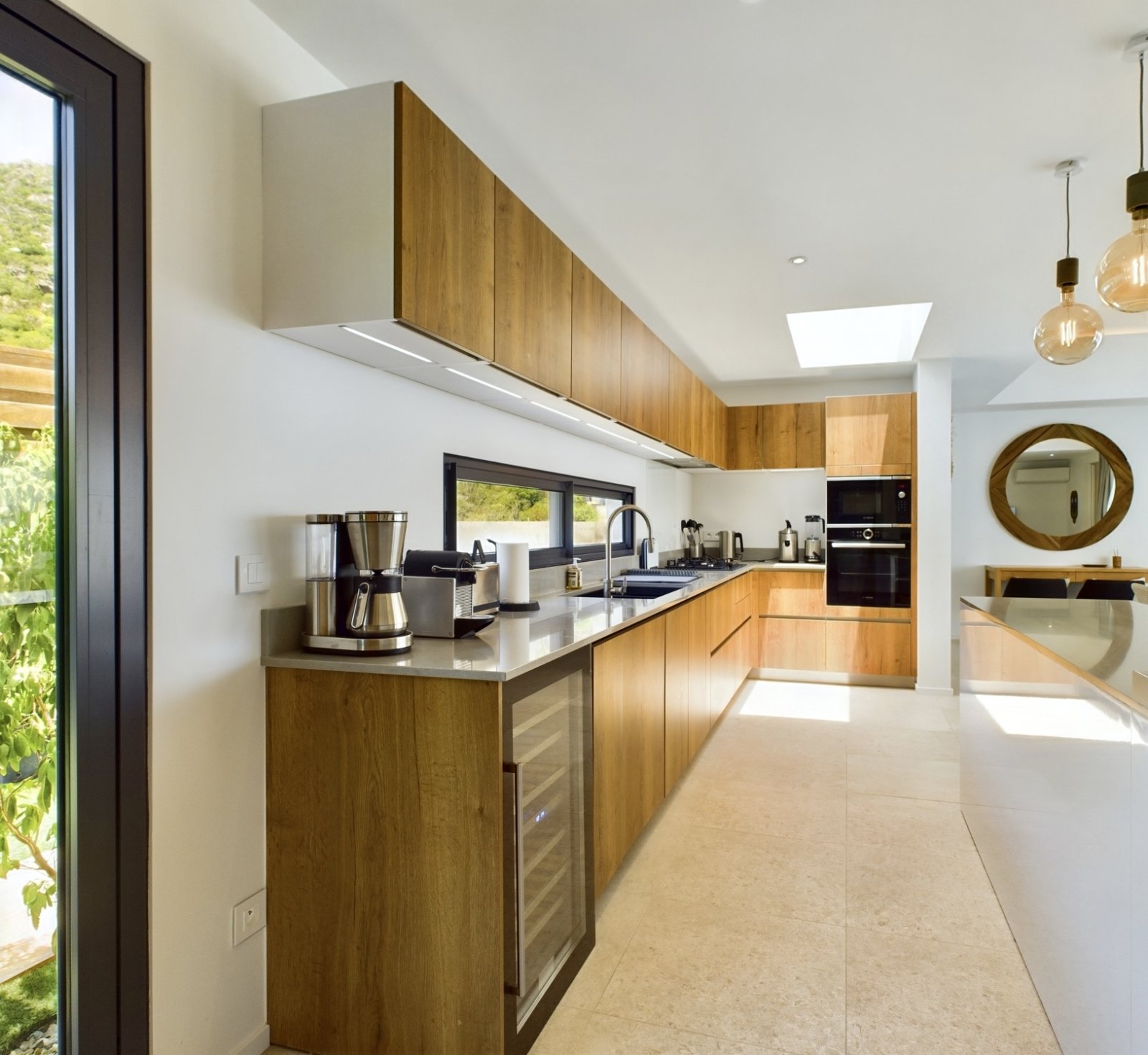 Near the water sports and beach restaurants of Grand Cul de Sac, the newly built Villa Ty Bihan (TYB) is an oasis for people who look for modern, comfortable, and simple ways of living while on their St. Barth holiday. At the same time, the luxury rental property is a haven for aquatic sports enthusiasts, as Grand Cul de Sac is one of the island’s prime spots for kayaking, paddle boarding, and kiting.