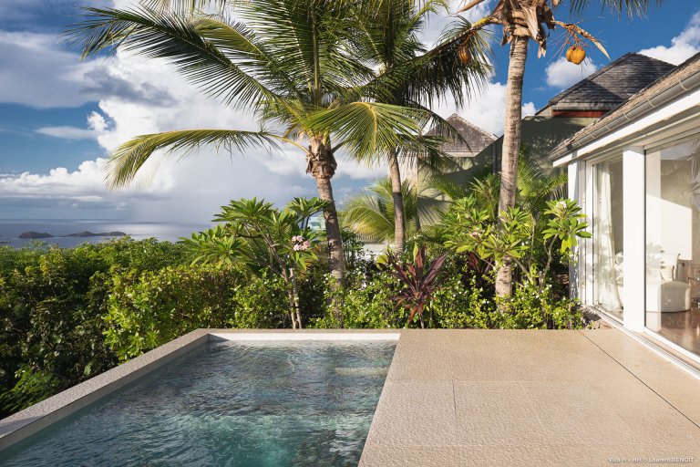 Set in the heights of Lurin, the newly built villa 3H has a 300-degree panoramic view over St. Jean and all the way to Saline. It is especially magnificent at sunset. Inside, the luxury rental property is no less stunning.