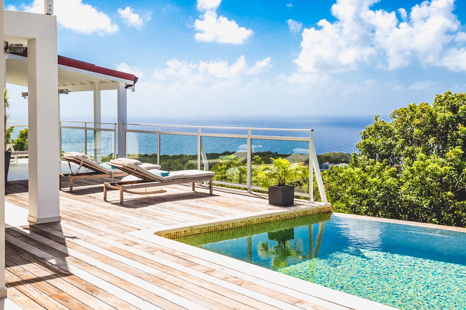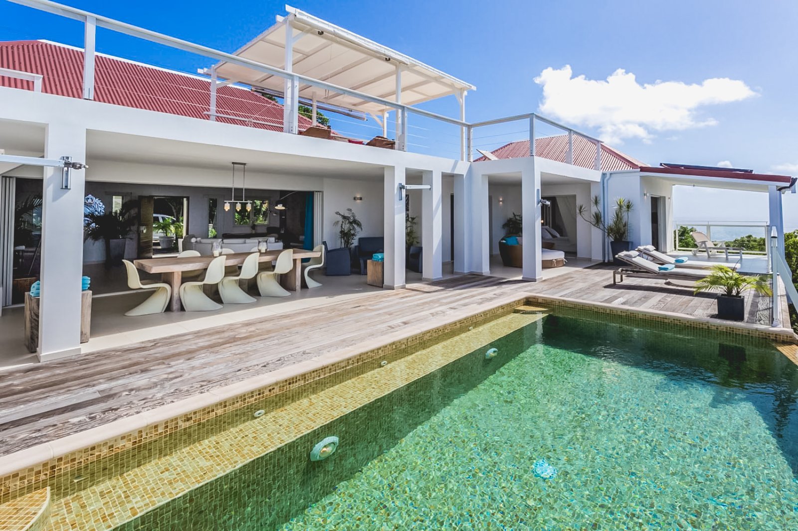 Located in Lurin, Villa Dasha (SHA) sits at the top of the hill facing the bay of Gouveneur, providing a great view over the Caribbean and the surrounding islands. The hardwood terrace with its glistening glass-tiled pool invites you to take a swim, relax and sunbathe while enjoying the sounds of the birds and the breeze. Villa Dasha is perfect for guests who are looking for privacy, quiet and proximity to Gustavia.