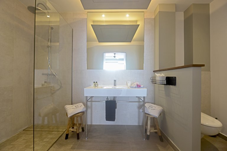 Bed: 2 Twin Beds w/Option as King Bed • En-Suite Bath with Walk-In Shower and Hair Dryer • Air Conditioning • Ceiling Fan • Safe • Additional Seating • Direct Access to Private Terrace • Ocean View