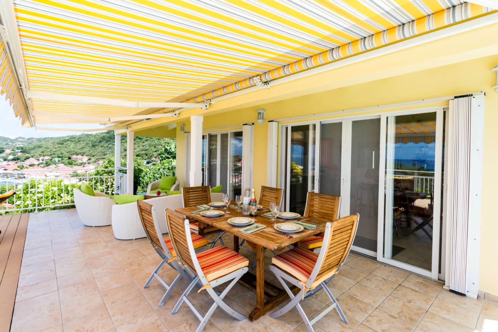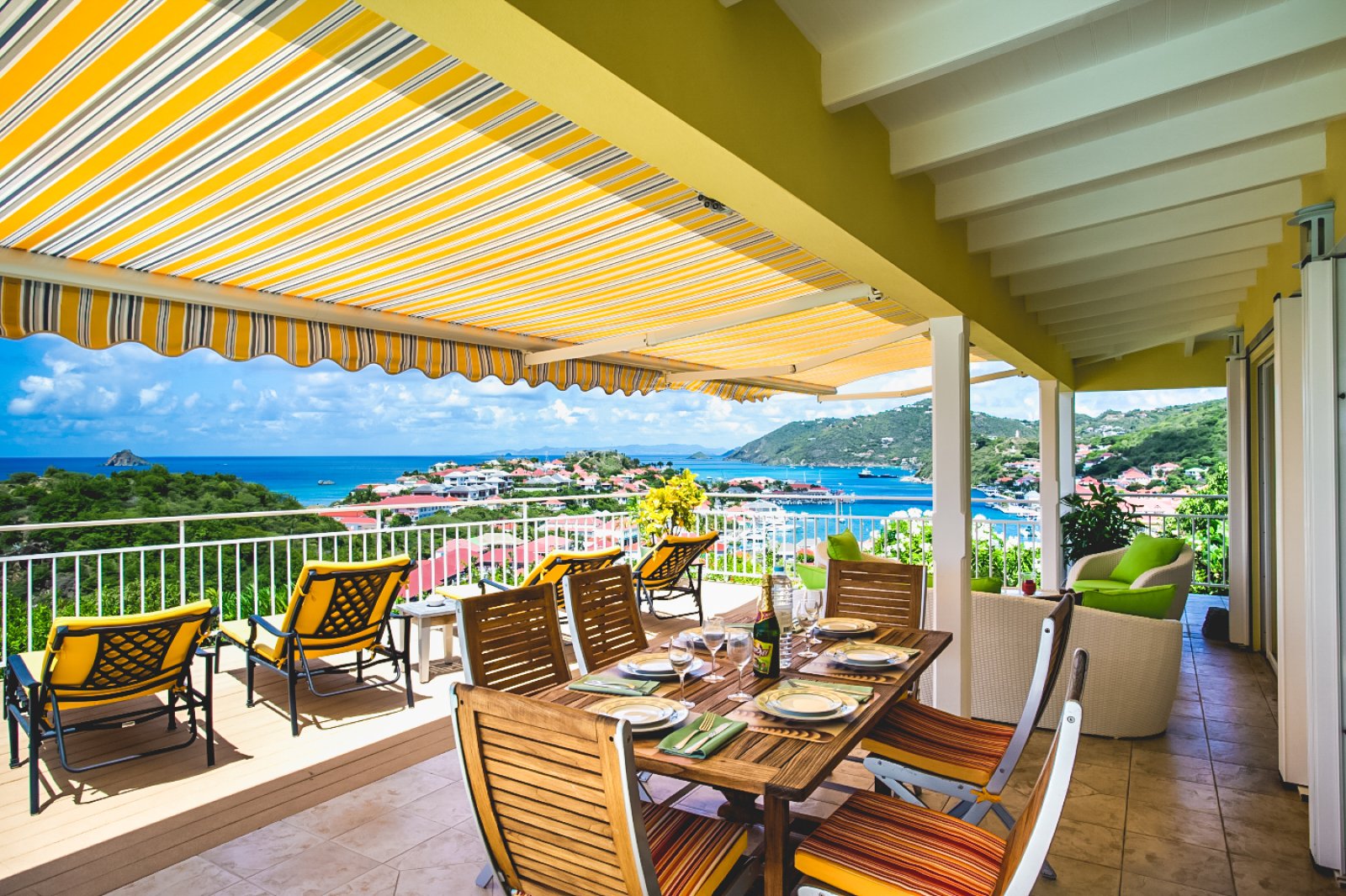 The close proximity of Villa Grand Galet (GGT) to the best of St. Barth shopping and dining in Gustavia is one of the rental property’s greatest luxuries, but there’s a whole lot more to the vacation home’s appeal. It’s the embodiment of traditional Caribbean style, a relaxed, cheerful villa set on a breezy hillside, where it enjoys postcard-perfect views over Shell Beach, Gustavia Harbor, St. Kitts and St. Maarten in the distance, and beautiful, romantic sunsets. With three bedrooms spread out over two levels, Villa Grand Galet (GGT) is welcoming to couples and families alike.