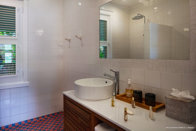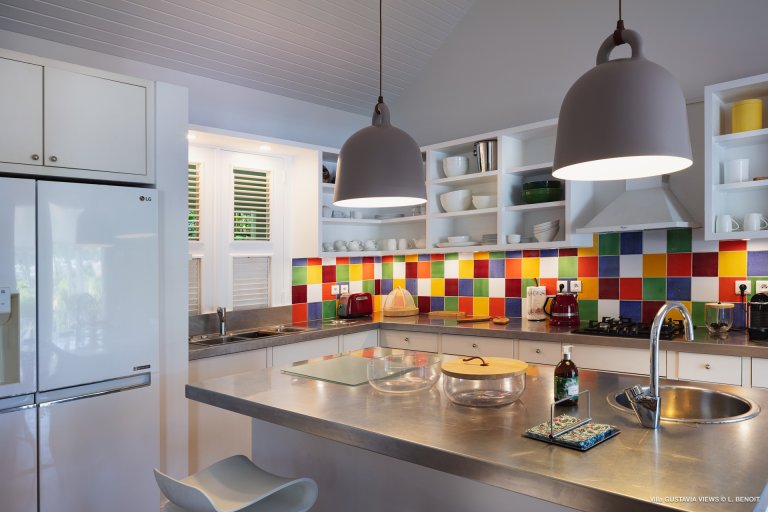 The renovation of Villa Gustavia Views added some modern comforts and furnishings while keeping the charming, traditional characteristics such as the multicolored tiles and architectural volumes. It is a place to celebrate simpler times, but without sacrificing any of today’s comforts.