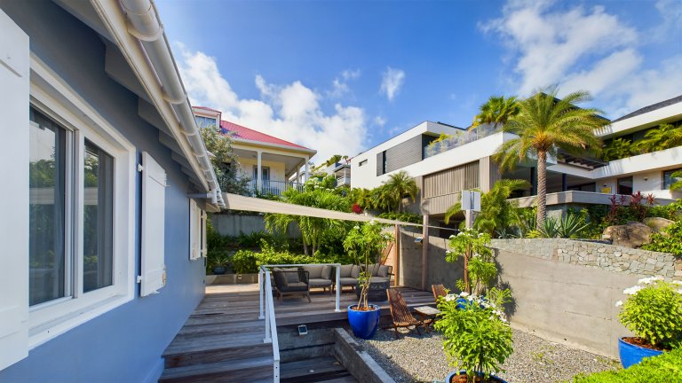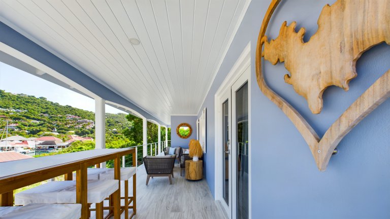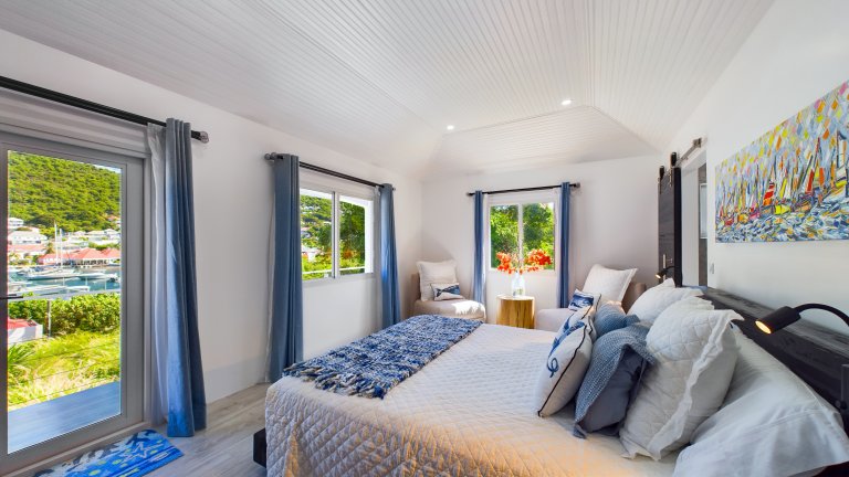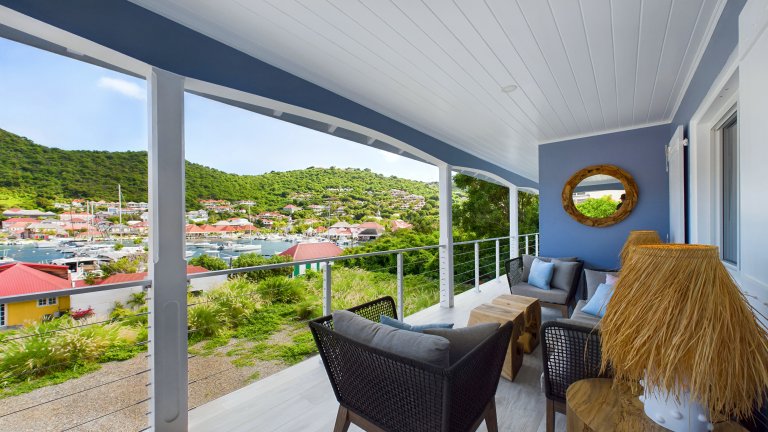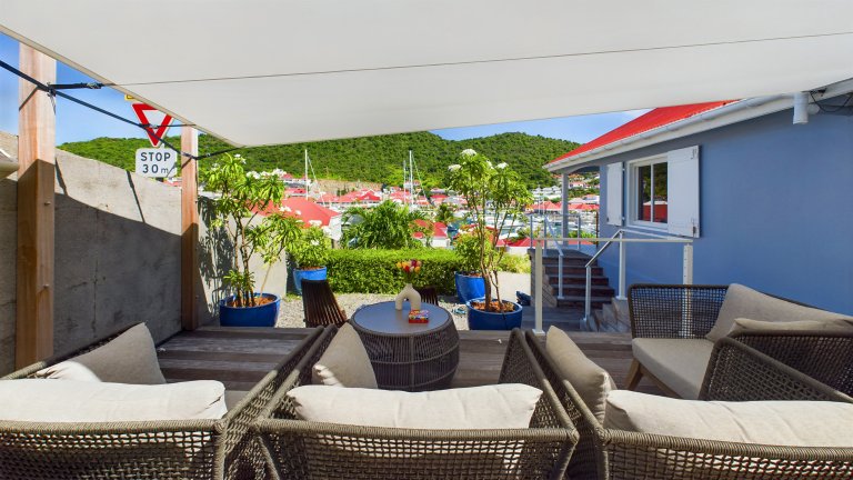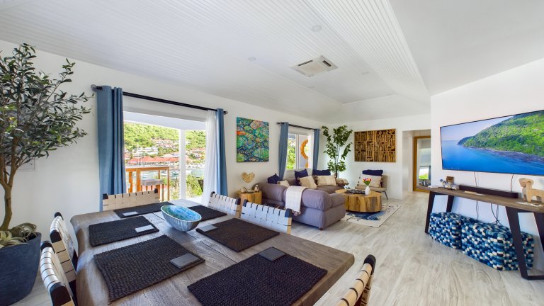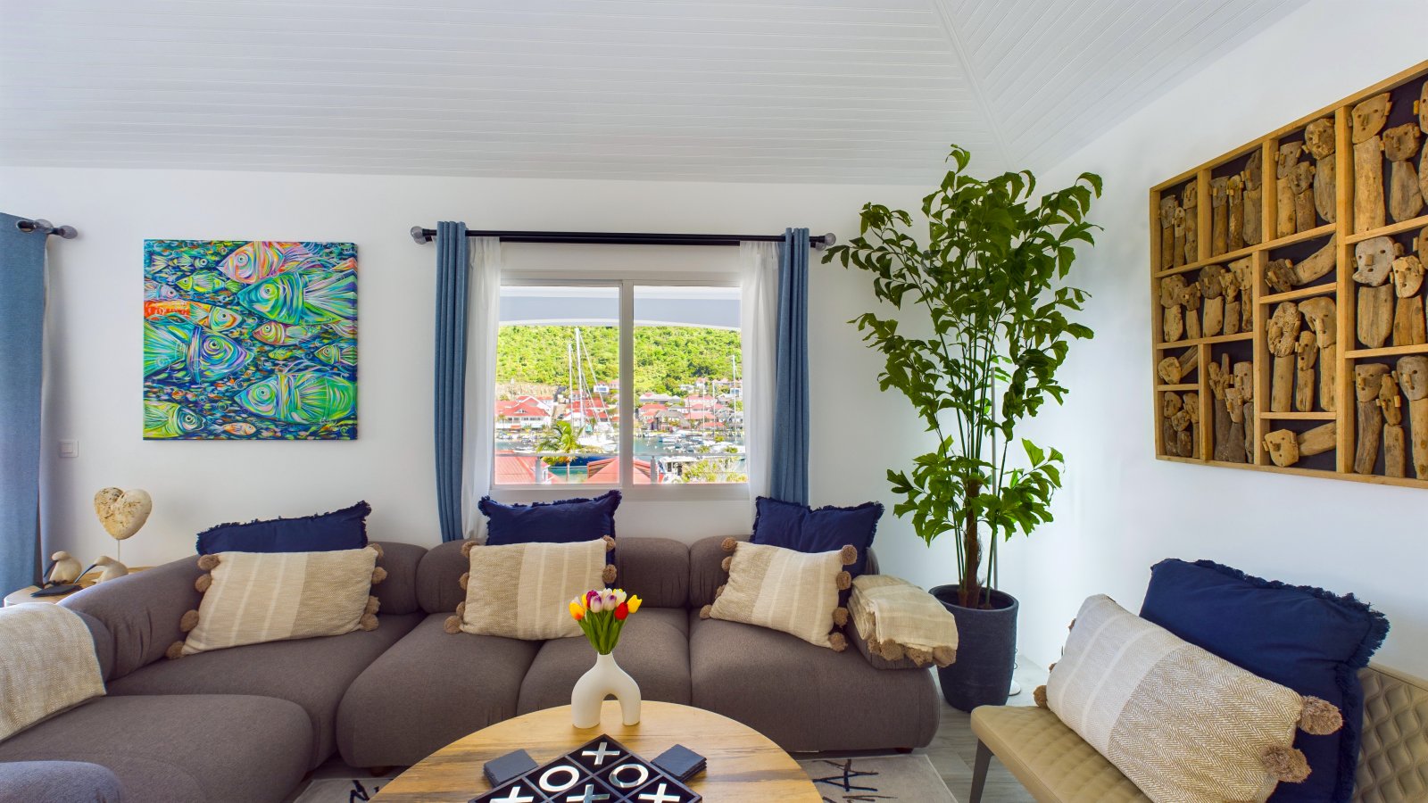 La Maison Bleue offers the perfect blend of Gustavia convenience and island charm. Located on the quieter left side of the harbor, this three-bedroom apartment occupies the upper floor of a shared house, just a short walk from the town’s shops, restaurants, and Shell Beach. Ample parking adds convenience, while its elevated setting offers a pleasant view over the harbor.