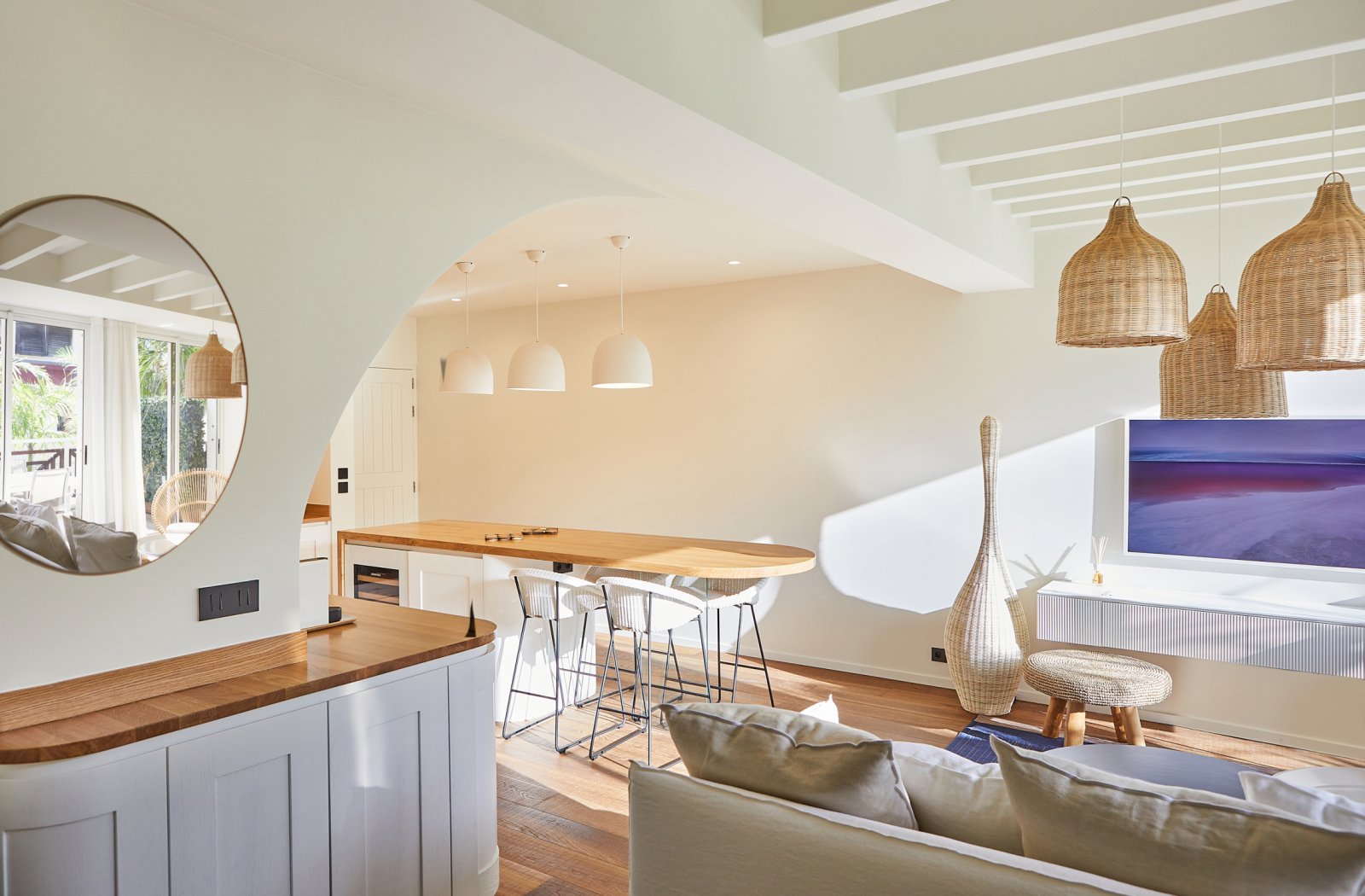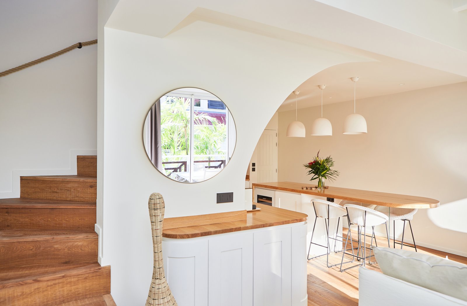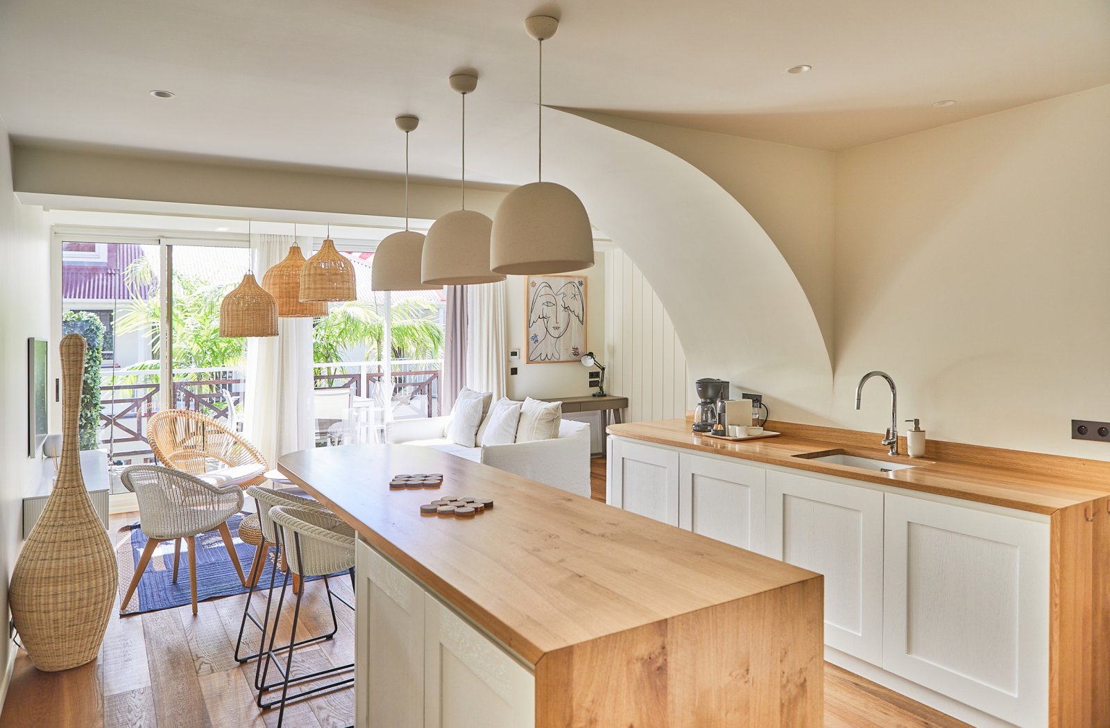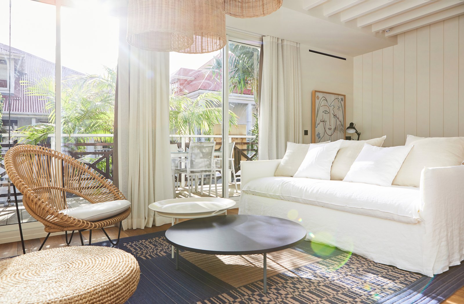 Skylights and big windows provide plenty of natural light in La Paloma (LPA), an apartment in the center of Gustavia. But the luxury rental property also benefits from a design that is simple, modern, and uncluttered. The white-on-white style makes for effortless St. Barth living, and there is no visual noise to distract you from the pleasures of being on the island.