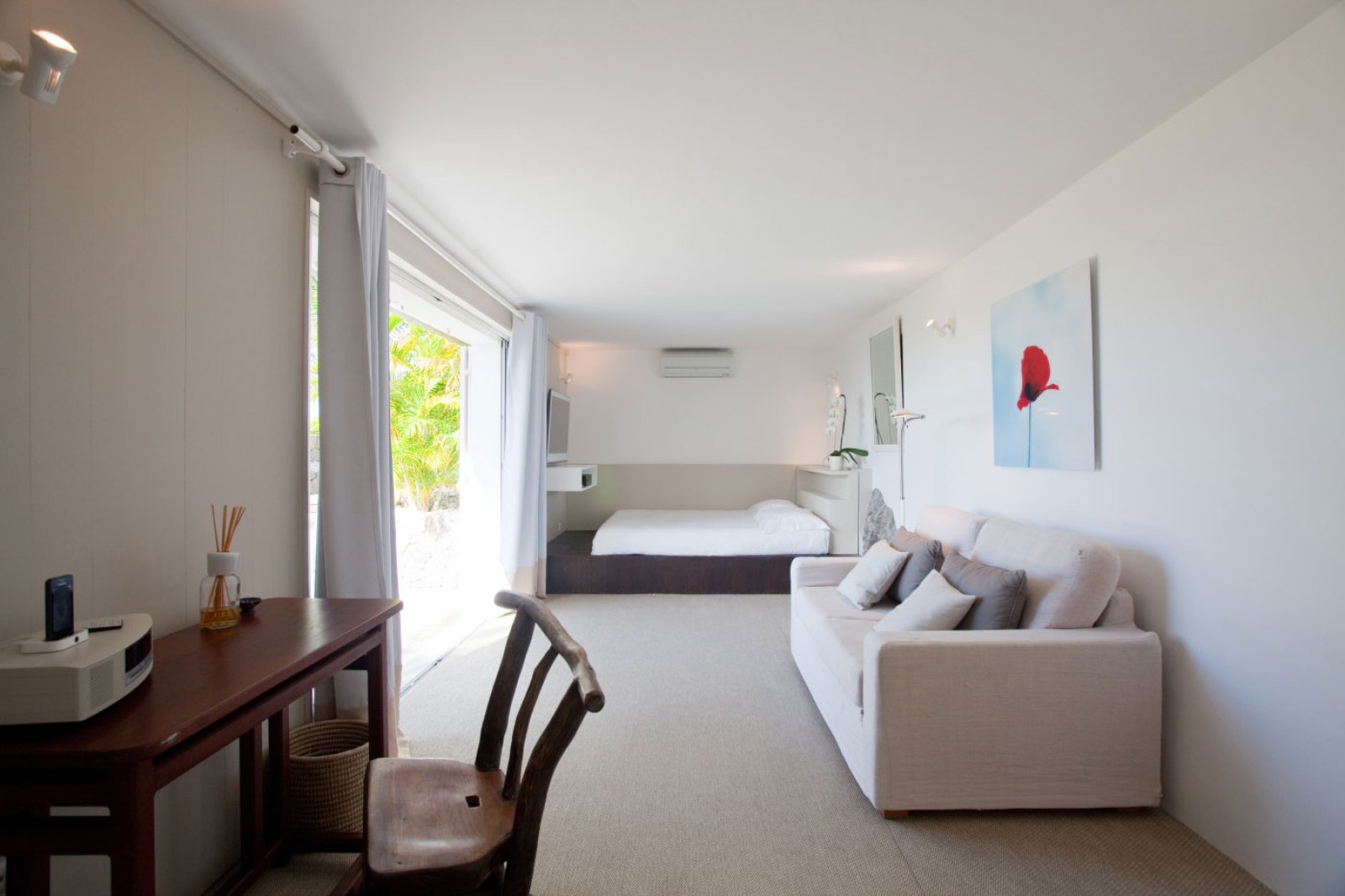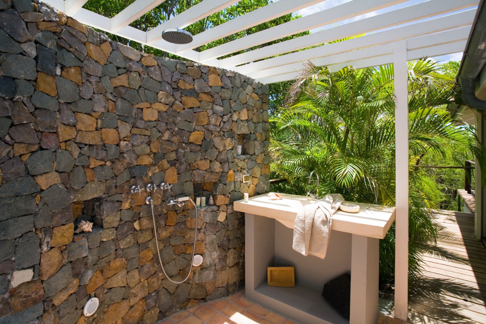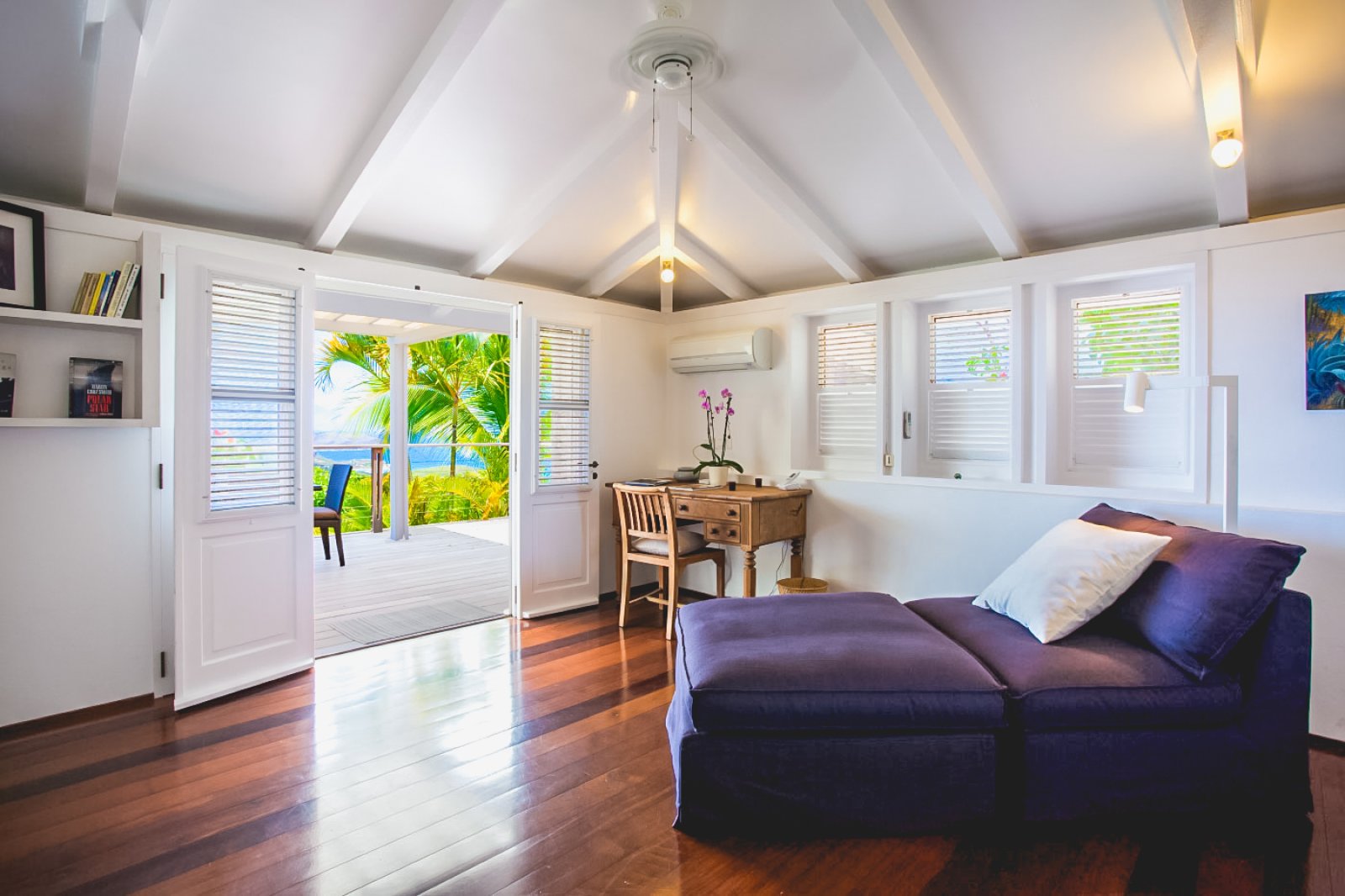 Villa MDL's extensive gardens lend the property a special sense of privacy and serenity. The layout of its rooms and terraces, combined with the intelligent landscaping of the property's natural spaces, makes this villa ideal for couples vacationing together. Lurin is perfectly located as well for those who like to be off the beaten track but still have easy access to Gustavia, which is less than five minutes away. The pristine beaches of Saline and Gouverneur are also a short drive from the villa.