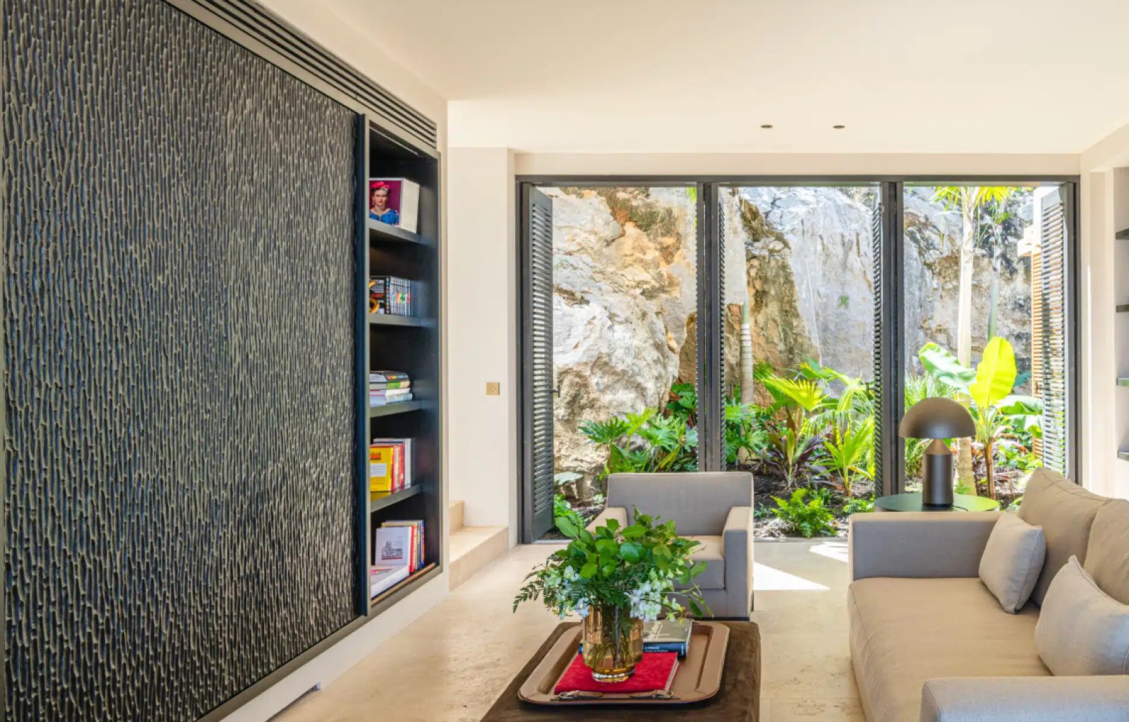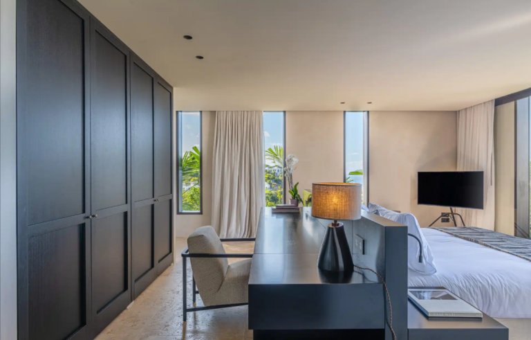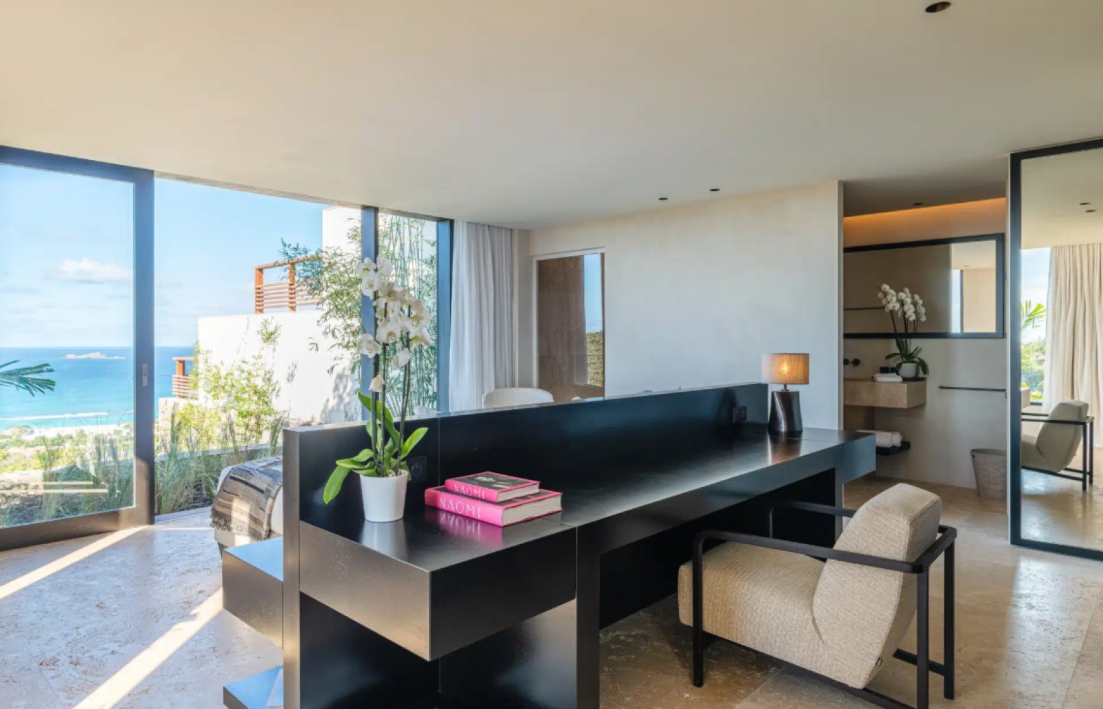 All of the bedrooms in Villa Never Say Never are very bright and light with many windows. They are equal in size, and each one has an ensuite bathroom, air-conditioning, and a Smart TV. This makes the house a good choice for adults traveling together, and the concierge can customize a stay for any sort of group or celebration.