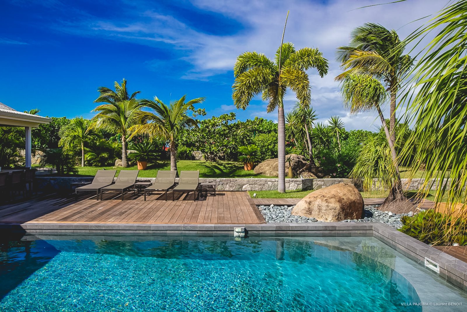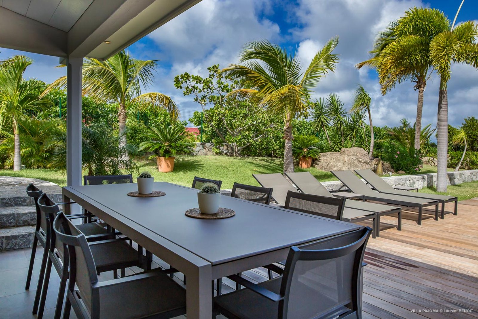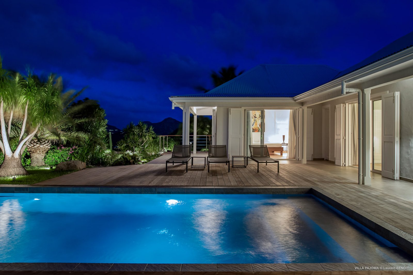 Villa Pajoma (PAJ) is conveniently located in Lurin with a view over St. Jean Bay. Breezy and open with beautiful landscaping, the villa offers indoor and outdoor living areas as well as an inviting pale blue pool. An outdoor dining area makes dinners under the stars a must.