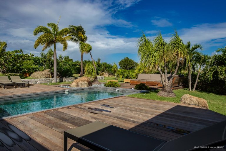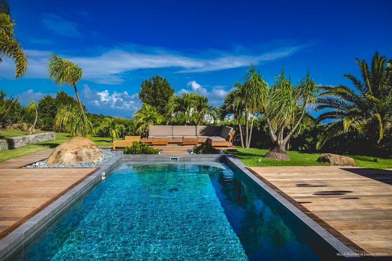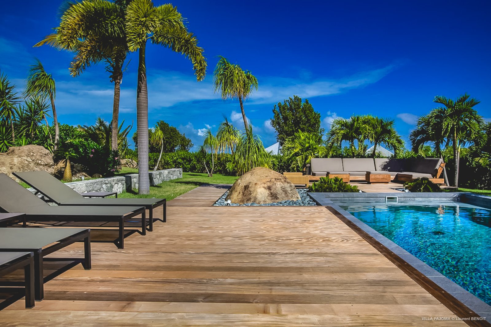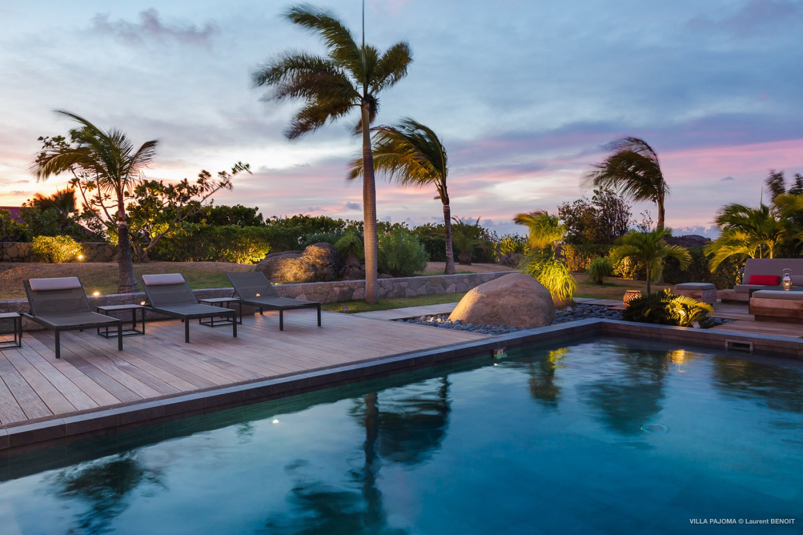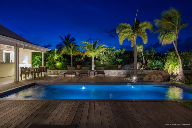 Villa Pajoma (PAJ) is conveniently located in Lurin with a view over St. Jean Bay. Breezy and open with beautiful landscaping, the villa offers indoor and outdoor living areas as well as an inviting pale blue pool. An outdoor dining area makes dinners under the stars a must.