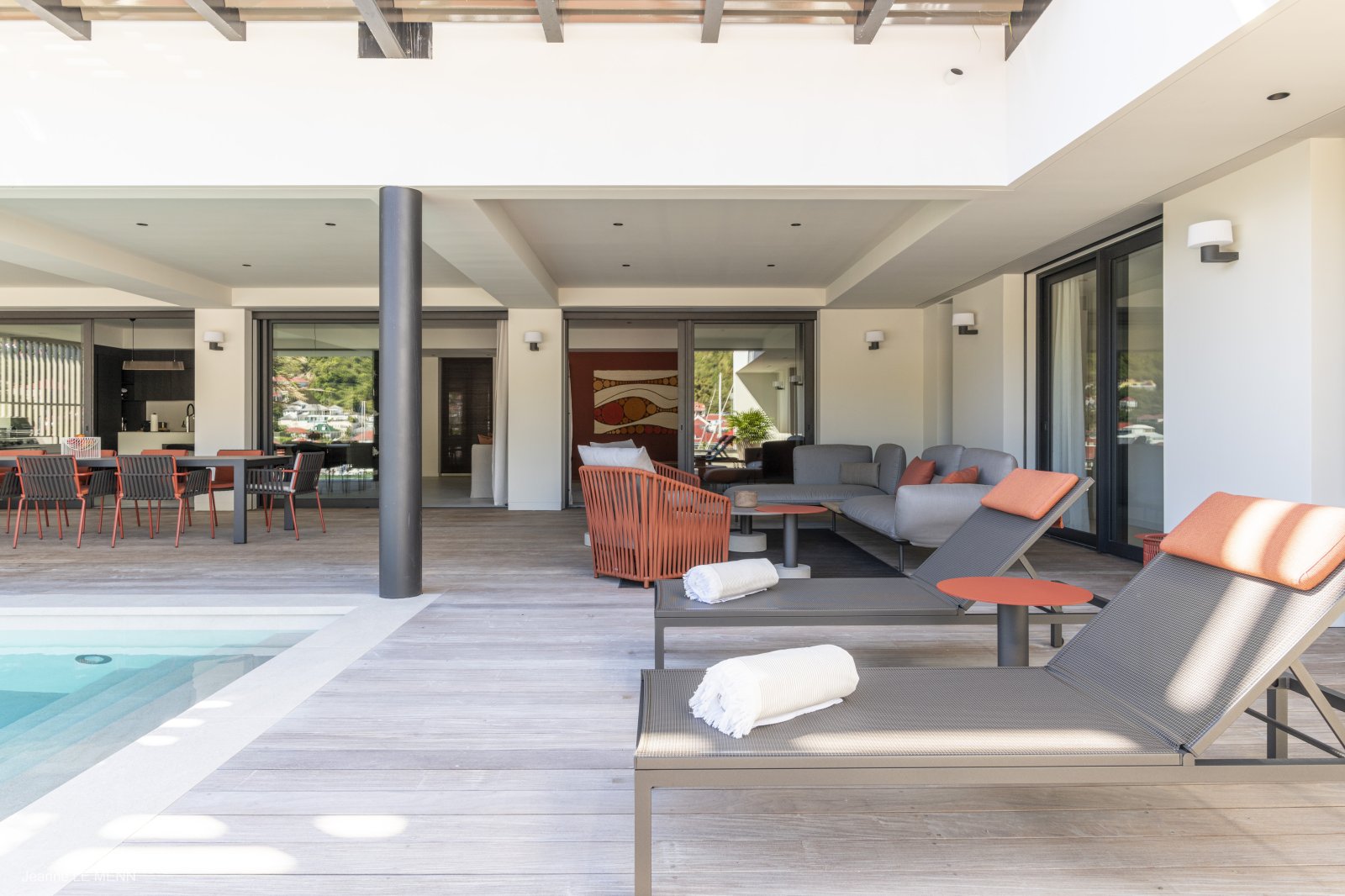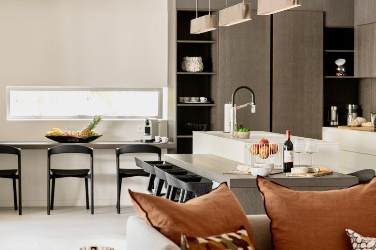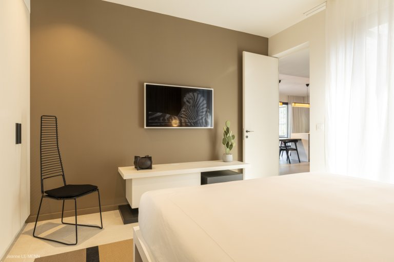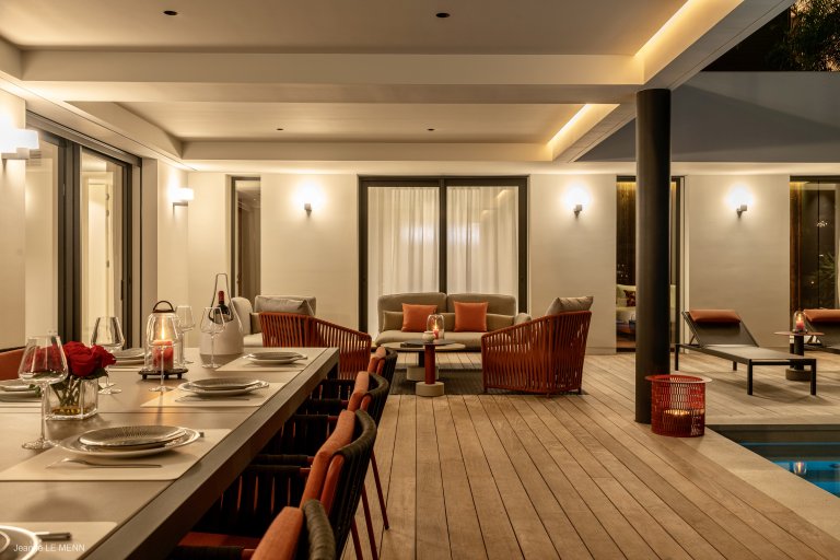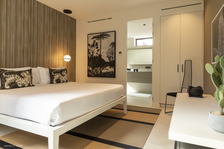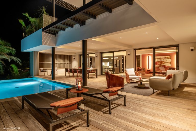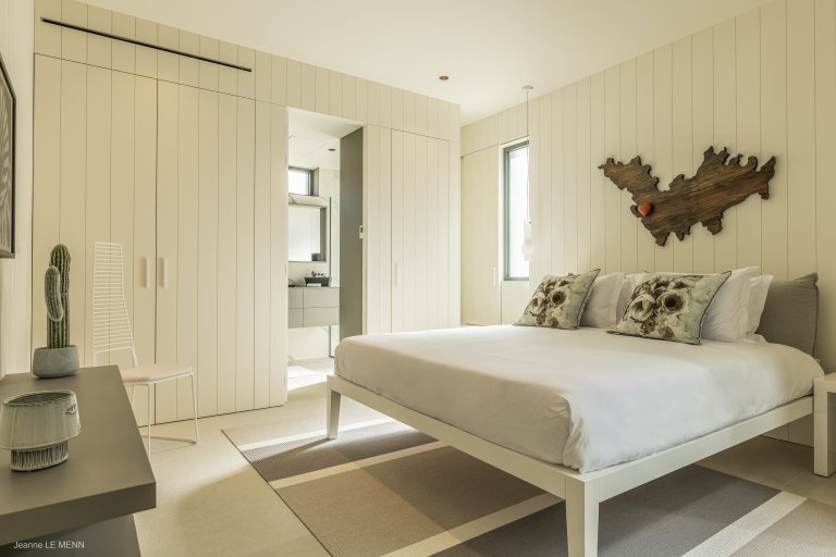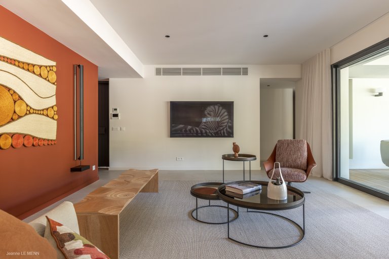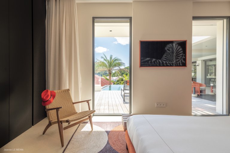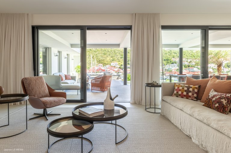 Defined by sophisticated interior design and a welcoming palette of earth-toned colors, the newly built Apartment Privilege (PRV) occupies a privileged place in the city of Gustavia. The location is within walking distance of boutiques, restaurants, and Shell Beach. It manages to strike the perfect balance of being contemporary without being cold, of being practical without being boring.