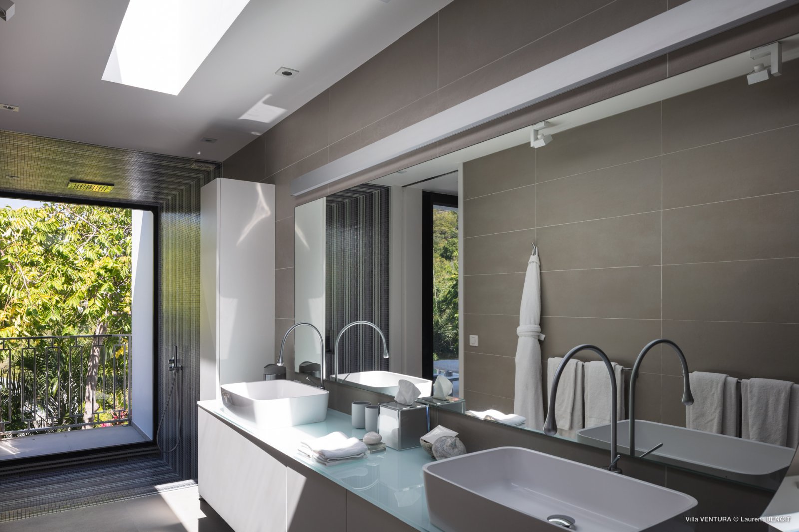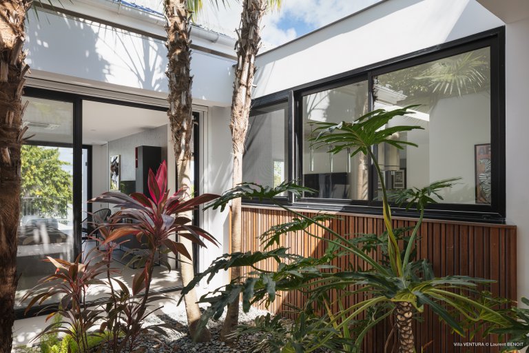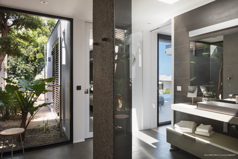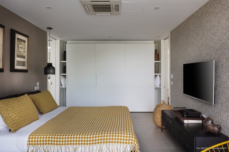 Villa Ventura is modern and airy, spacious, and full of soothing grays and oversize windows. A few ylang ylang trees in front of the house make the feeling on the terrace extra special. The house is fully air-conditioned, and the swimming pool is heated.