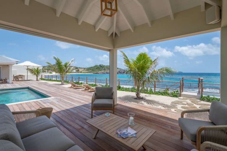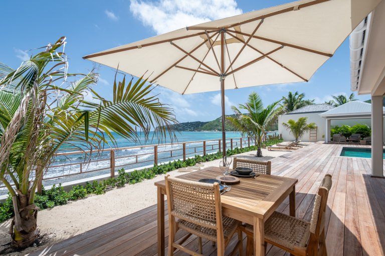 For all of the beautiful luxury rental properties in St. Barth, there are not to many opportunities to rent an island vacation home right beside the sea. But the newly built Villa Anja (ANJ) is a delightful exception. The home is conveniently located right on Lorient beach, one of the most calm and peaceful on the island. It is opposite the Petite Colombe bakery and within easy walking distance to the shops and other points of interest in the Lorient area.