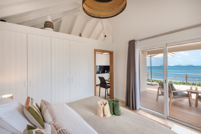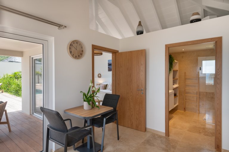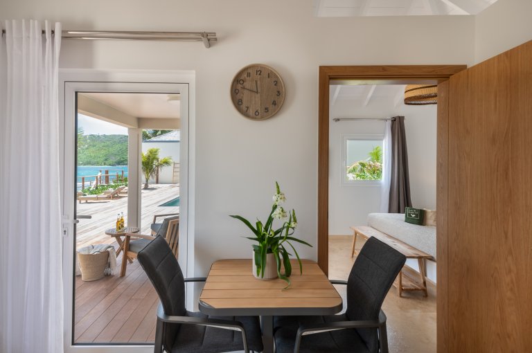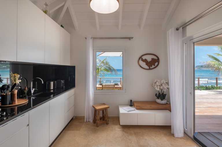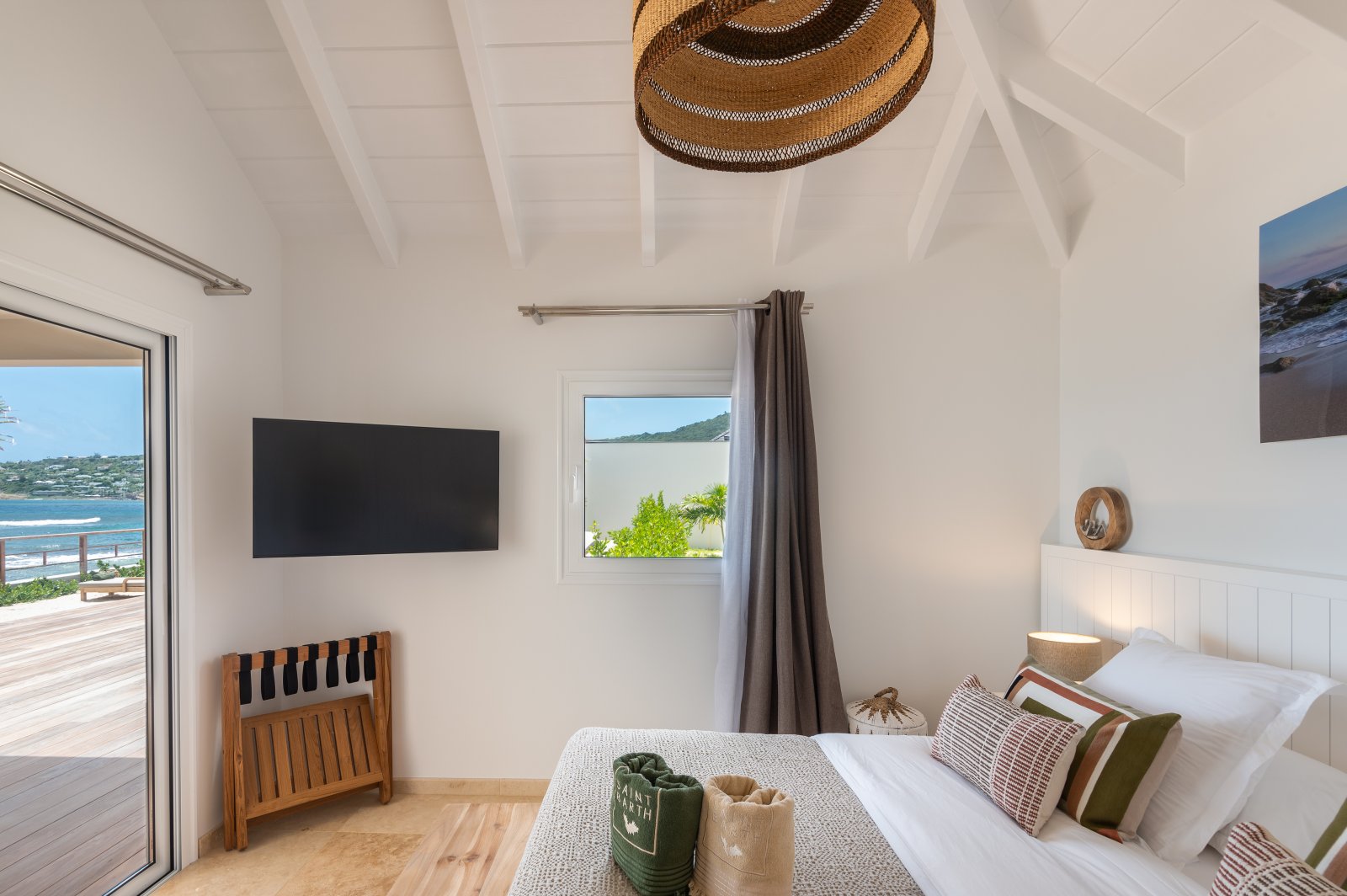 Although its location makes it a special rarity, its aesthetics keep it firmly within the St. Barth tradition. Its design is suffused with the island’s spirit, and it encourages a simplicity of living. With one bedroom, it works perfectly for a couple enjoying a romantic escape or even a solo traveler who wishes to work on a creative project or simply take a relaxing holiday beside the Caribbean Sea.