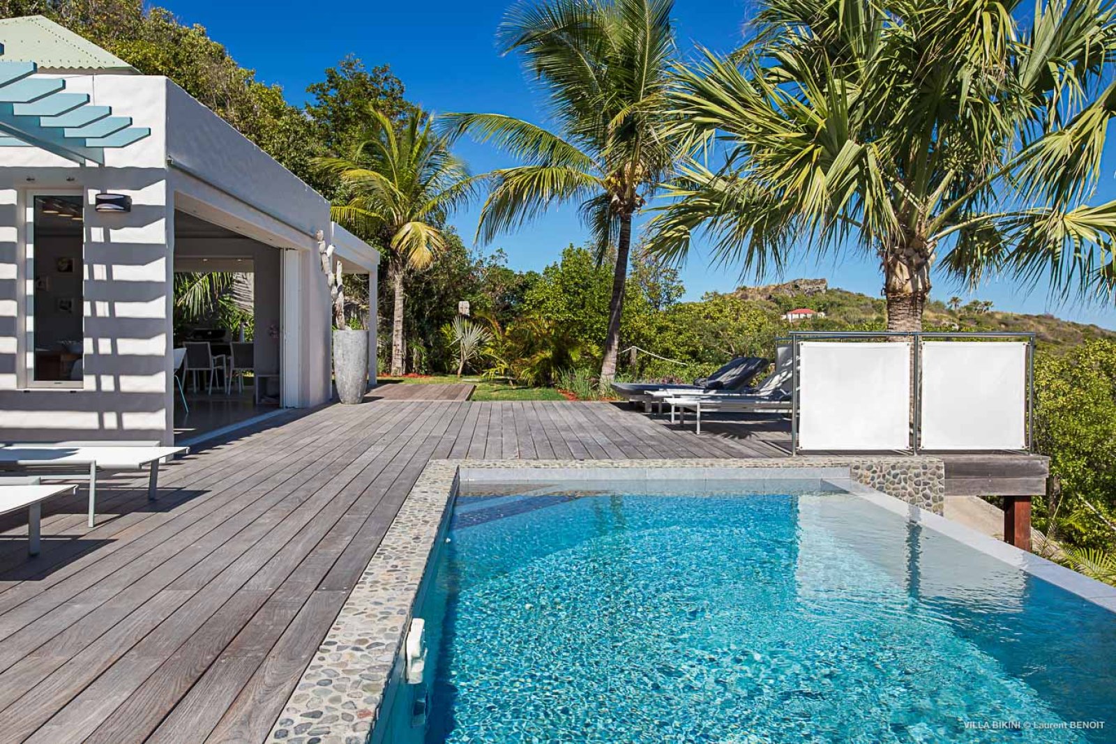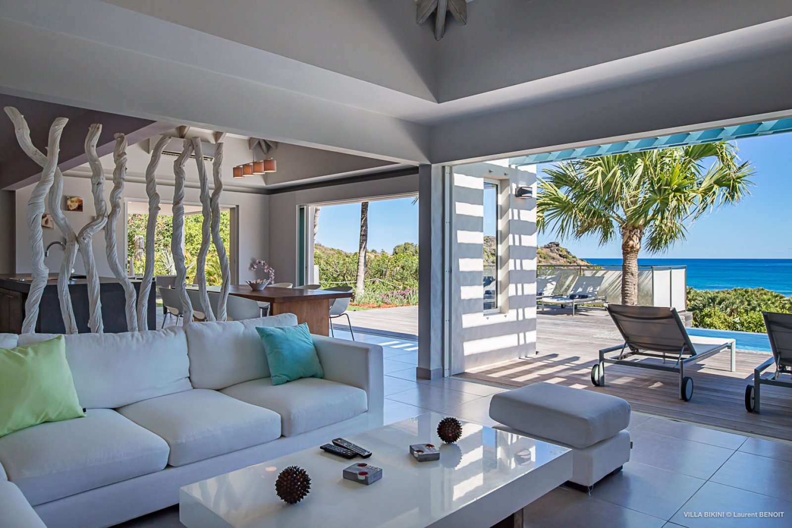 Like its namesake, the new Villa Bikini (BKN2) is the embodiment of relaxed, easy beach living on St. Barth. Following a complete renovation, the luxury rental property has a clean, fresh look that makes you want to put on your own bikini and immediately settle comfortably into island life. A few touches of interest, color, and sea-weathered natural materials encourage that feeling of letting down your hair and becoming one with the sea, sky, and green trees around you.