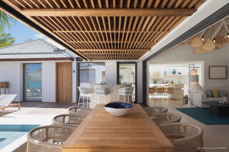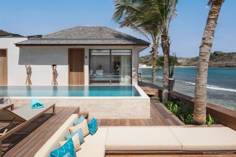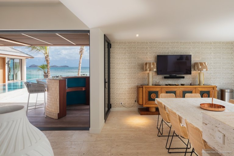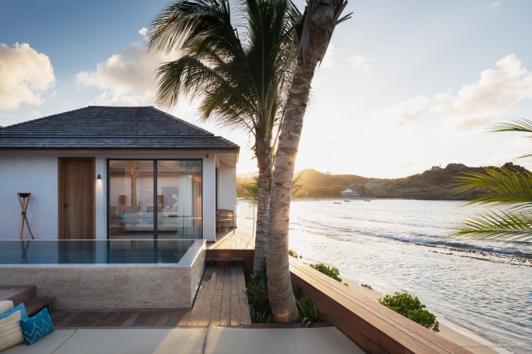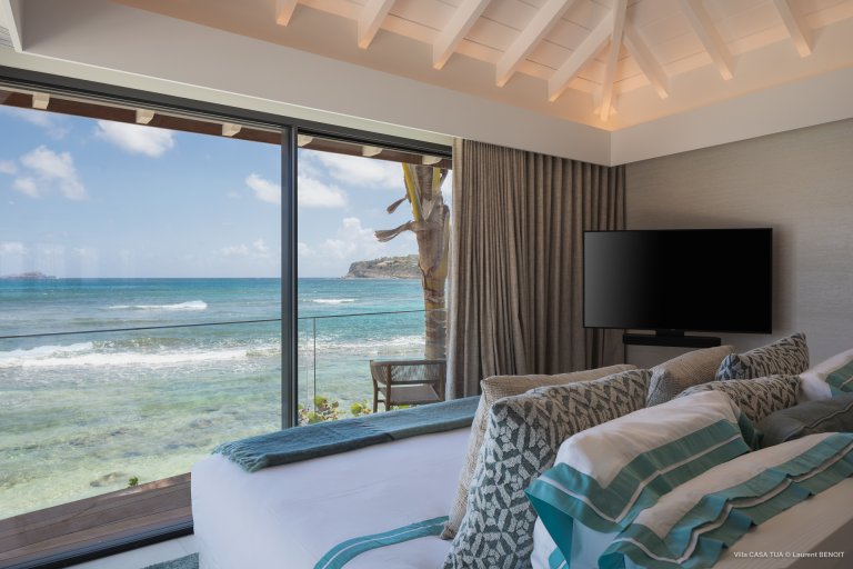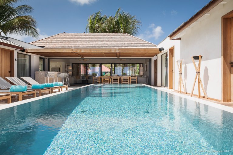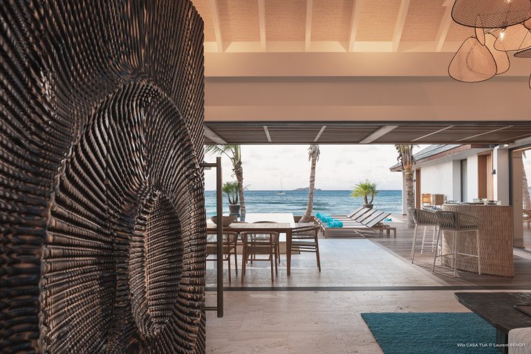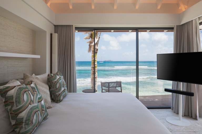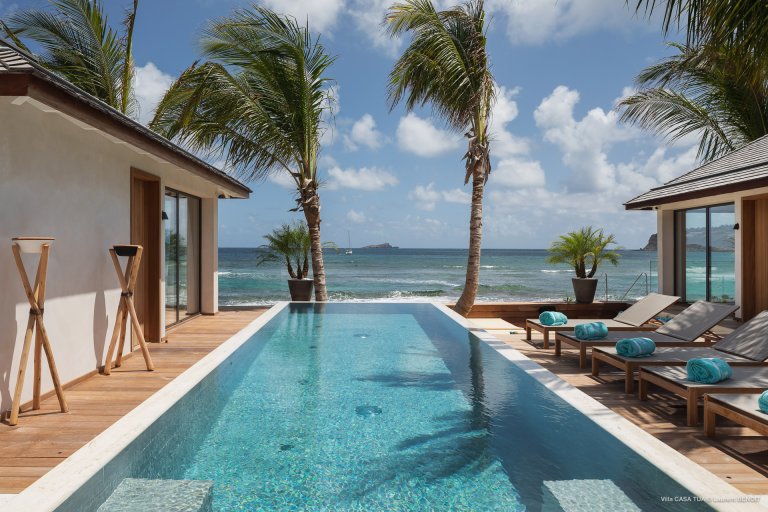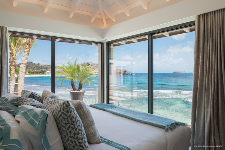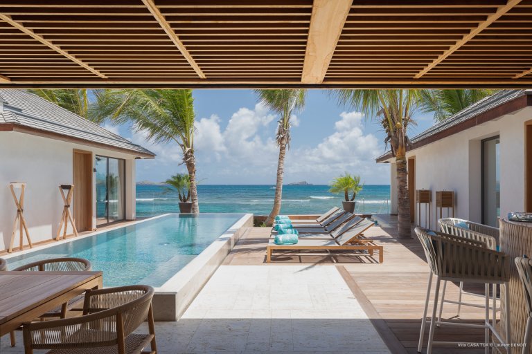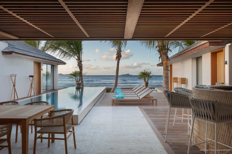 For an island destination, St. Barth has surprisingly few beach villas. That is what makes Maverick (CTU) such a rare opportunity to enjoy the island’s beach lifestyle. The newly built luxury rental property is right beside the sand in Lorient, one of the most popular surf beaches.