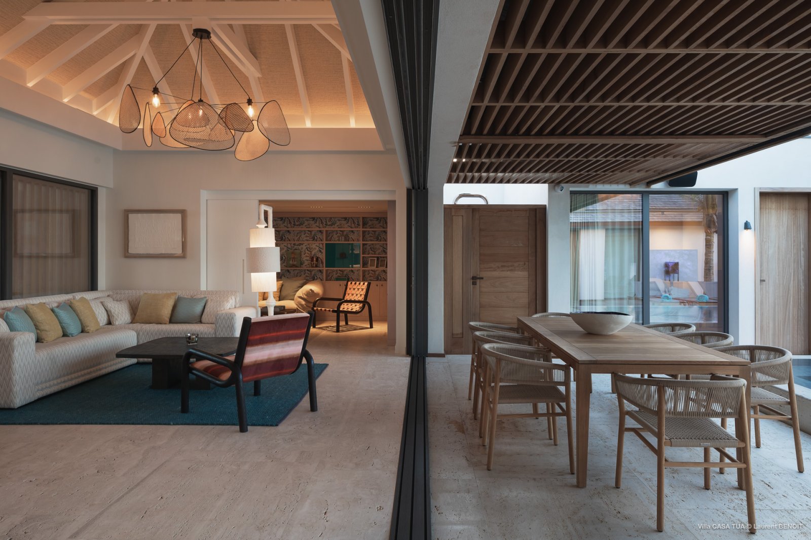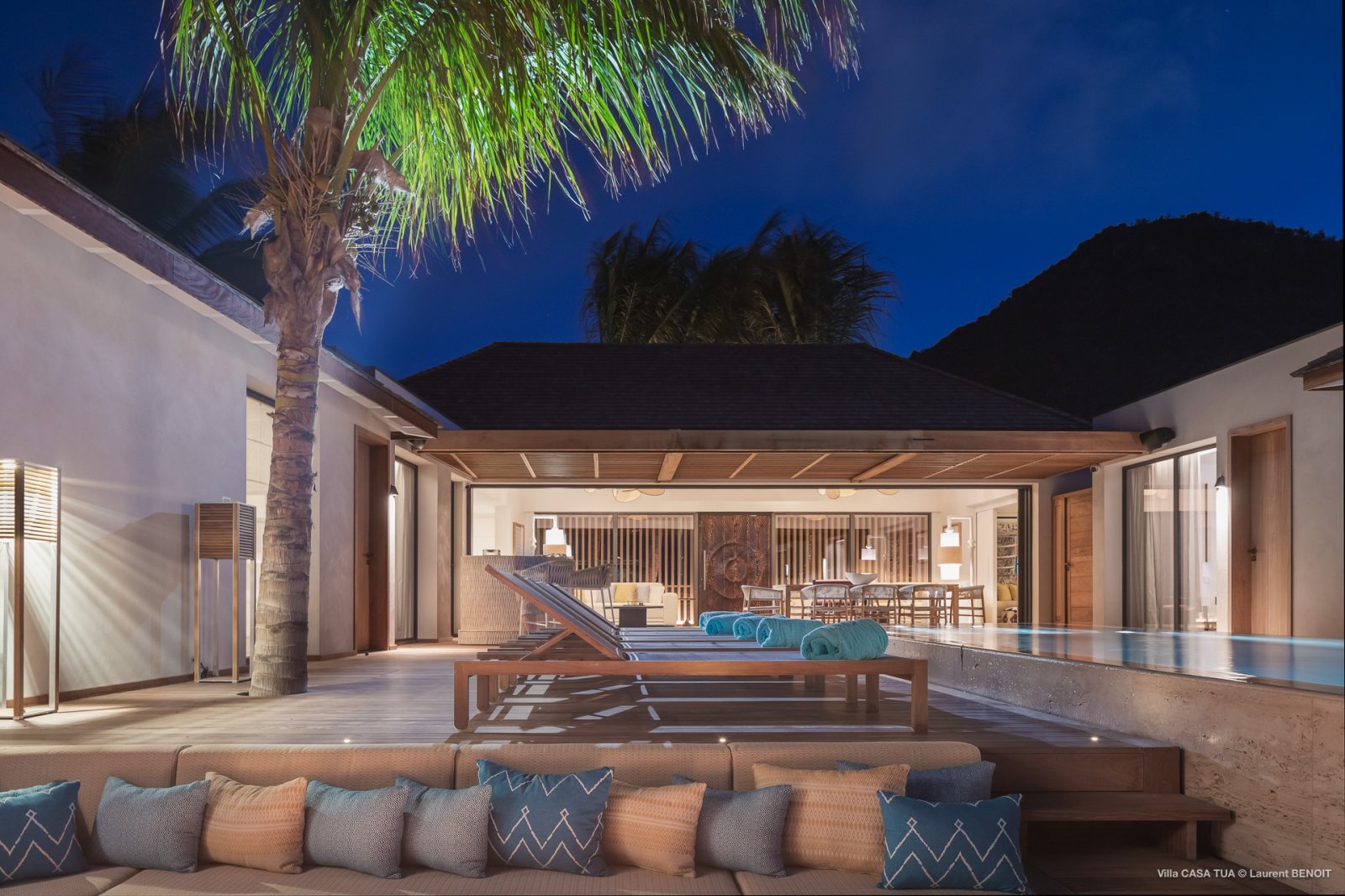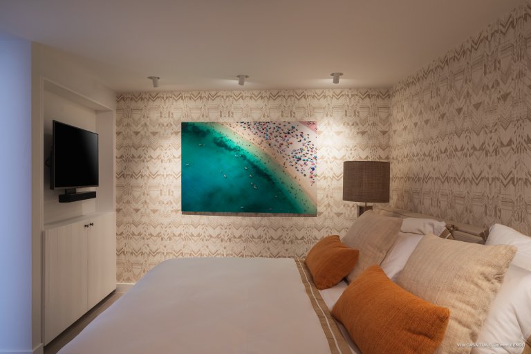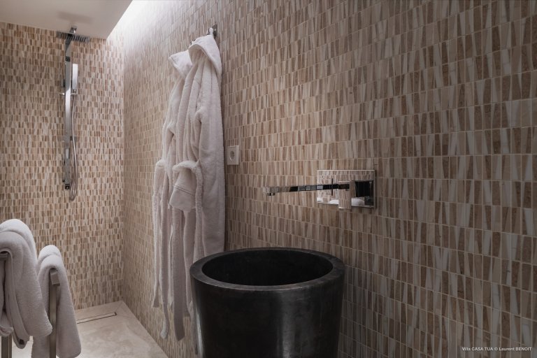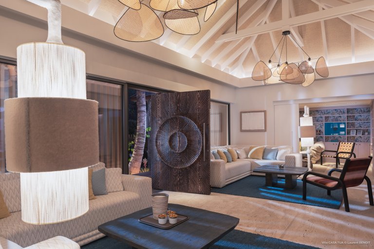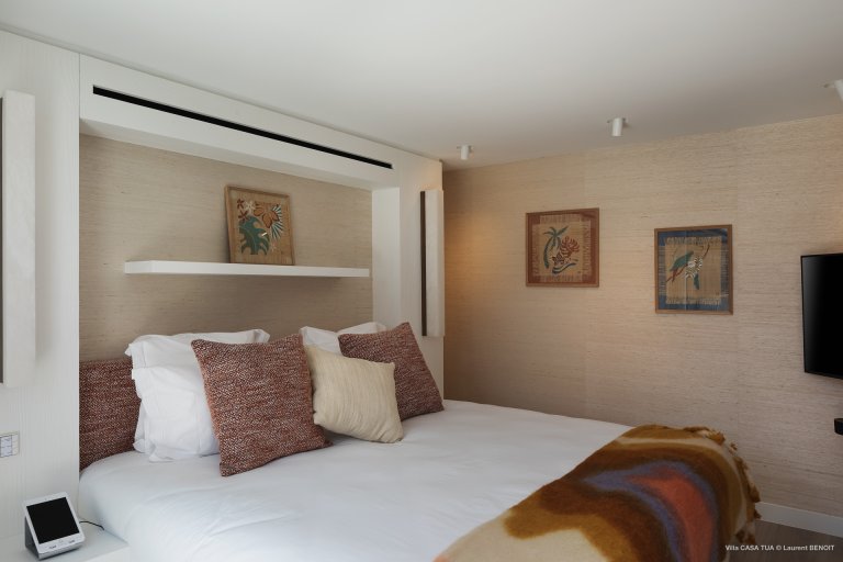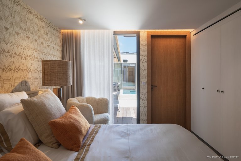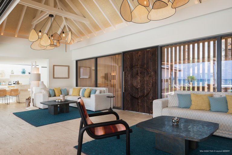 Of course, the waves are not the only game in town. For guests who prefer a more relaxed ambiance, the heated swimming pool makes for a great meeting point, and the terrace also has a sunken outdoor living space close to the ocean. And if you want the beach, it is directly accessible via a staircase from the villa.