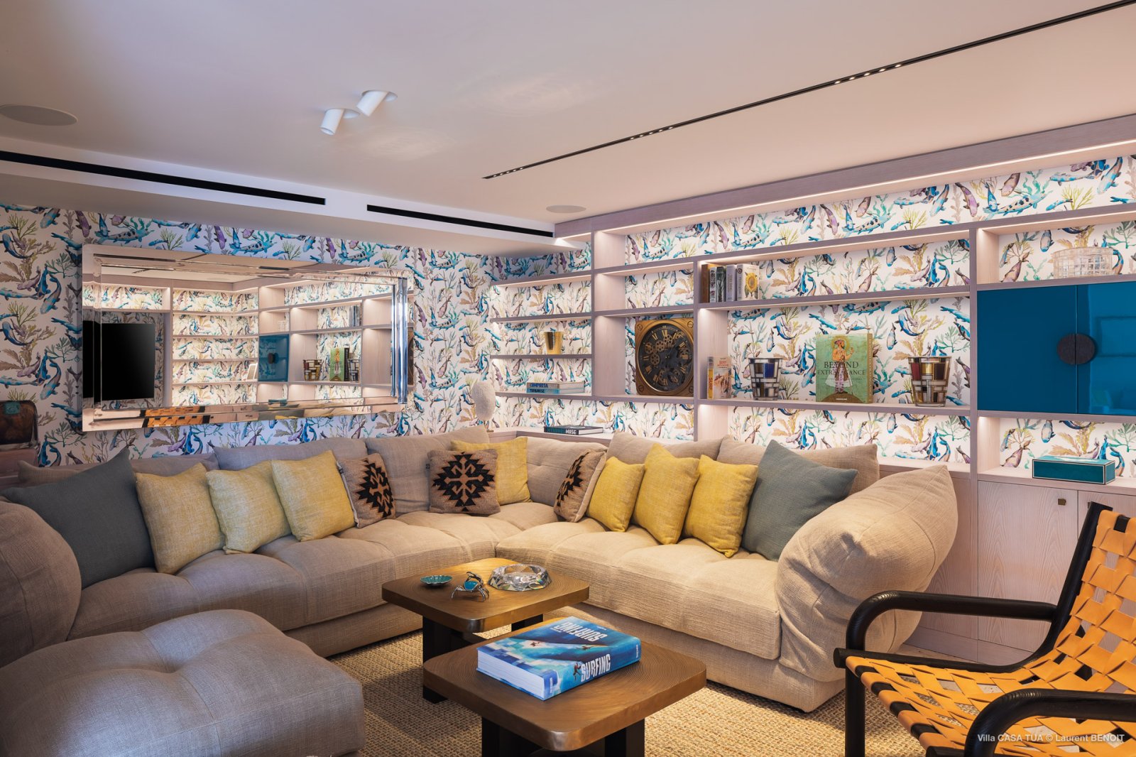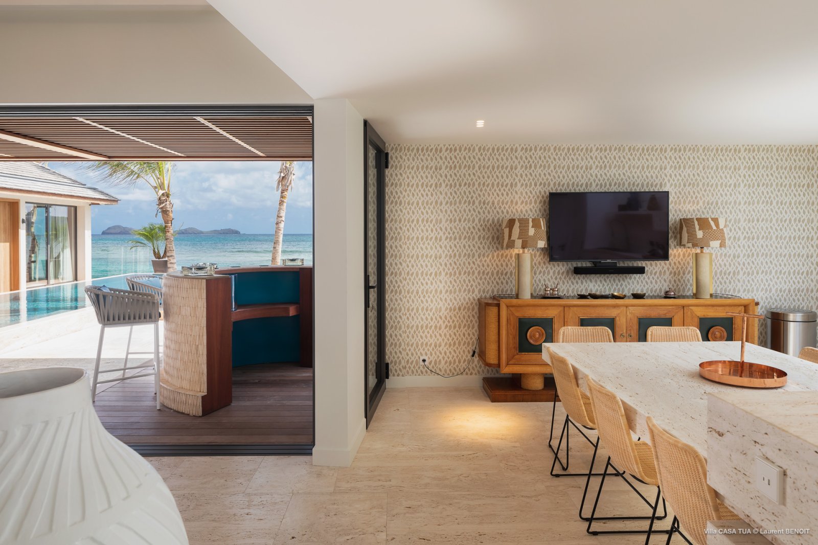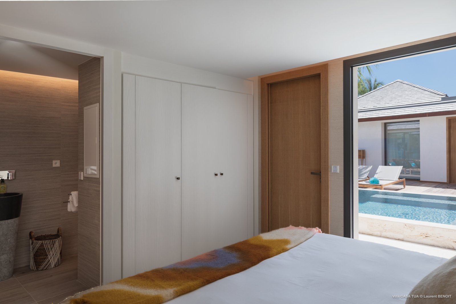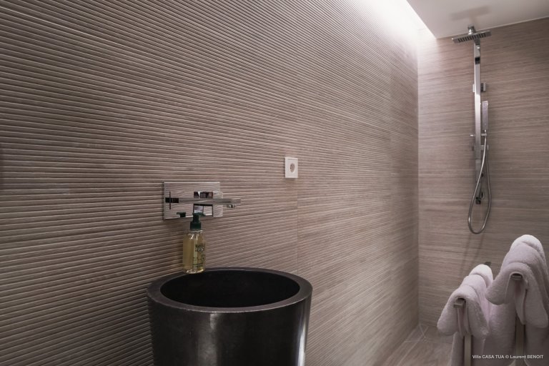 Of course, the waves are not the only game in town. For guests who prefer a more relaxed ambiance, the heated swimming pool makes for a great meeting point, and the terrace also has a sunken outdoor living space close to the ocean. And if you want the beach, it is directly accessible via a staircase from the villa.