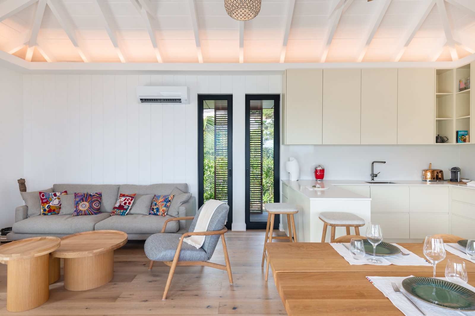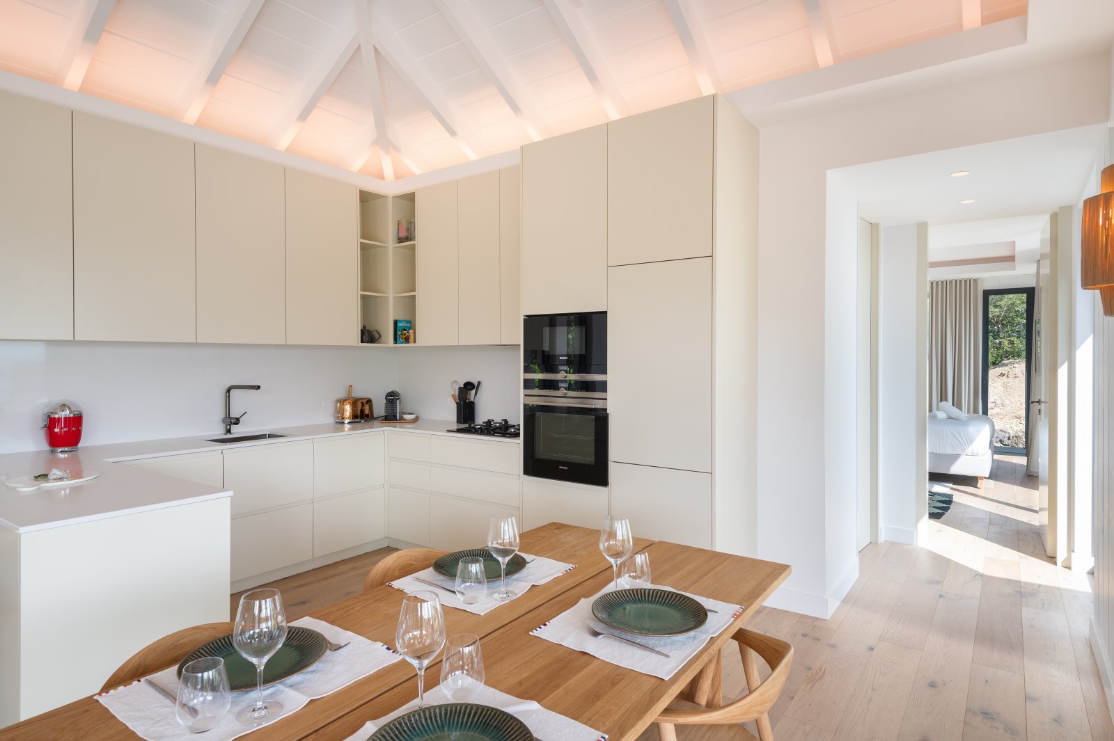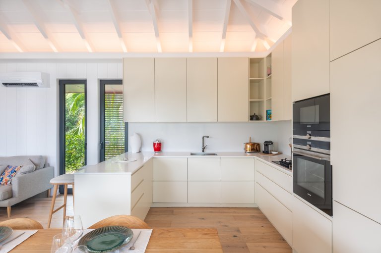 Compact yet complete, the interior flows with ease, making both daily moments and light entertaining feel natural. The villa can also be rented alongside its sister property, Villa Bilou, doubling the sleeping capacity to four bedrooms while maintaining full independence and privacy—each villa shares parking but lives entirely separate.