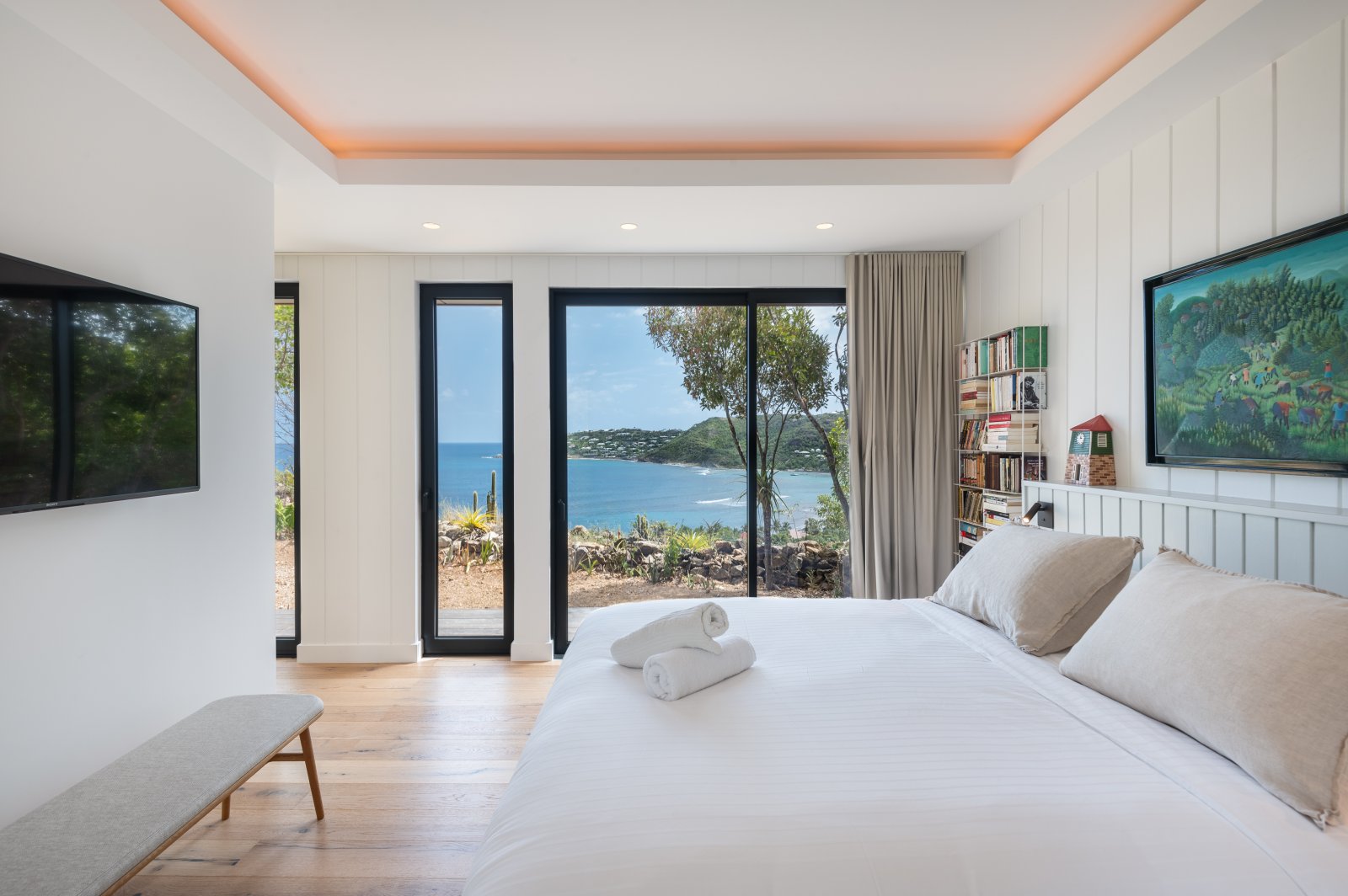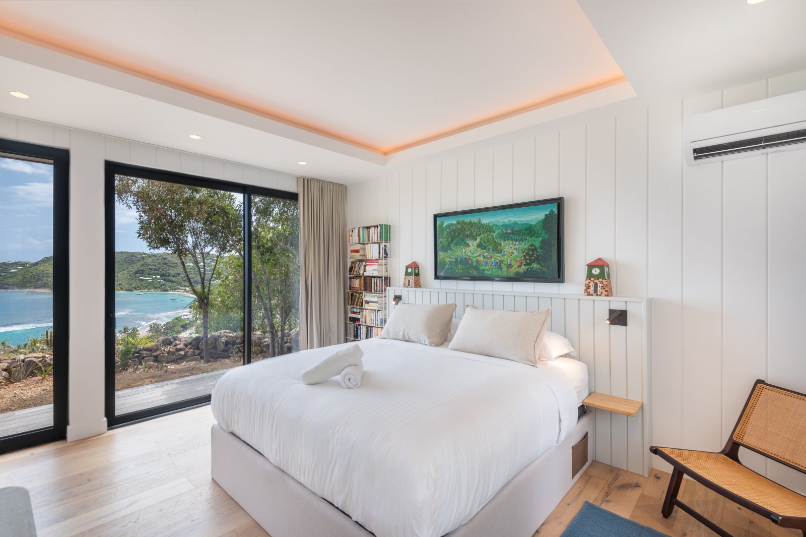 Bed: King Bed • En-Suite Bath with Rainfall Shower • TV • Air Conditioning • Direct Access to Deck • Ocean View