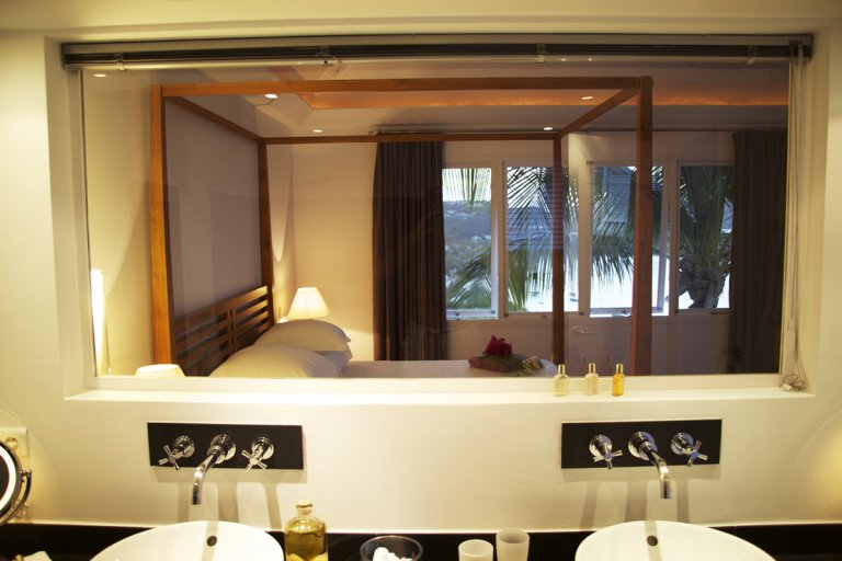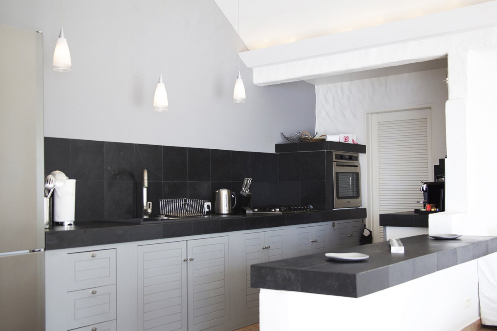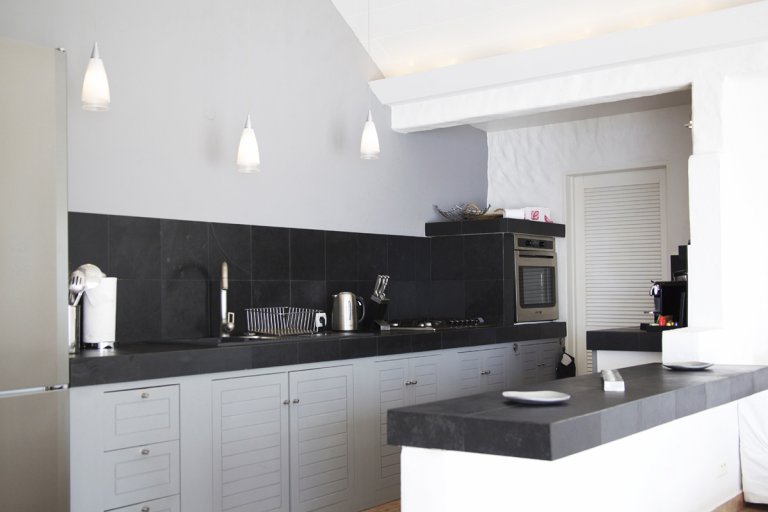 Nautilus Villa features a deck that’s designed to allow guests to soak-up the sun and the Caribbean Sea below. The spacious kitchen has everything guests need to prepare meals with ease. If you want to whip up a gourmet dinner, or bring in a private chef, Nautilus Villa has accessories you need. Its sleek countertops are made of cool black stone. Its chic refrigerator was made by Liebherr.
