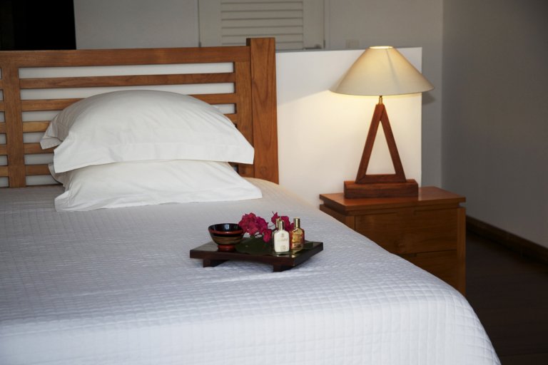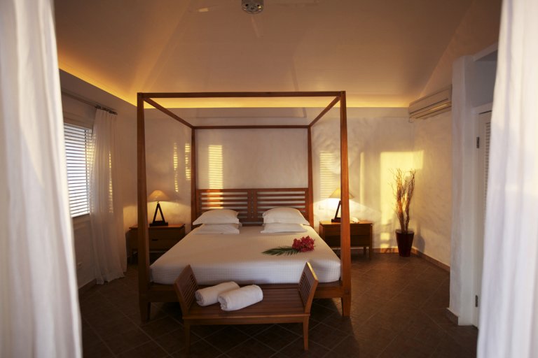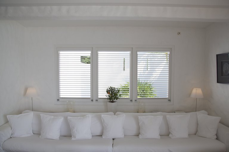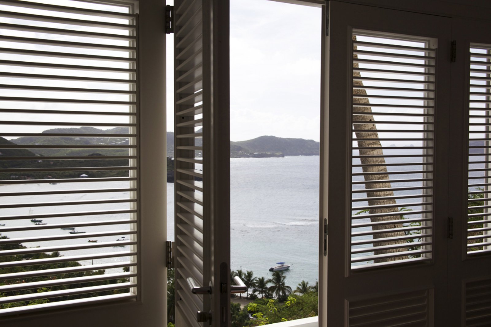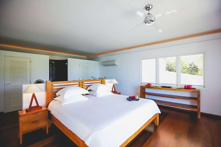 Nautilus Villa’s three sizable bedrooms are next to the dining section and family room, and close to the swimming pool. They feature minimalist and bright Caribbean design schemes, with crisp whites and light woods, including modern king-size four-poster beds. The bedrooms all come with en-suite bathrooms, massive closets, and doors and windows with wood louvers as well. The bedrooms also feature access to outdoor terraces. All bedrooms have ceiling fans and AC, as well as TVs and entertainment features ensuring guest comfort.