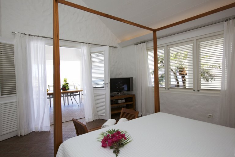 Bed: King Bed • En-Suite Bath with Walk-In Shower • Air Conditioning • Flat-Screen TV • DVD Player • VCR • CD Player • Ceiling Fan • Direct Access to Terrace and Pool