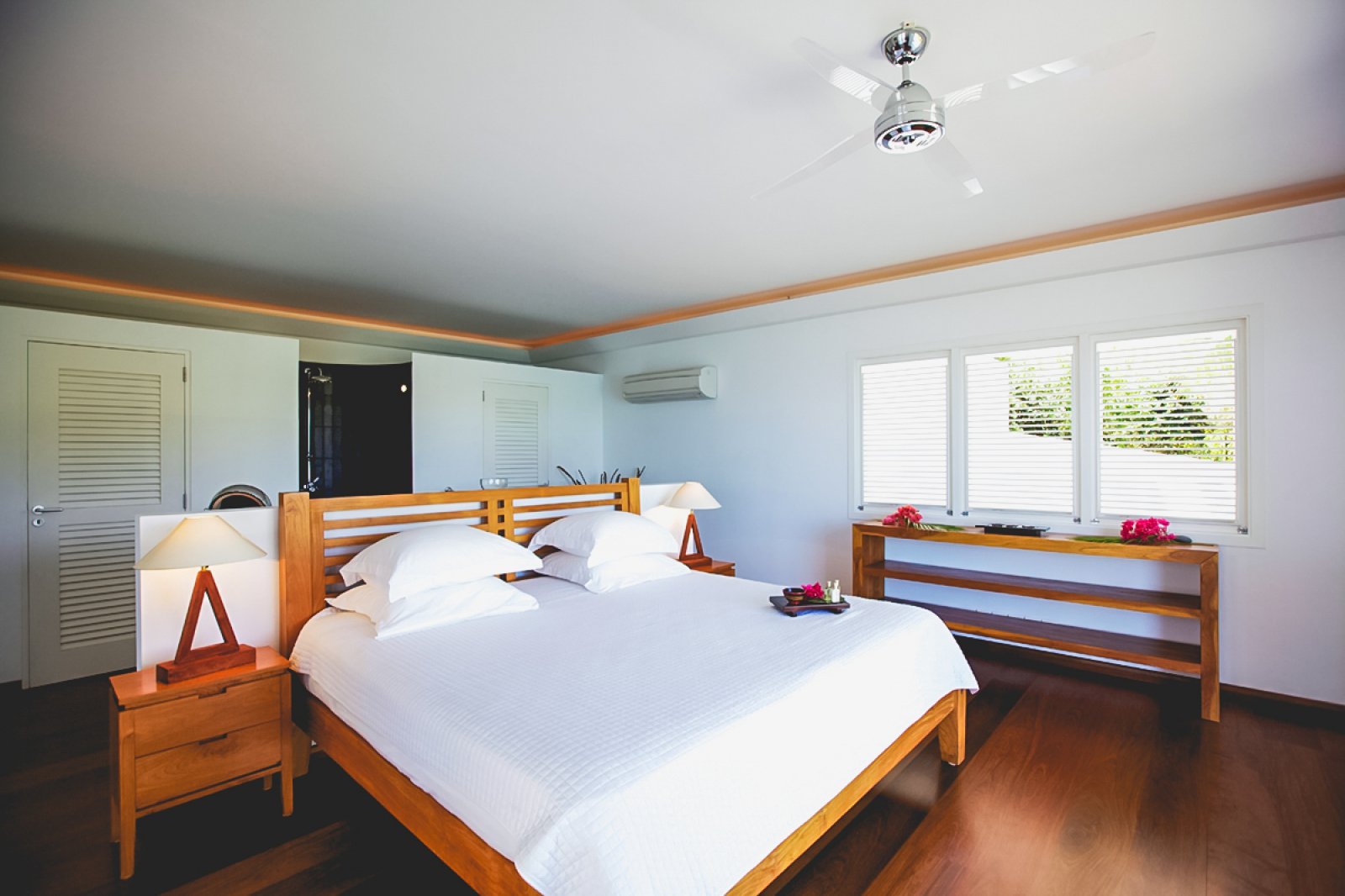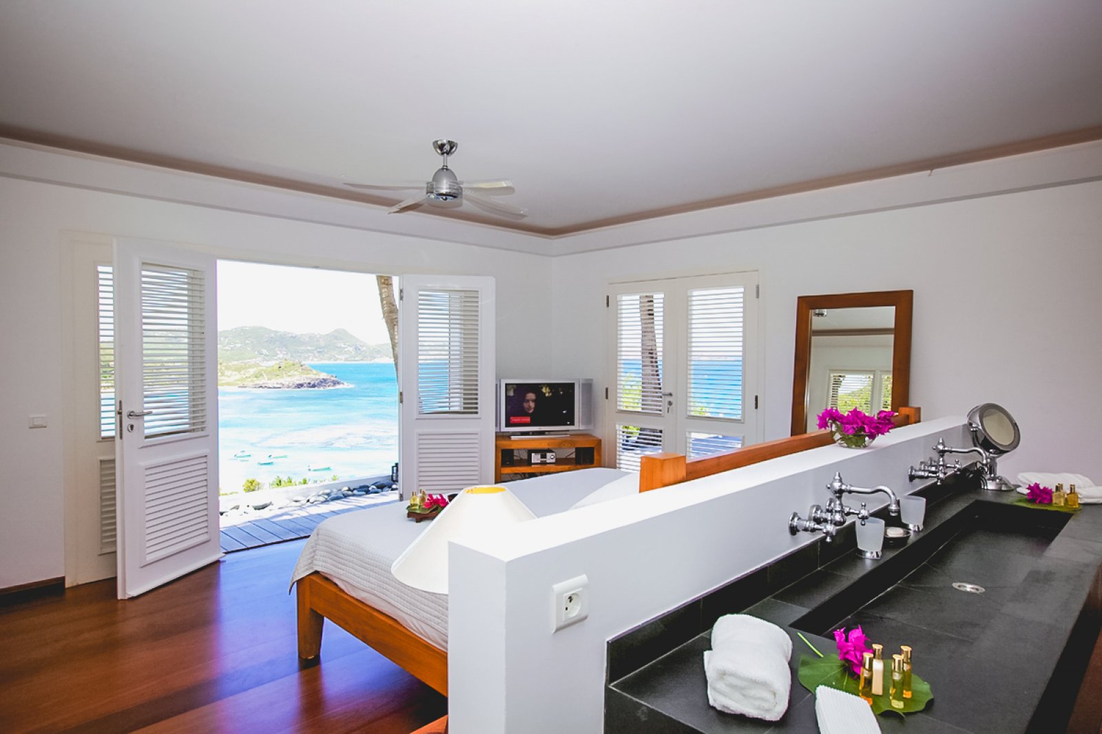 Able to host up to six guests, this hilltop St. Barts villa affords magnificent sunset views. It comes with three bedrooms and three bathrooms that can accommodate up to six guests. St. Barts visitors who want to be able to take advantage of easy access to lovely Saline beach and Lorient often are drawn to this luxury villa.