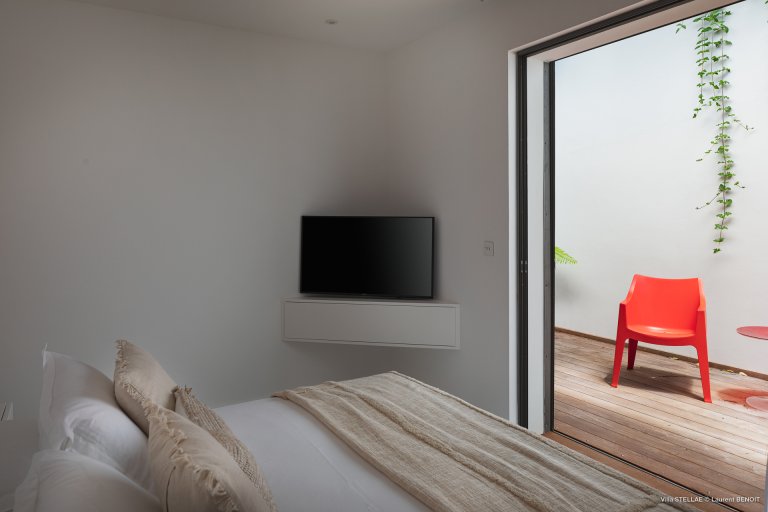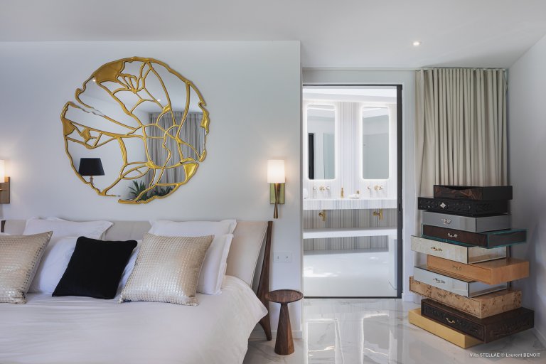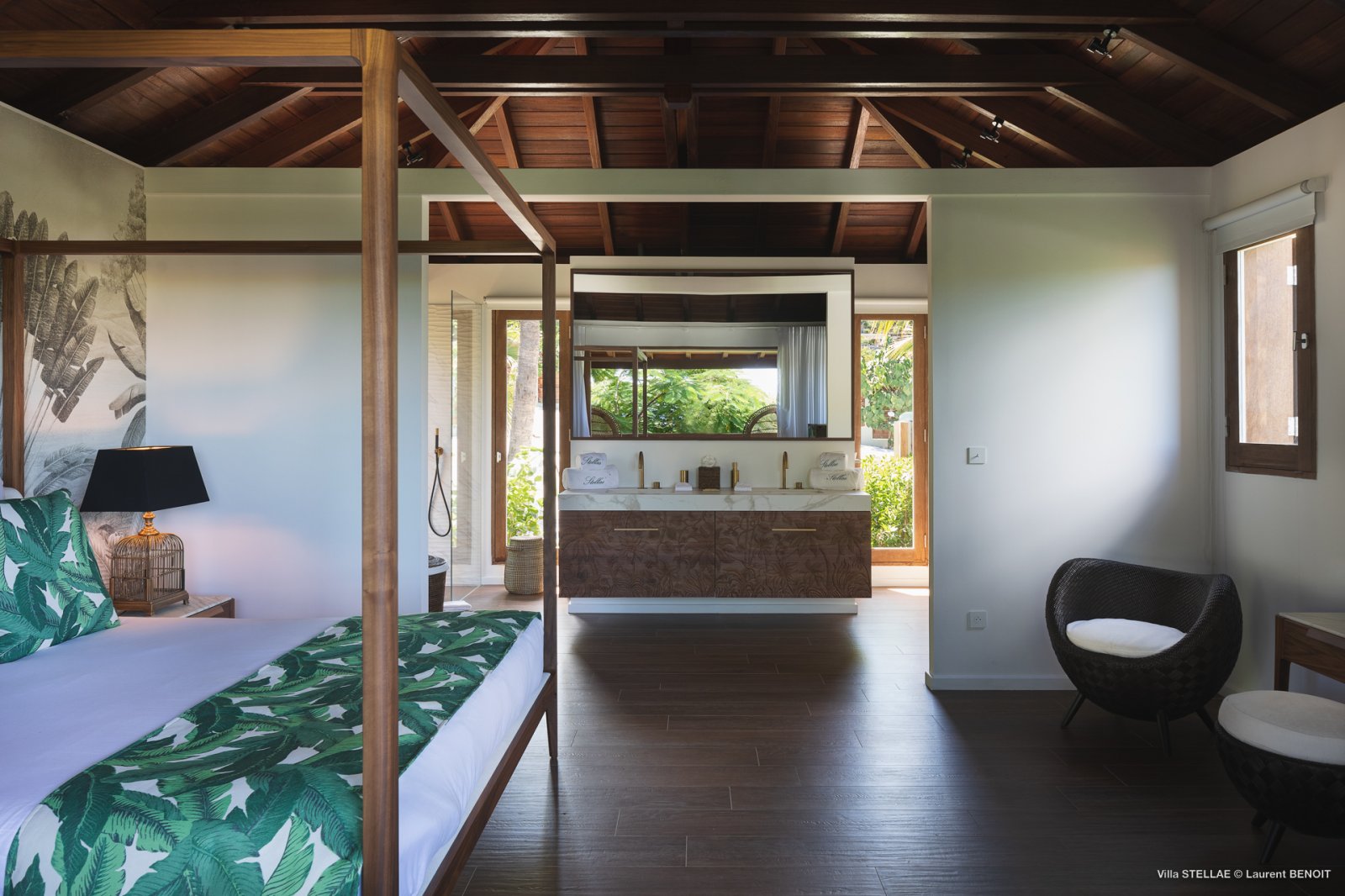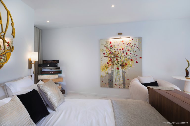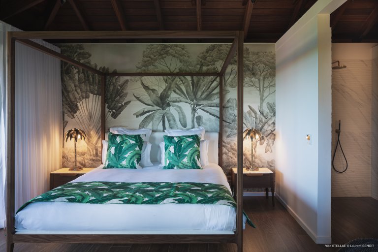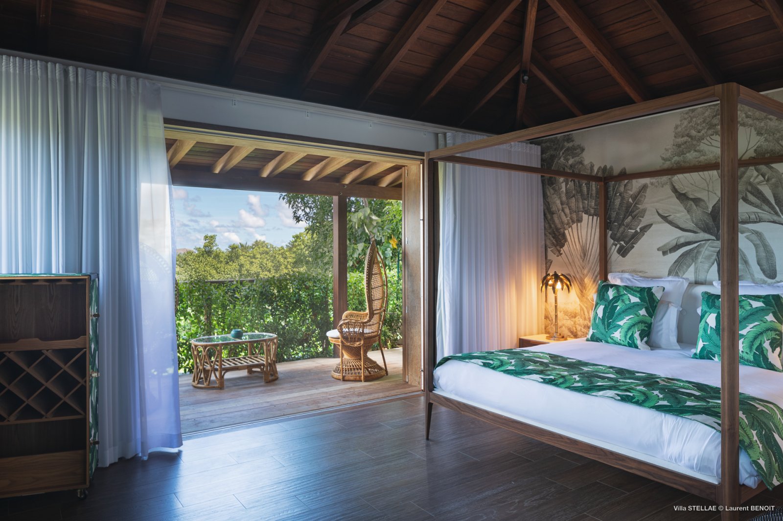 Villa Stellae's charms and surprises are so numerous they become difficult to list. A set of stone steps takes you down to the property's petanque terrain, where guests can test their skill at this traditional French game with a glass of rose under the brilliant flowers of a flambouyant tree. And less than a ten-minute walk from the property is the white-sand beach of Lorient, known for surfing at its west end and placid waters at its east end.