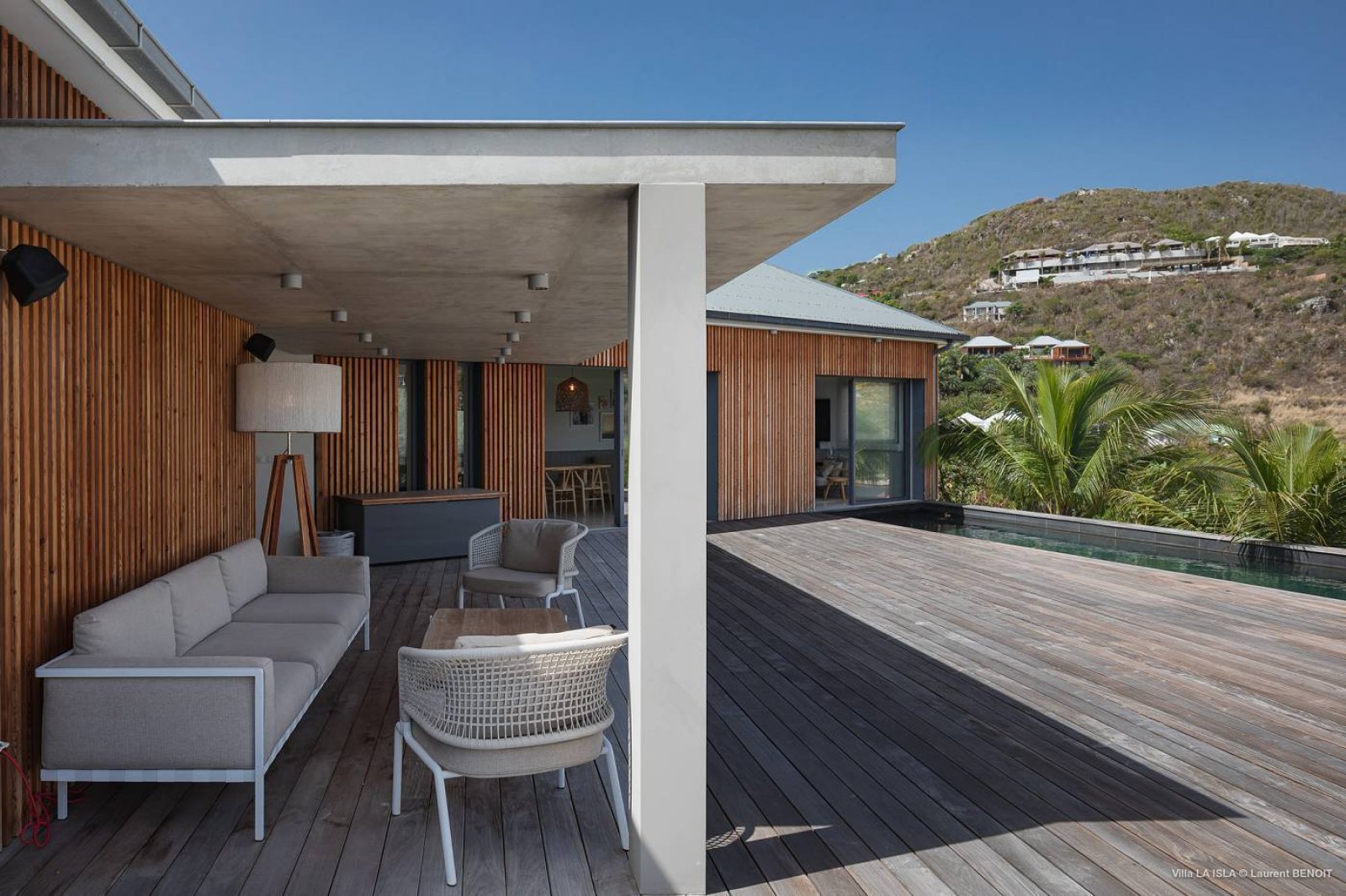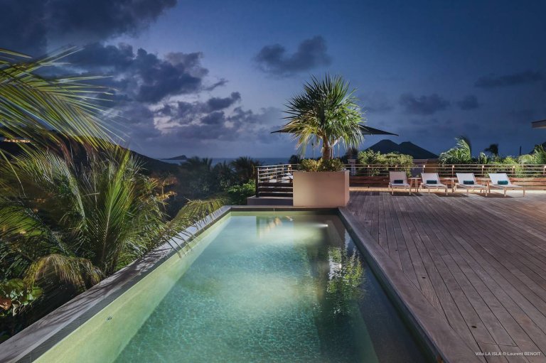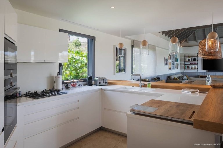 The modern and spacious Villa Isla (ILA) is a welcoming refuge for a group of friends or an extended family to share. Its location above the Bay of Marigot puts it on the quieter, more peaceful side of the island, but it is also close to the hotels and restaurants in that area, including Le Guanahani, Le Sereno, and Le Rivage.