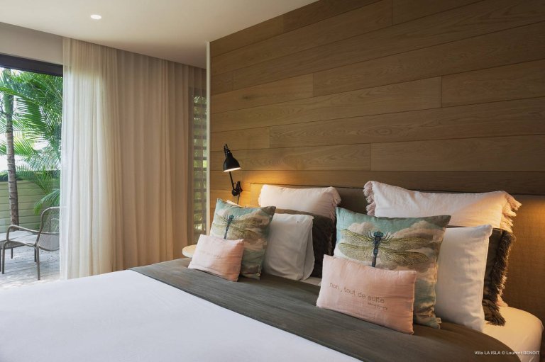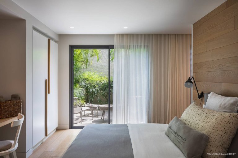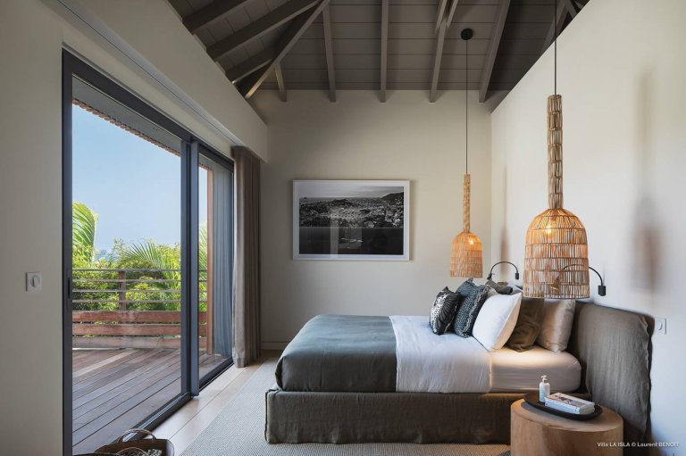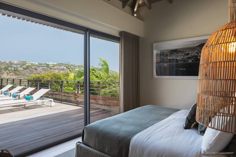 Inside the confines of the luxury rental property, Villa Isla is a place for relaxed St. Barth living. The upper level has lovely sea views. Inside, the decoration is intriguing without being overwhelming, and everything is very well maintained. The spaces are filled with natural materials, soft but vivid colors, and luminous natural light.