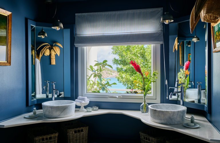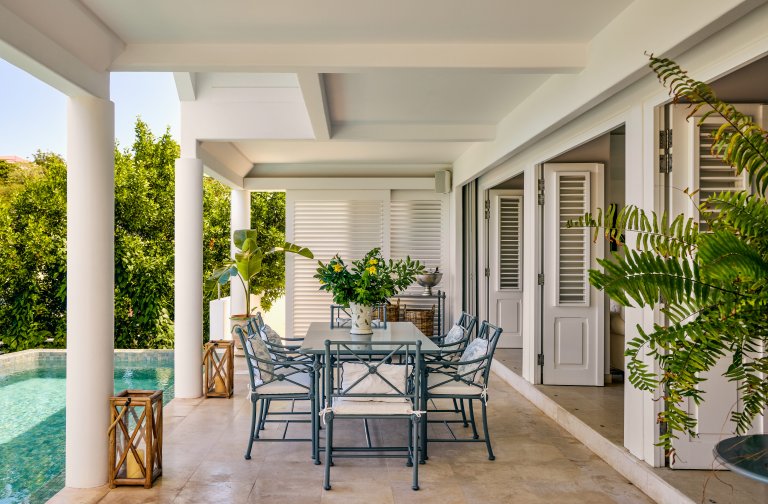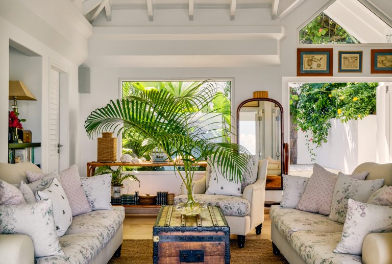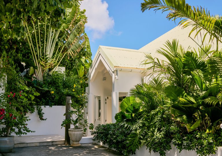 Taking its name from one of the best-known sailing vessels in history, Villa Mayflower (MAY) is inspired by the ideas of travel, discovery, history, and the marriage of the old and new worlds. The newly renovated luxury rental property in Marigot has a St. Barth–style tropical vibe, abundant sunlight, pastel colors, lots of greenery, and Caribbean architecture and style. The layout allows for ample airflow.