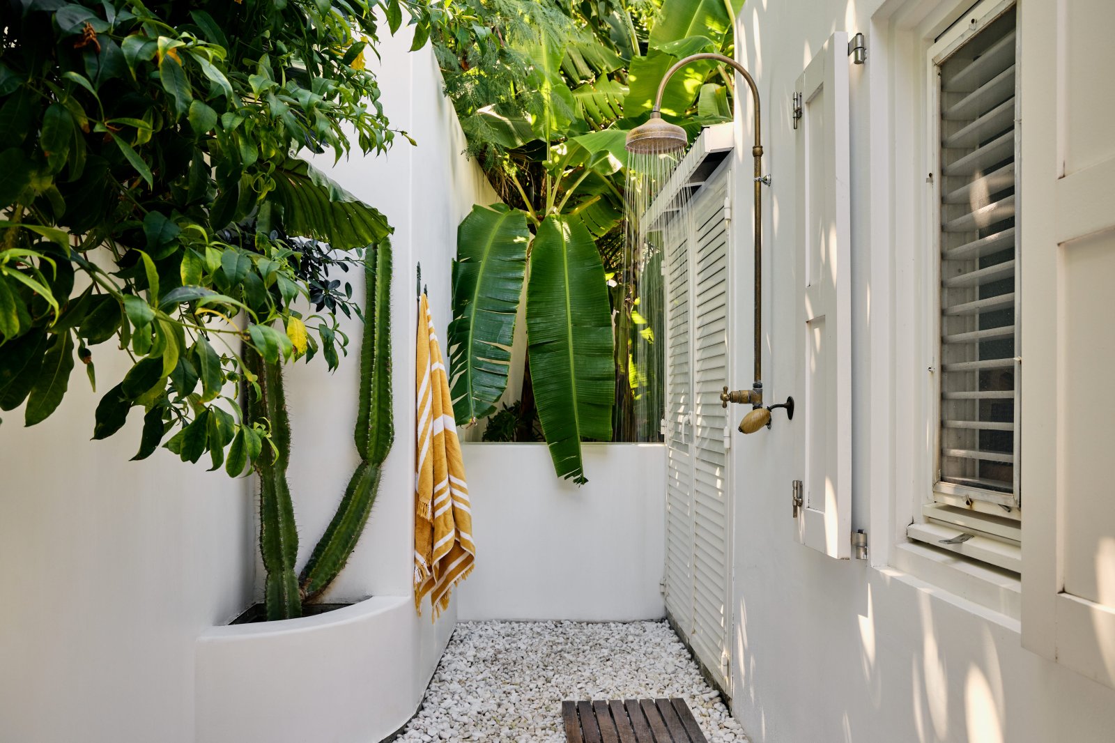 In front of the villa is a terrace with a heated pool, a covered dining area with a table that seats six (and can be expanded for up to ten), a large deck for lounging and socializing, a gas grill, and a covered gazebo. Each bedroom also has its own outdoor area for solo relaxation.