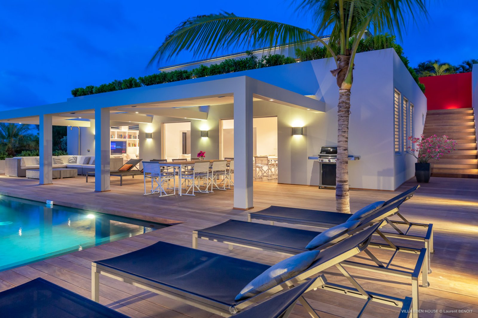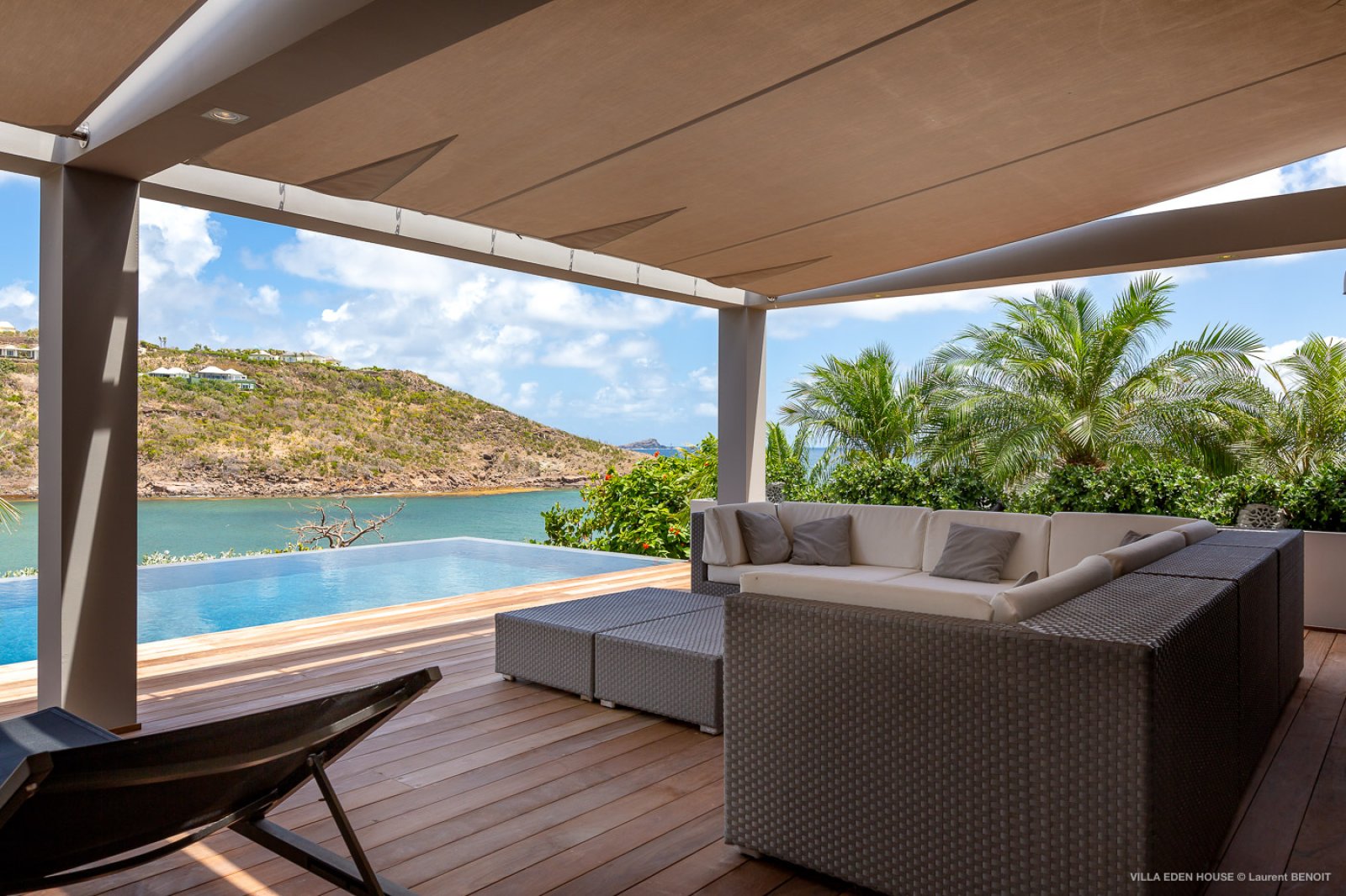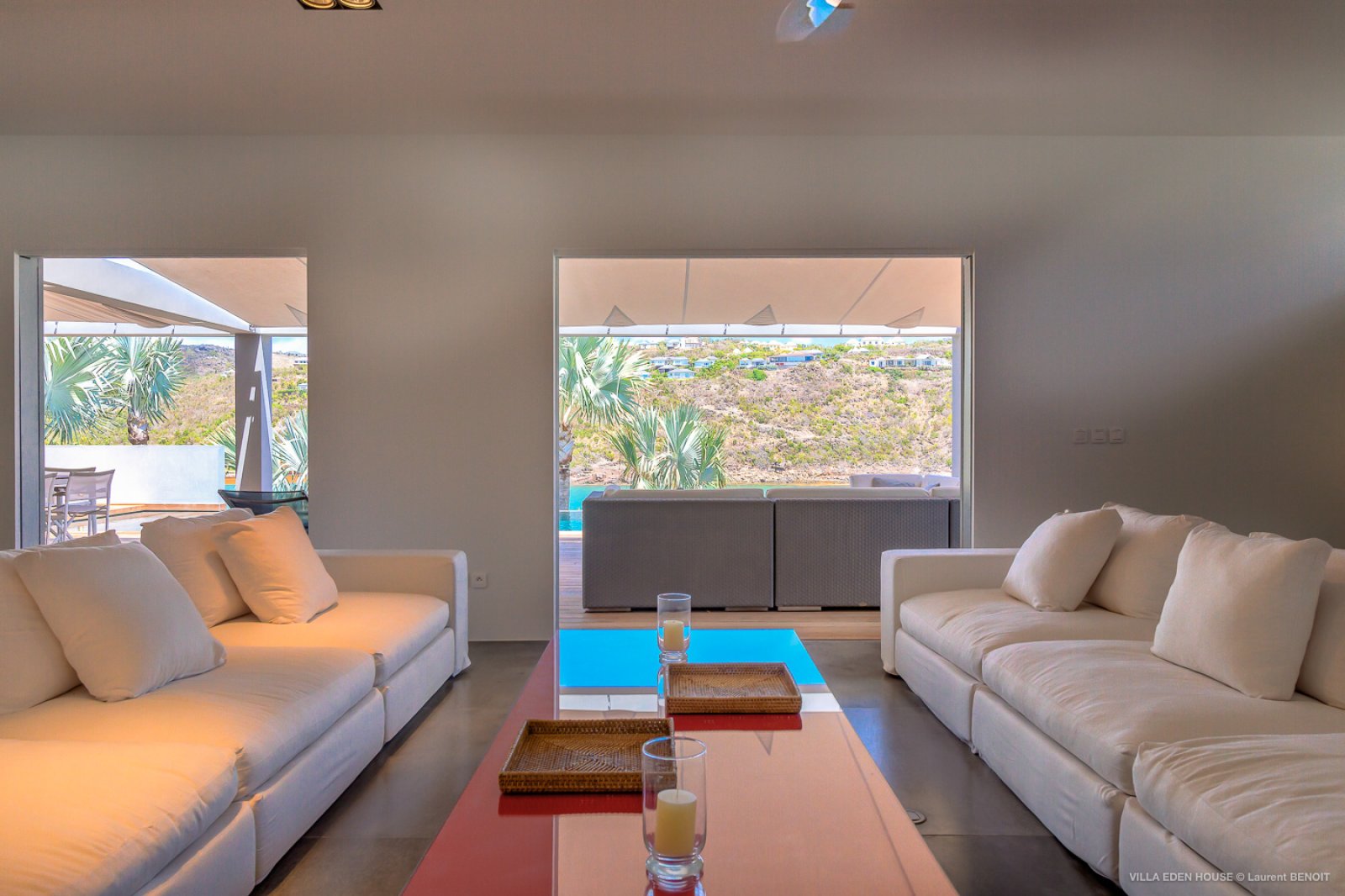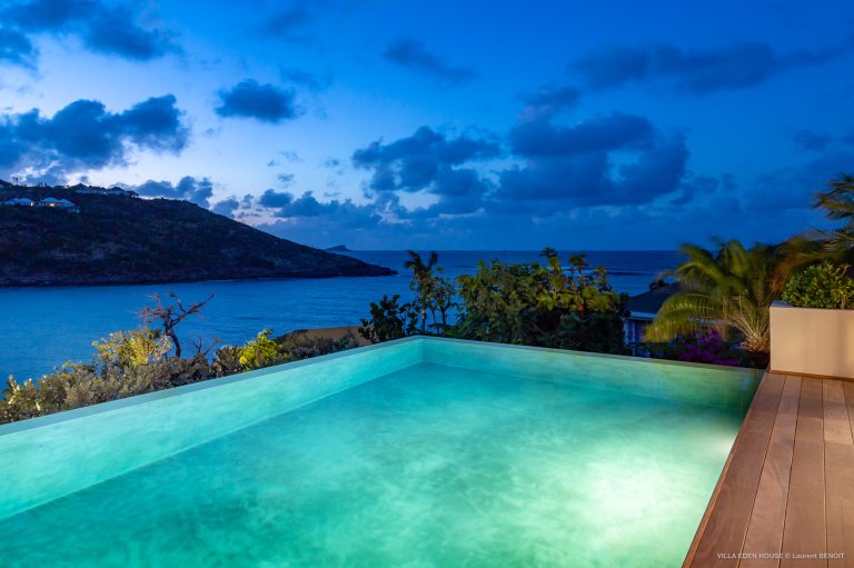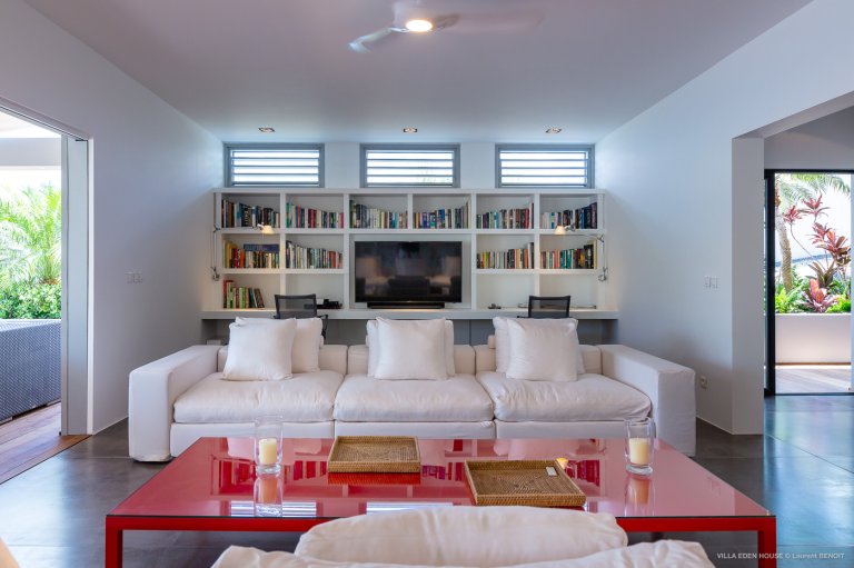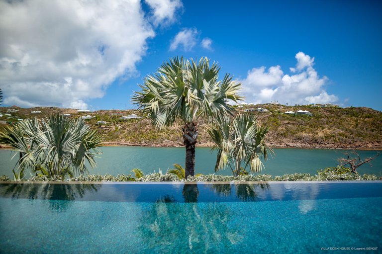 Villa Eden was one of the very first villas on the island. It has now become one of the finest contemporary achievements of the island. It also boasts an exceptional location with a path directly accessing the sea and double exposure both to Marigot Bay on one side and the Atlantic Ocean on the other. The nature of its Garden of Eden only adds to its originality. Sober lines, refined purity with a decidedly minimalist and an almost monastic style.