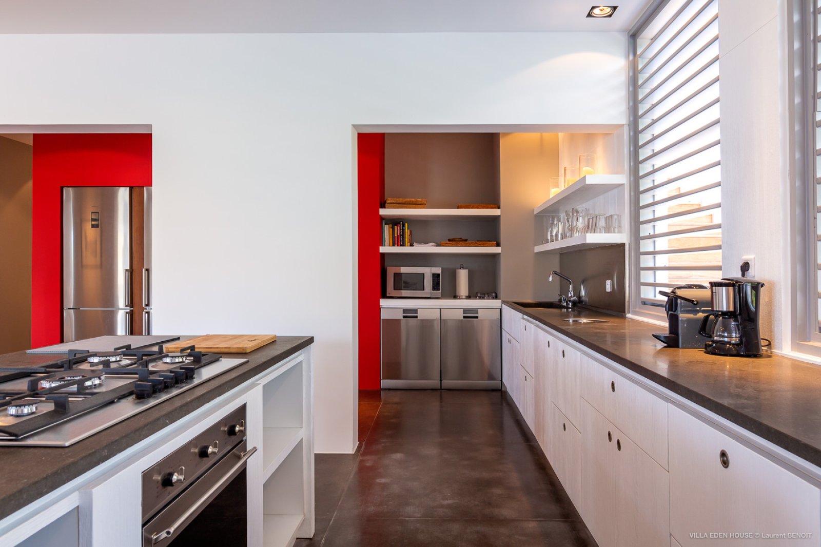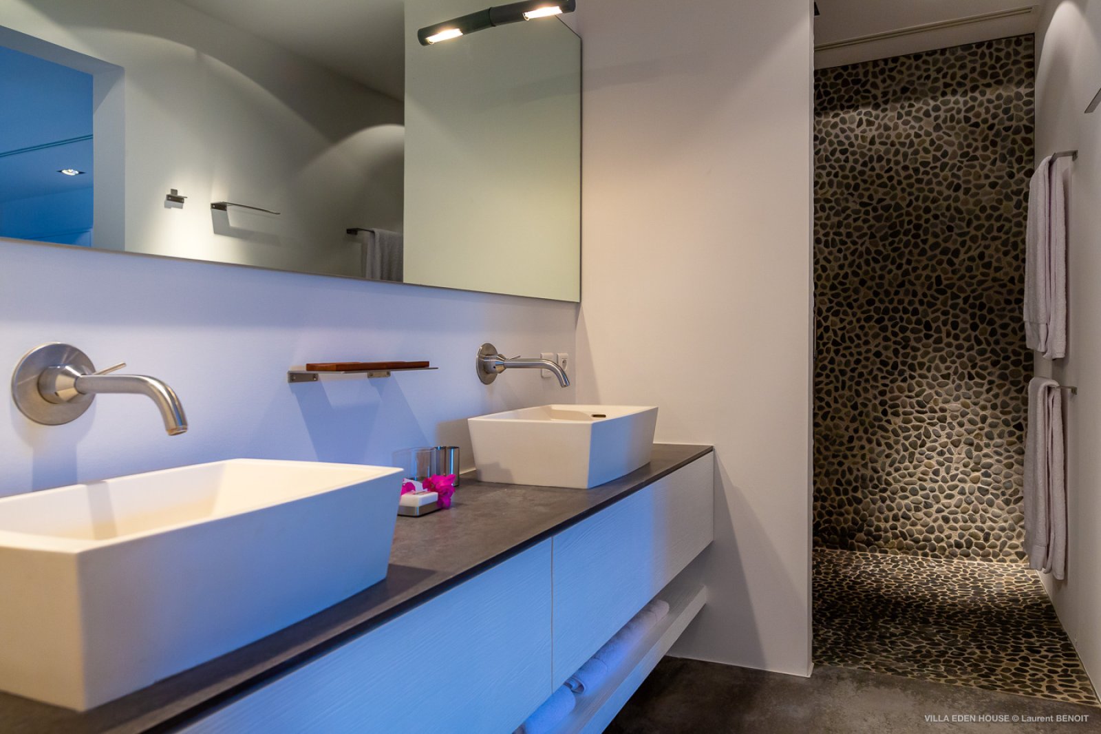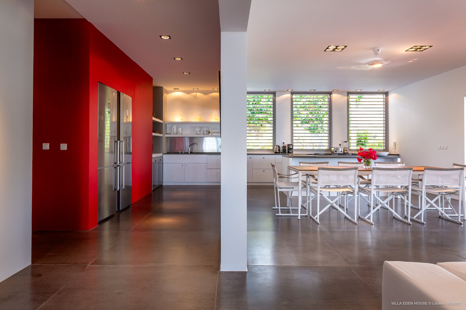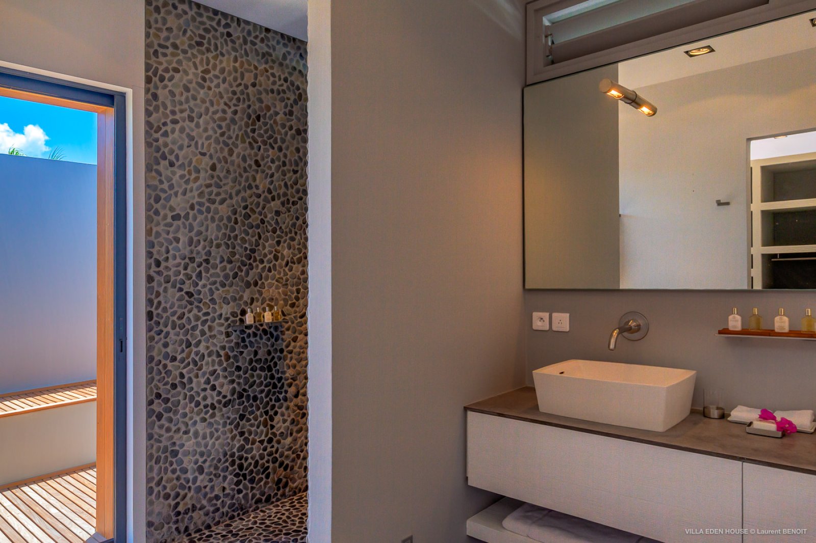 Villa Eden was one of the very first villas on the island. It has now become one of the finest contemporary achievements of the island. It also boasts an exceptional location with a path directly accessing the sea and double exposure both to Marigot Bay on one side and the Atlantic Ocean on the other. The nature of its Garden of Eden only adds to its originality. Sober lines, refined purity with a decidedly minimalist and an almost monastic style.
