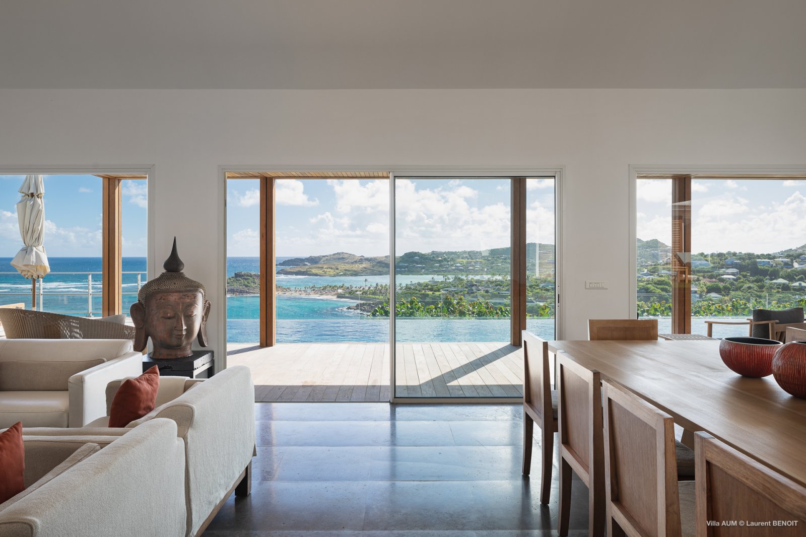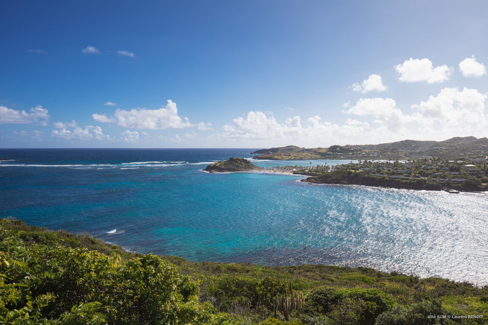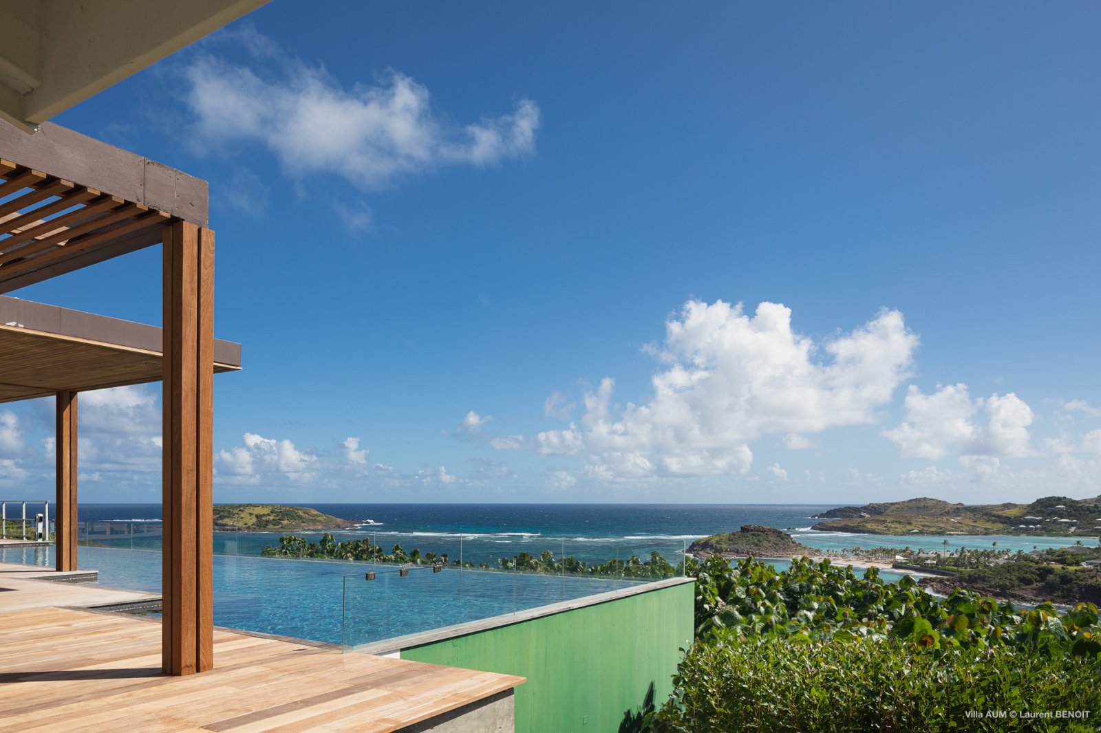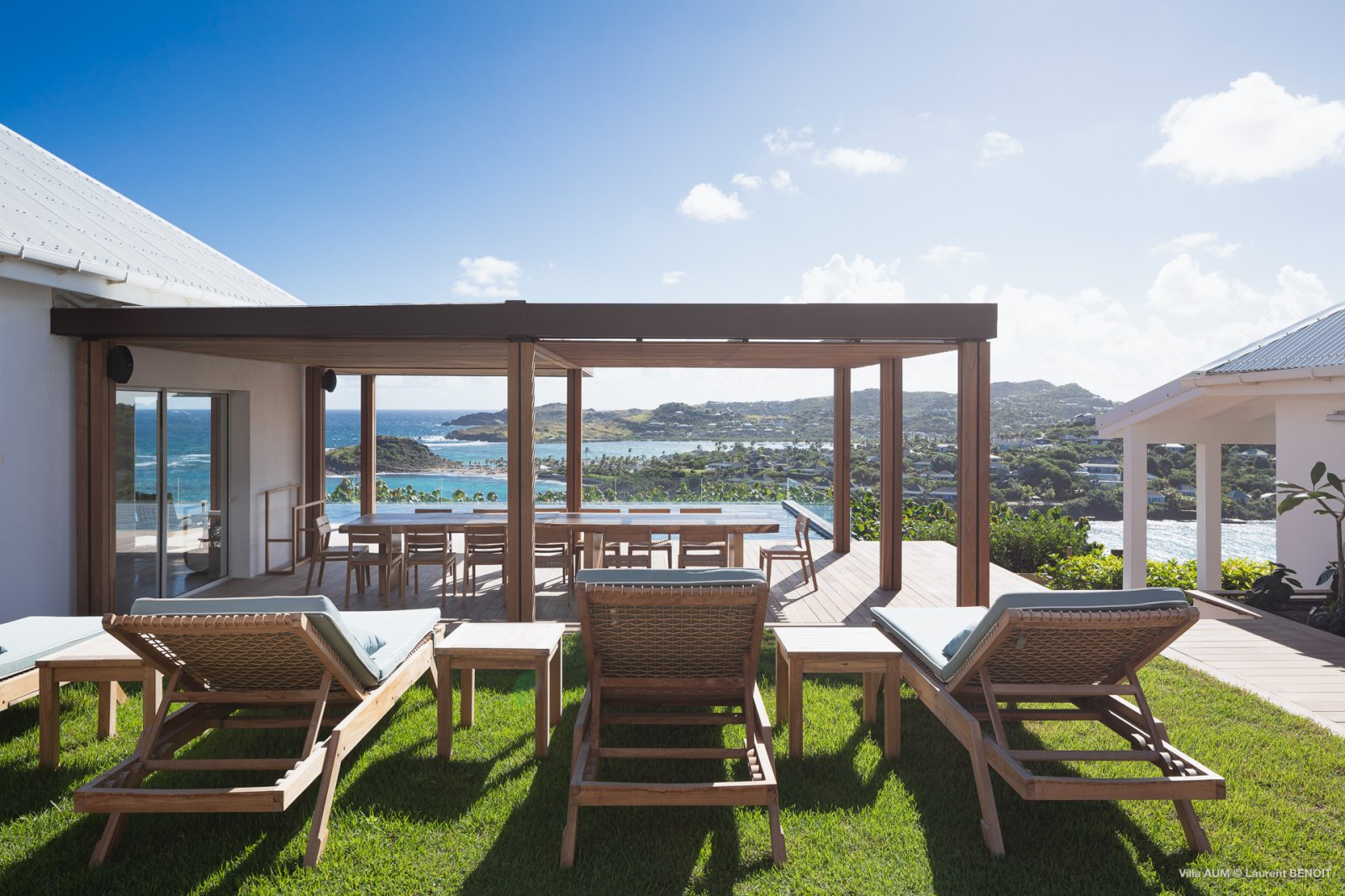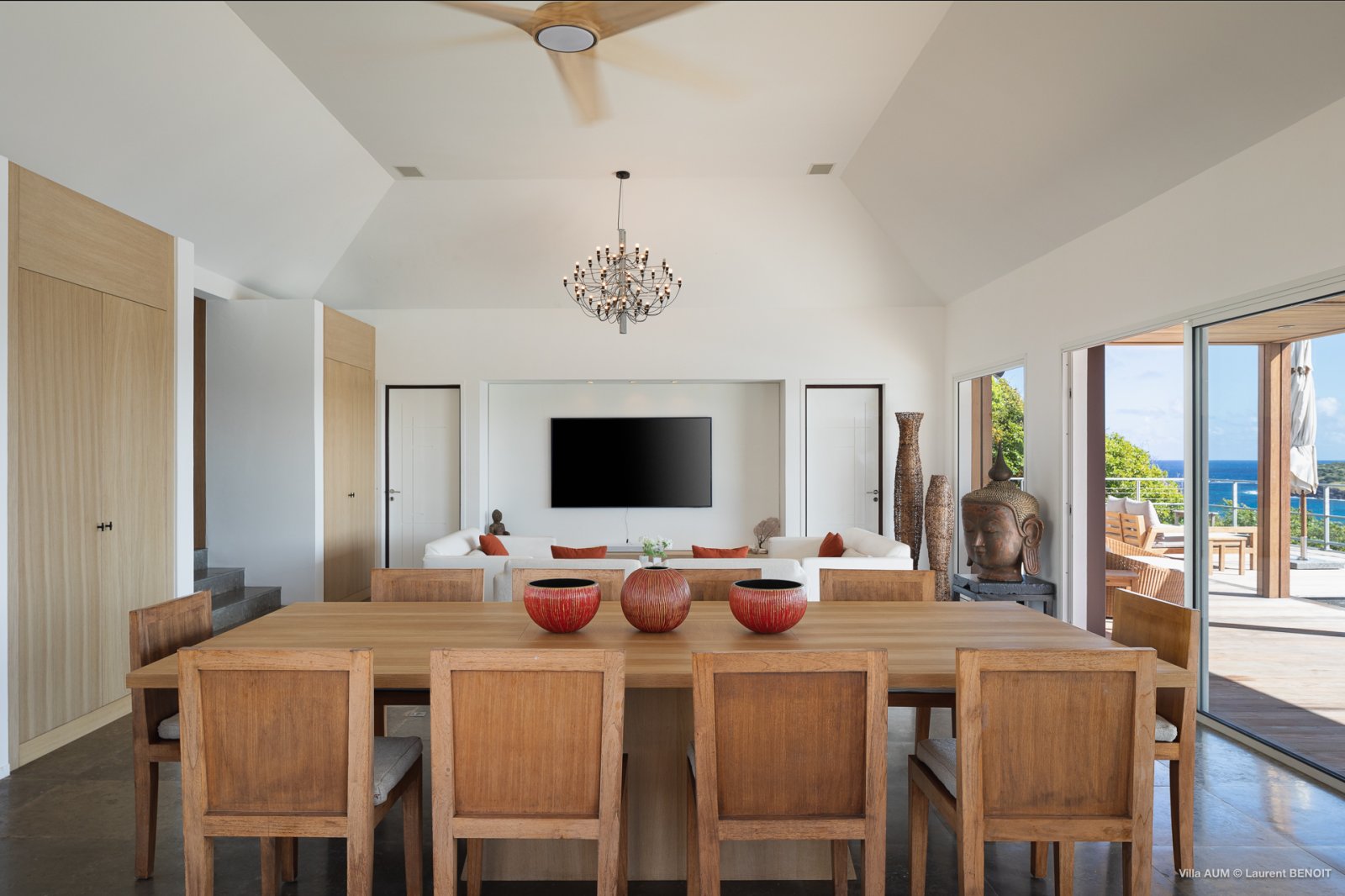 Step through the entrance to Villa AUM and you are greeted by pleasing expanses of green grass adjacent to a broad deck overlooking Marigot Bay and the vast blue of the Atlantic Ocean beyond. Located in the private, gated community of Mont Jean, Villa AUM offers its guests the perfect combination of exclusivity and ease. Just minutes from Saline Beach and the village of Lorient, AUM is convenient and yet blissfully secluded.