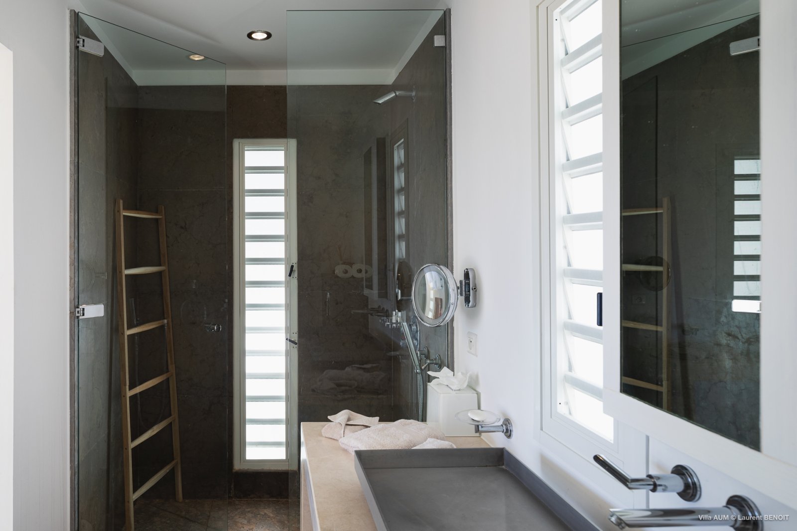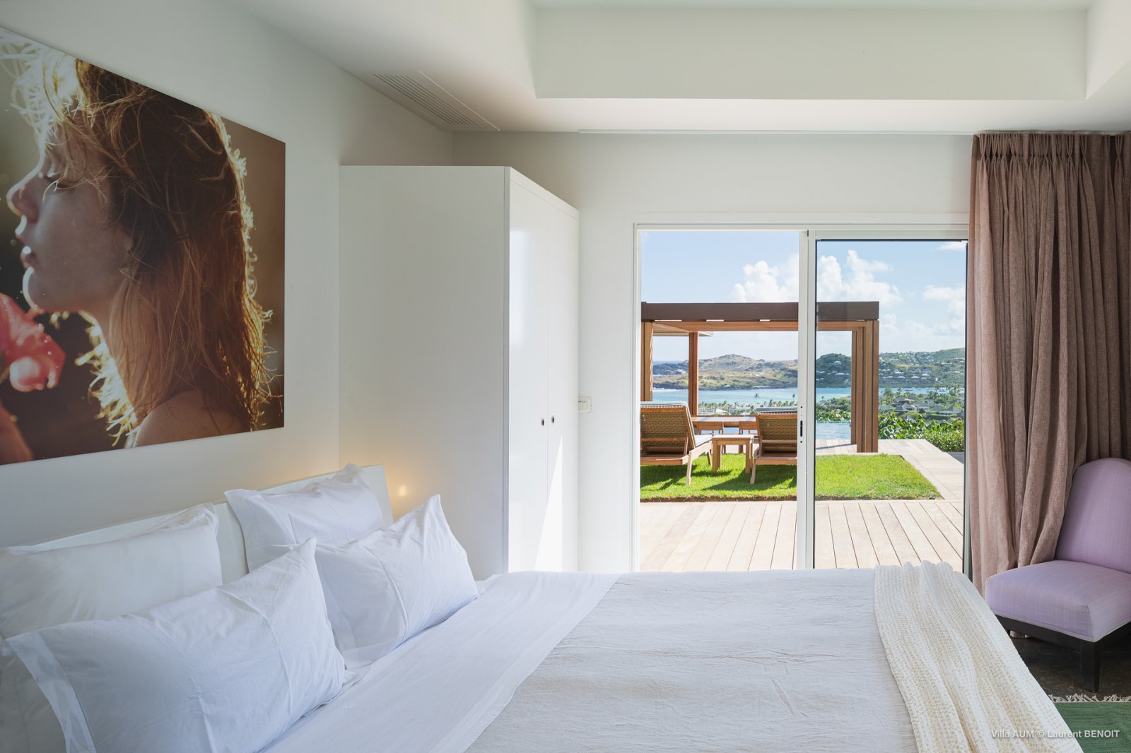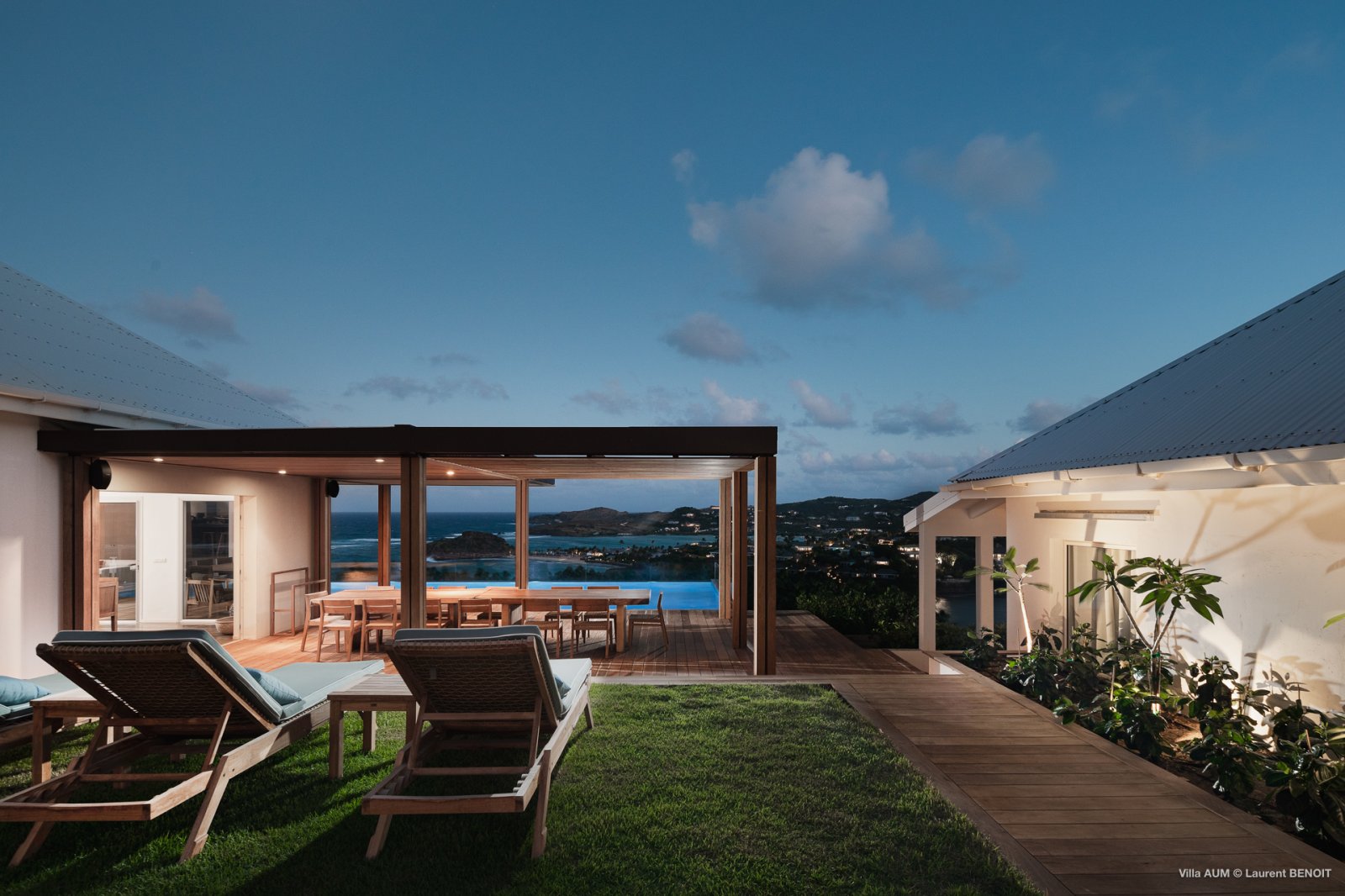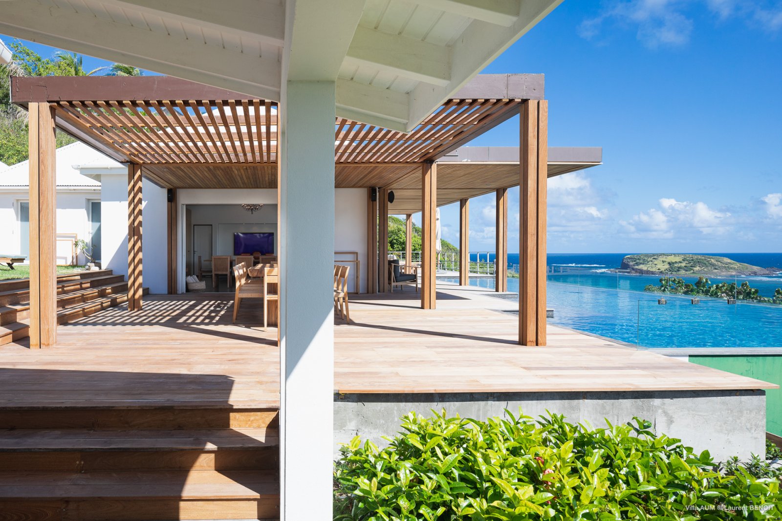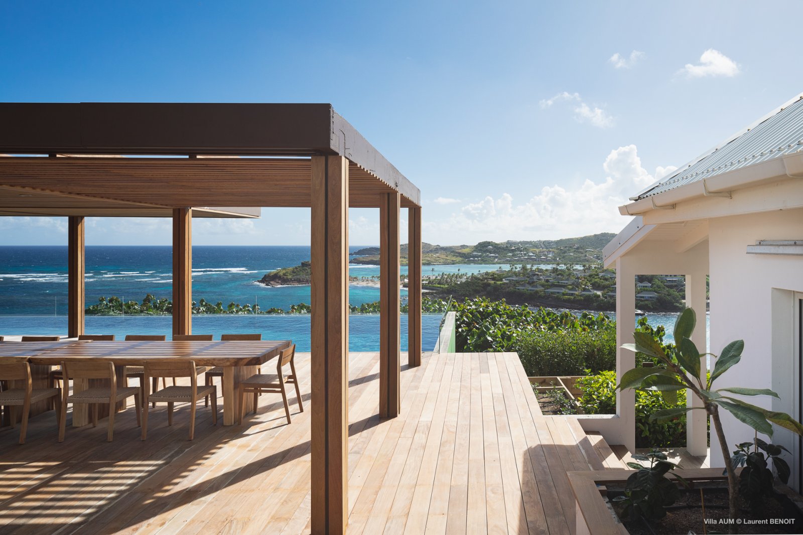 Step through the entrance to Villa AUM and you are greeted by pleasing expanses of green grass adjacent to a broad deck overlooking Marigot Bay and the vast blue of the Atlantic Ocean beyond. Located in the private, gated community of Mont Jean, Villa AUM offers its guests the perfect combination of exclusivity and ease. Just minutes from Saline Beach and the village of Lorient, AUM is convenient and yet blissfully secluded.