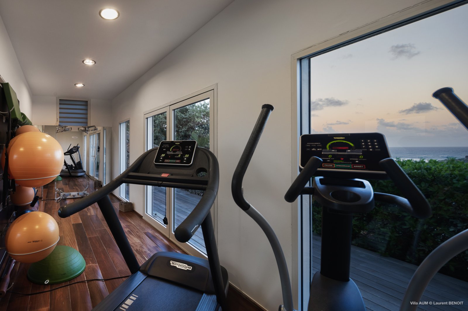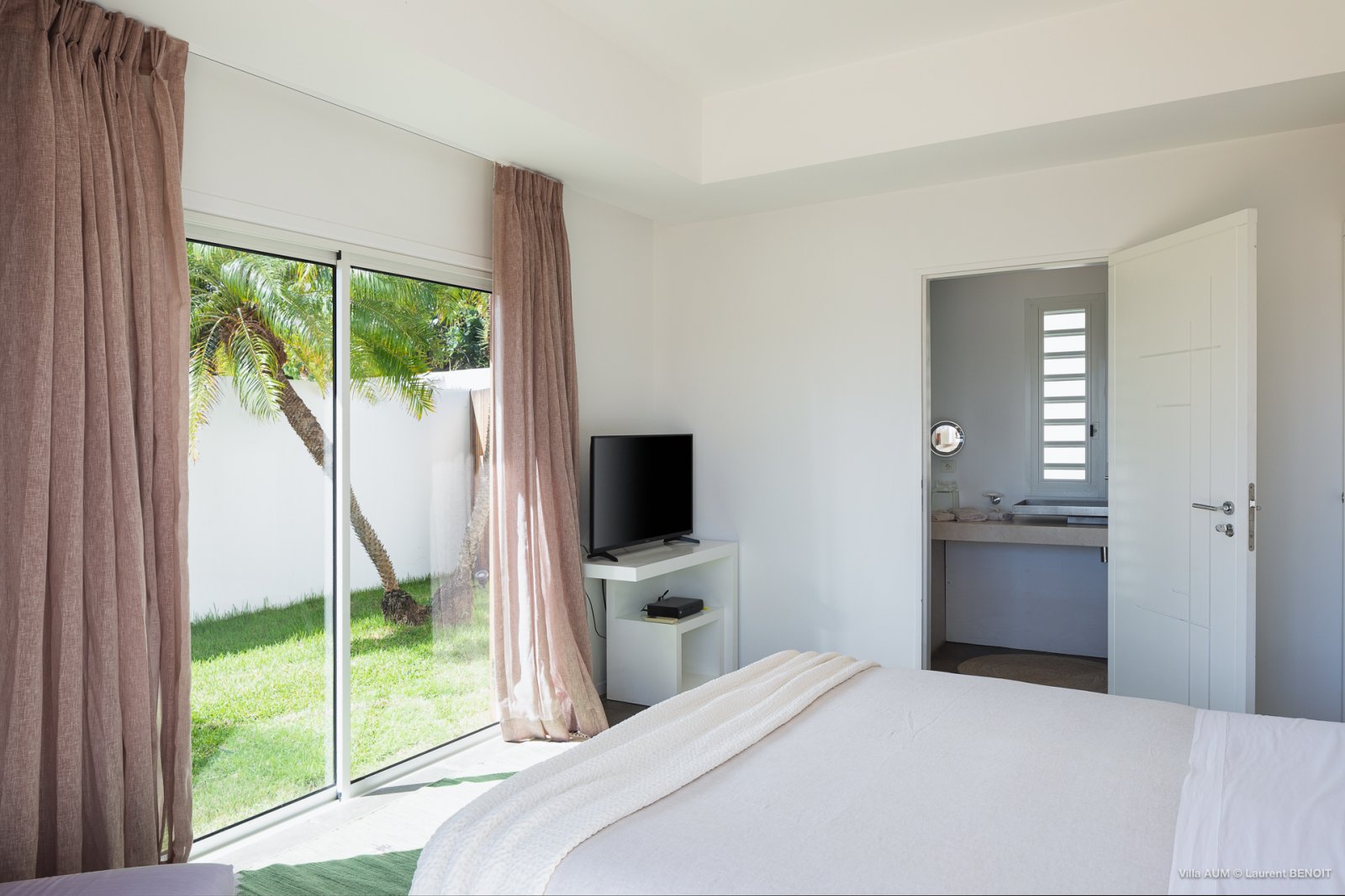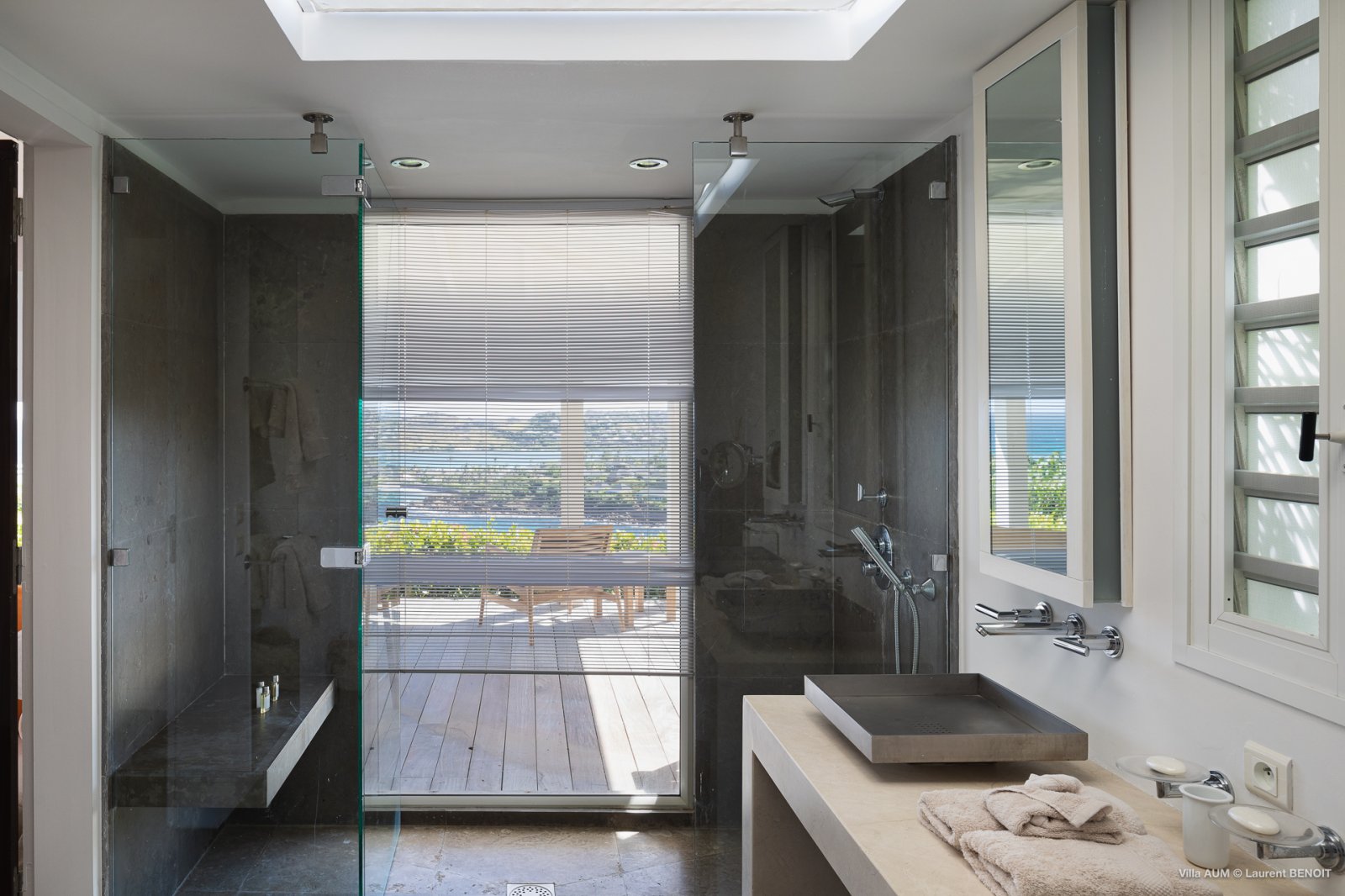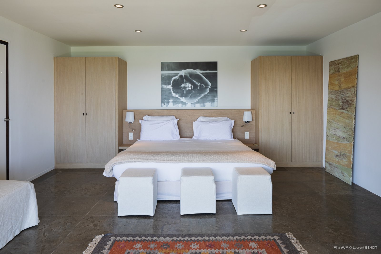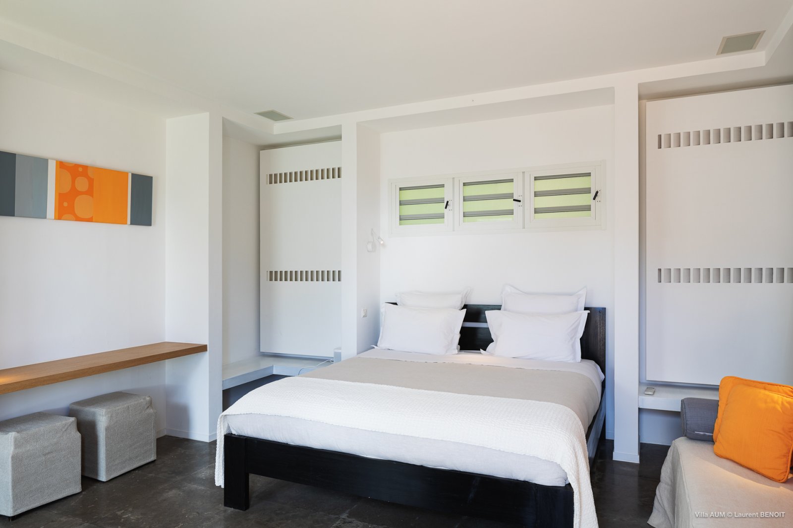 Step through the entrance to Villa AUM and you are greeted by pleasing expanses of green grass adjacent to a broad deck overlooking Marigot Bay and the vast blue of the Atlantic Ocean beyond. Located in the private, gated community of Mont Jean, Villa AUM offers its guests the perfect combination of exclusivity and ease. Just minutes from Saline Beach and the village of Lorient, AUM is convenient and yet blissfully secluded.