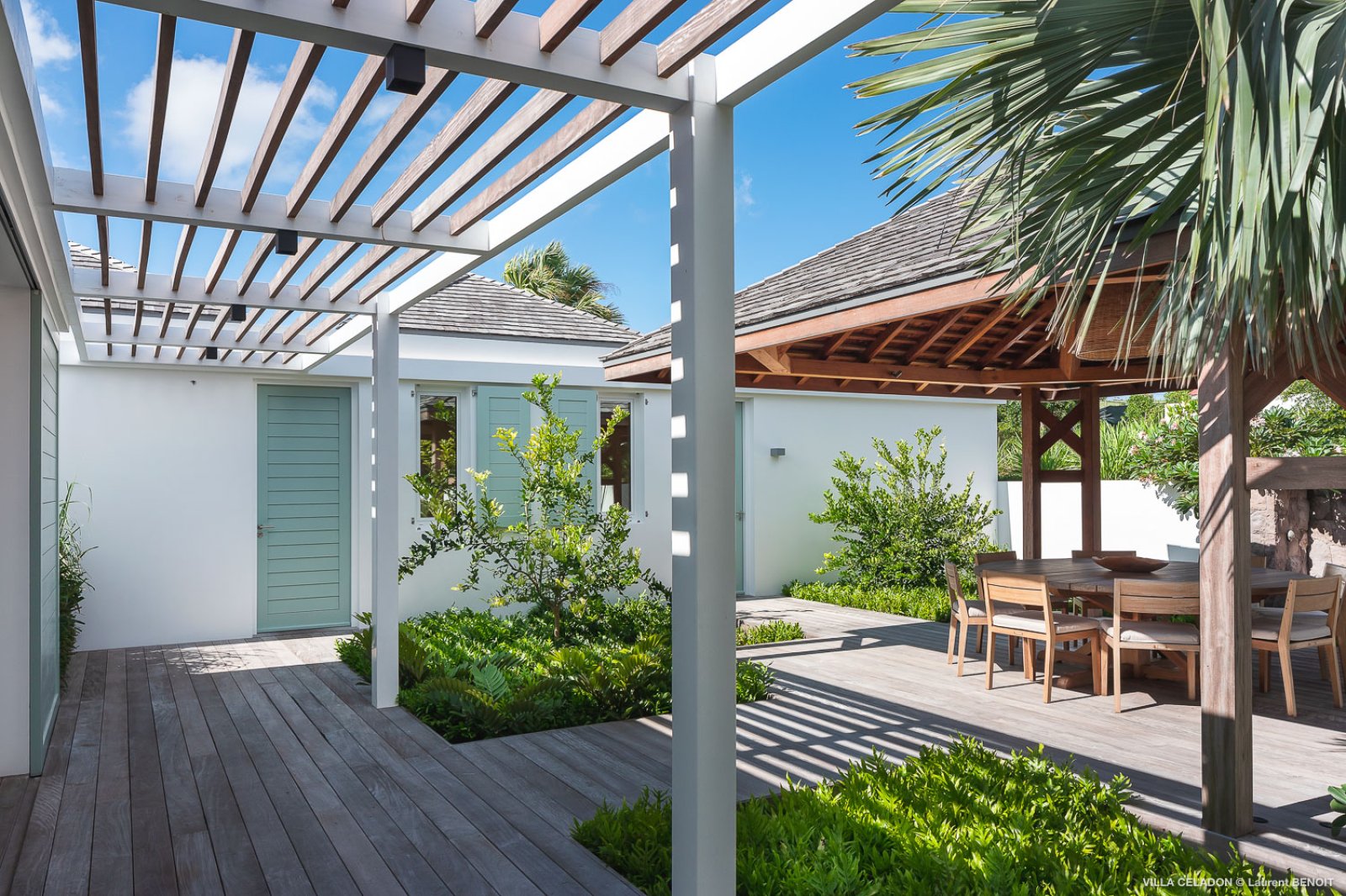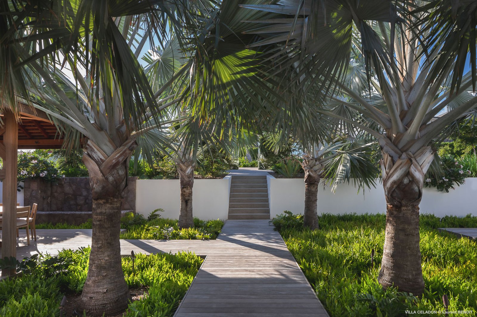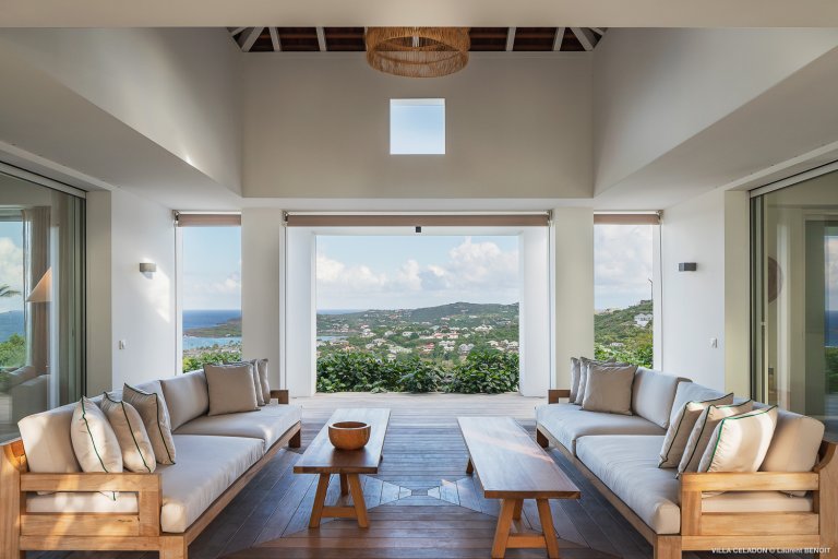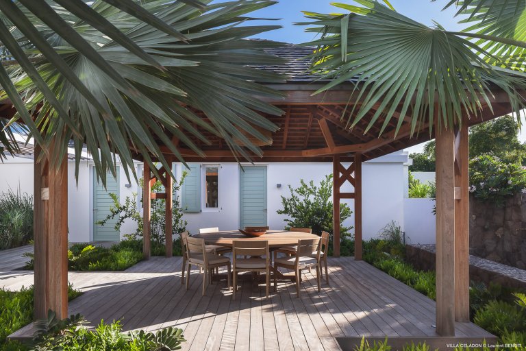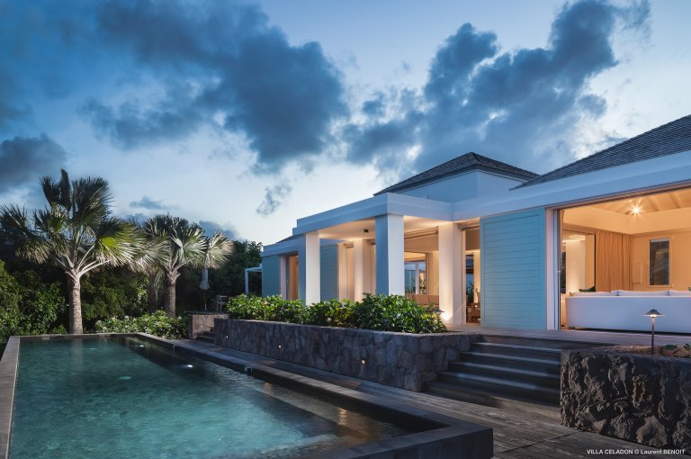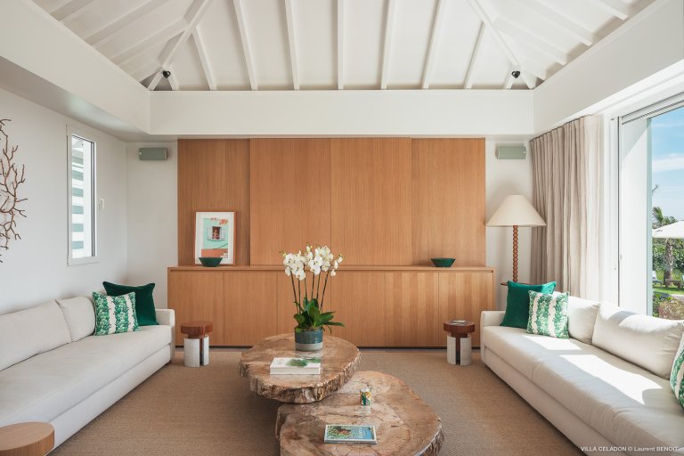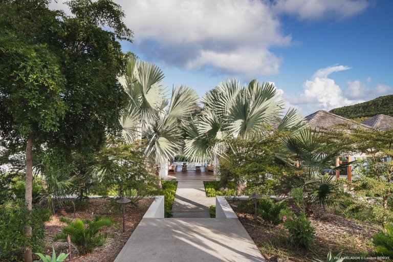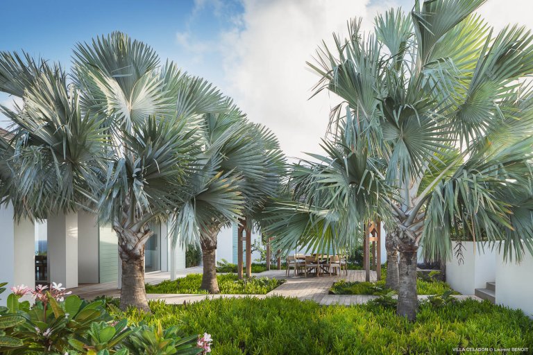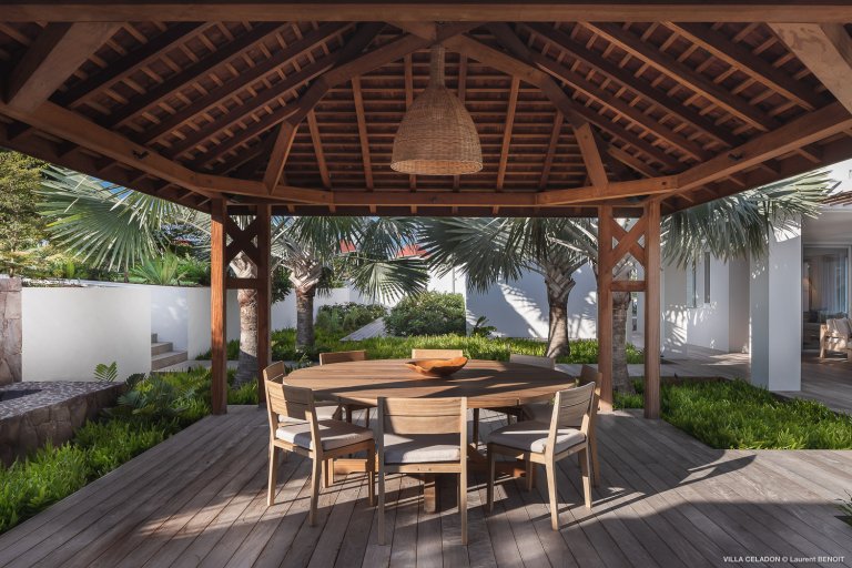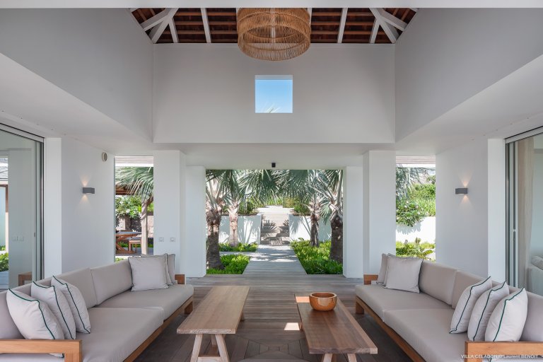 From the moment you arrive at the impressive entrance to Villa Celadon (CLD), you know that the luxury rental property is a departure from the ordinary. The villa is large, with five bedrooms and various outdoor and indoor living areas in a series of airy, breezy pavilions.