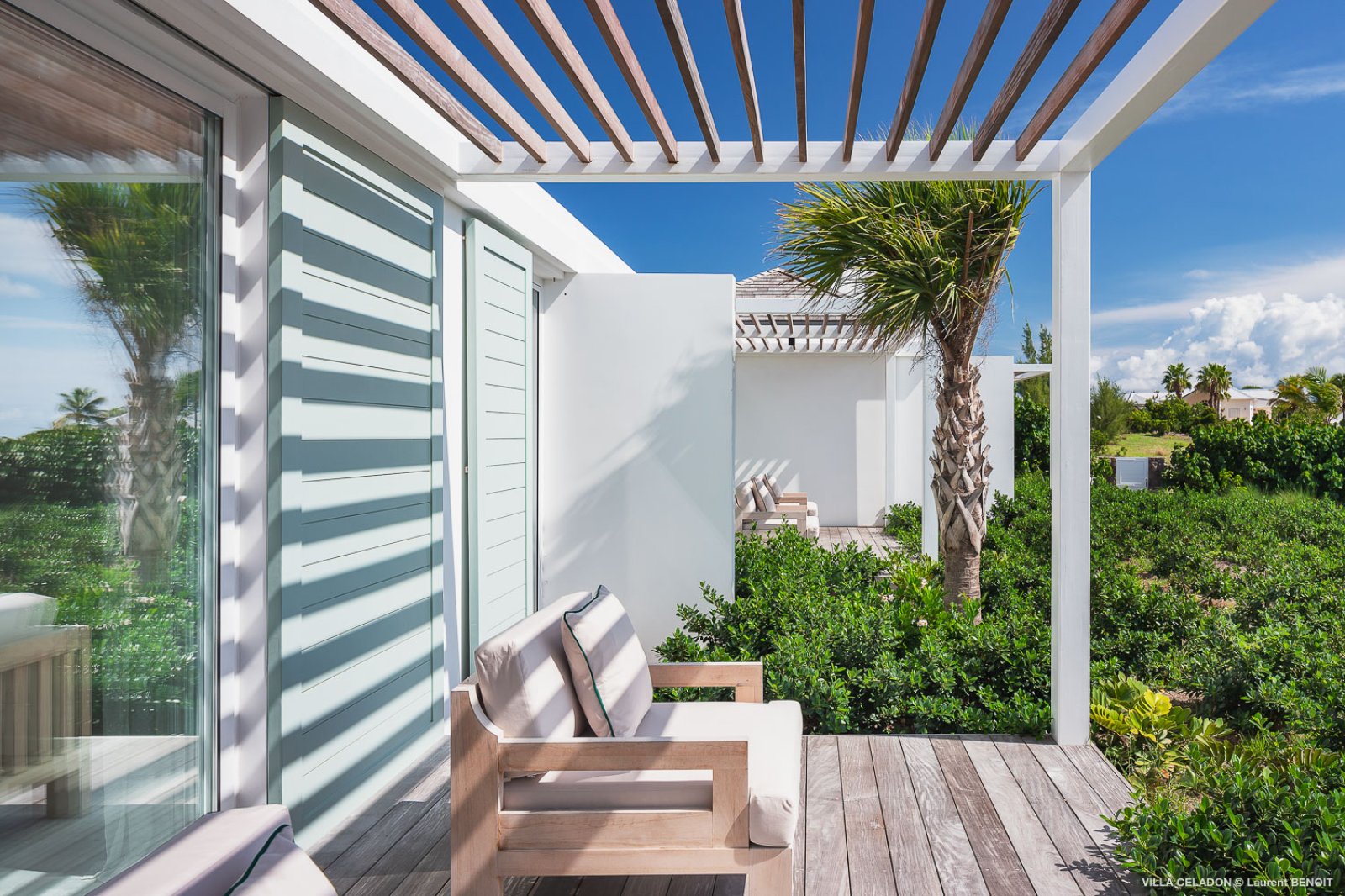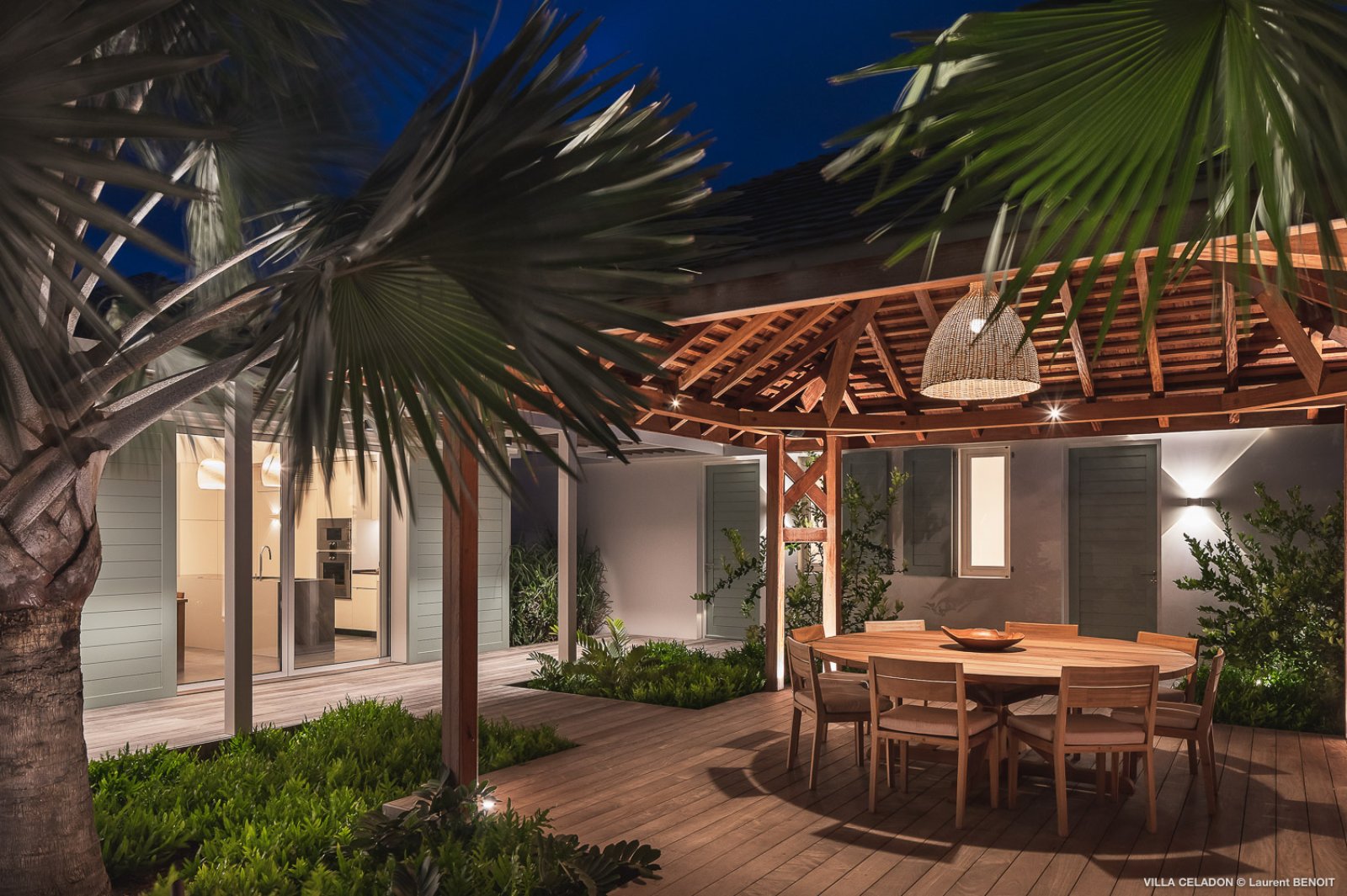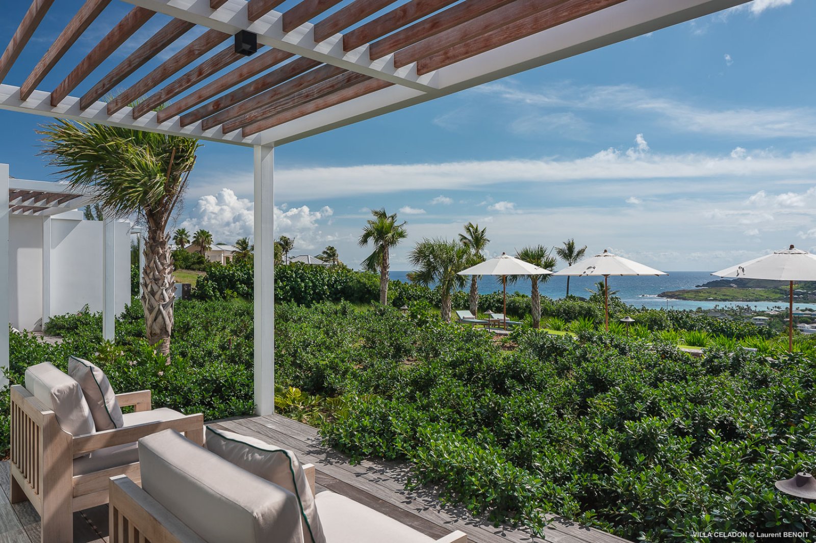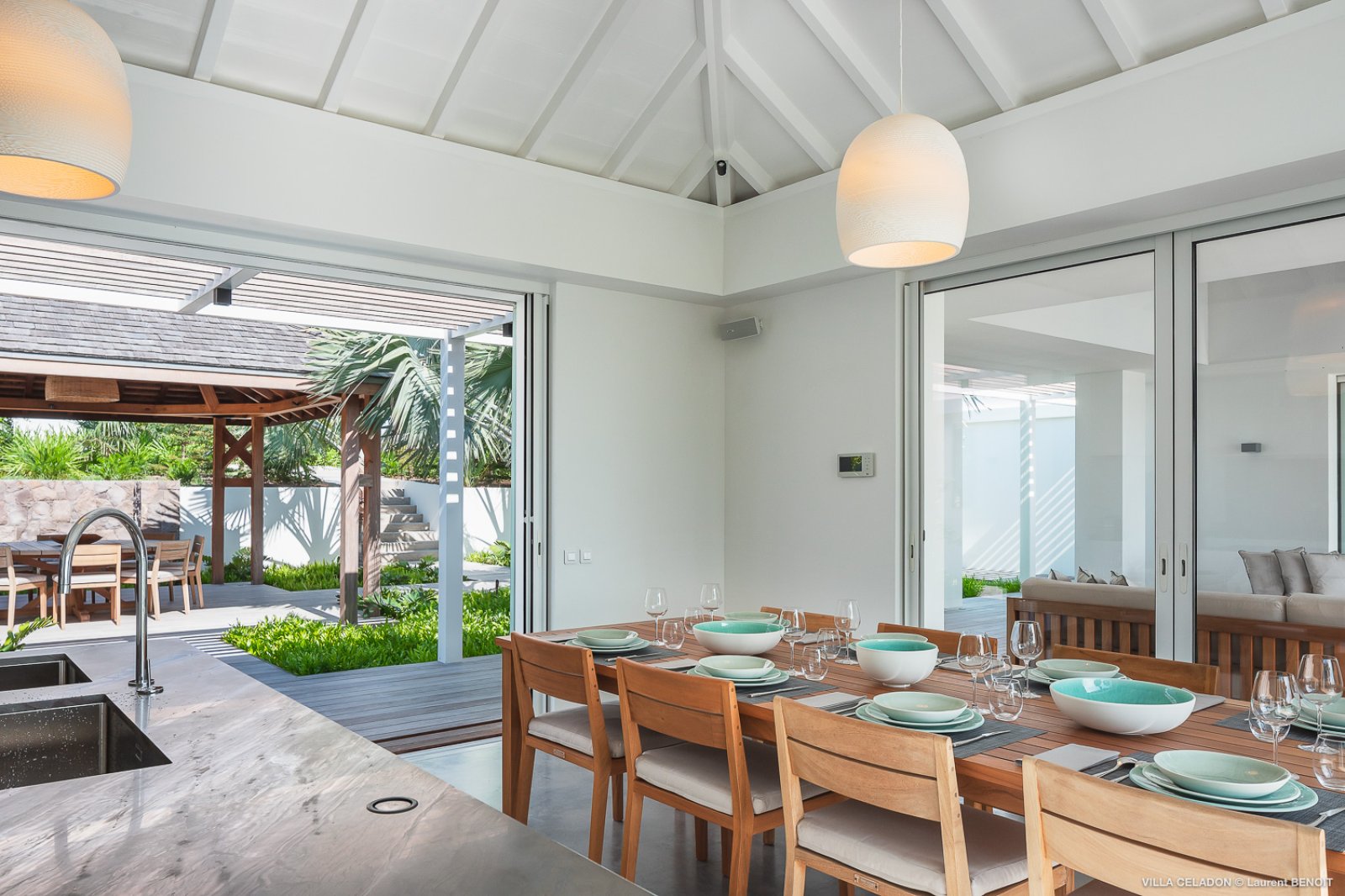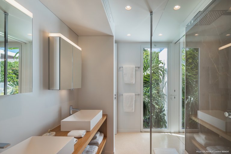 From the moment you arrive at the impressive entrance to Villa Celadon (CLD), you know that the luxury rental property is a departure from the ordinary. The villa is large, with five bedrooms and various outdoor and indoor living areas in a series of airy, breezy pavilions.