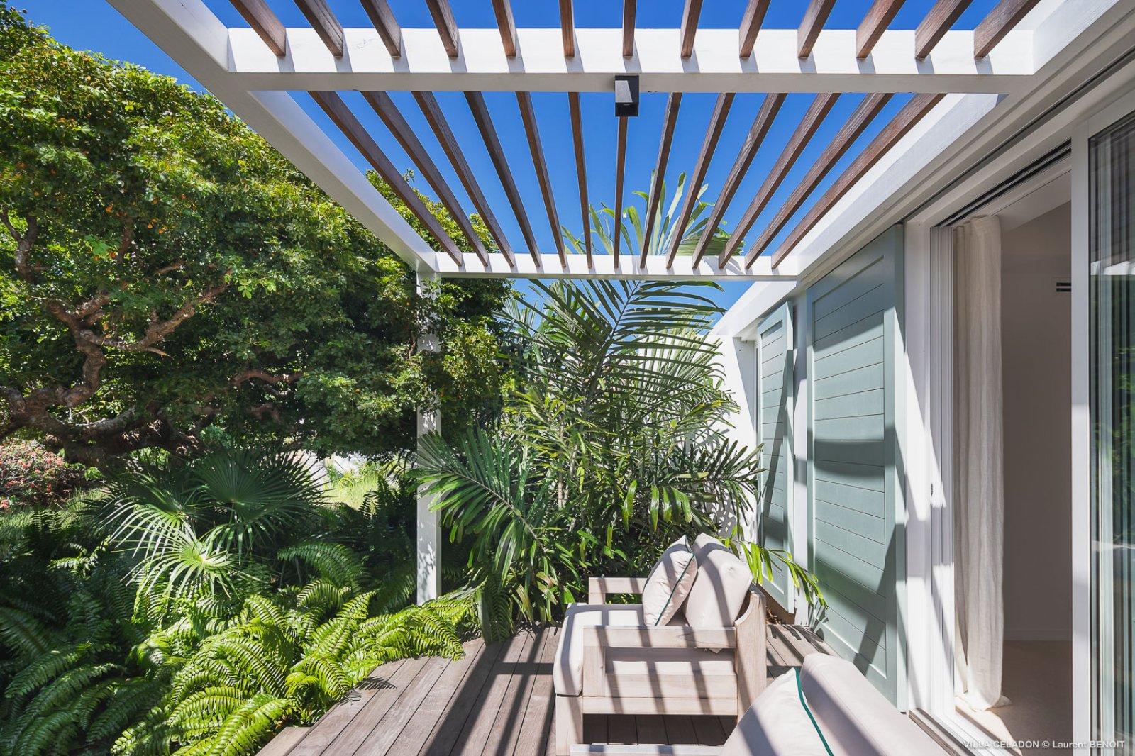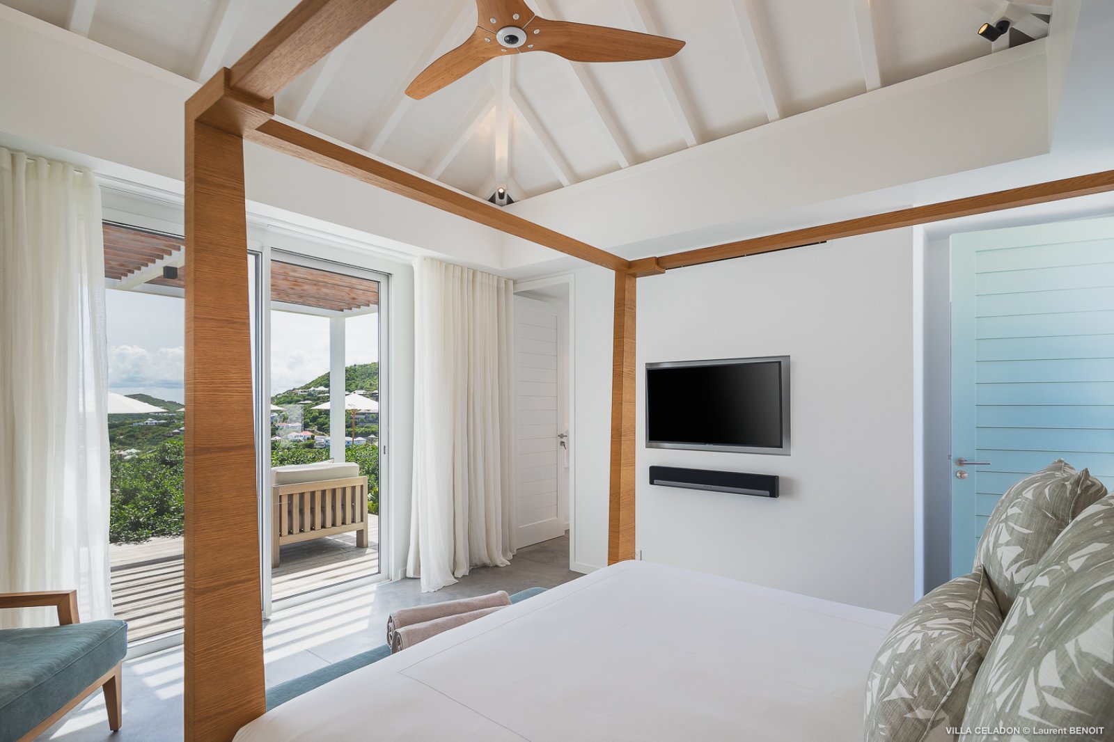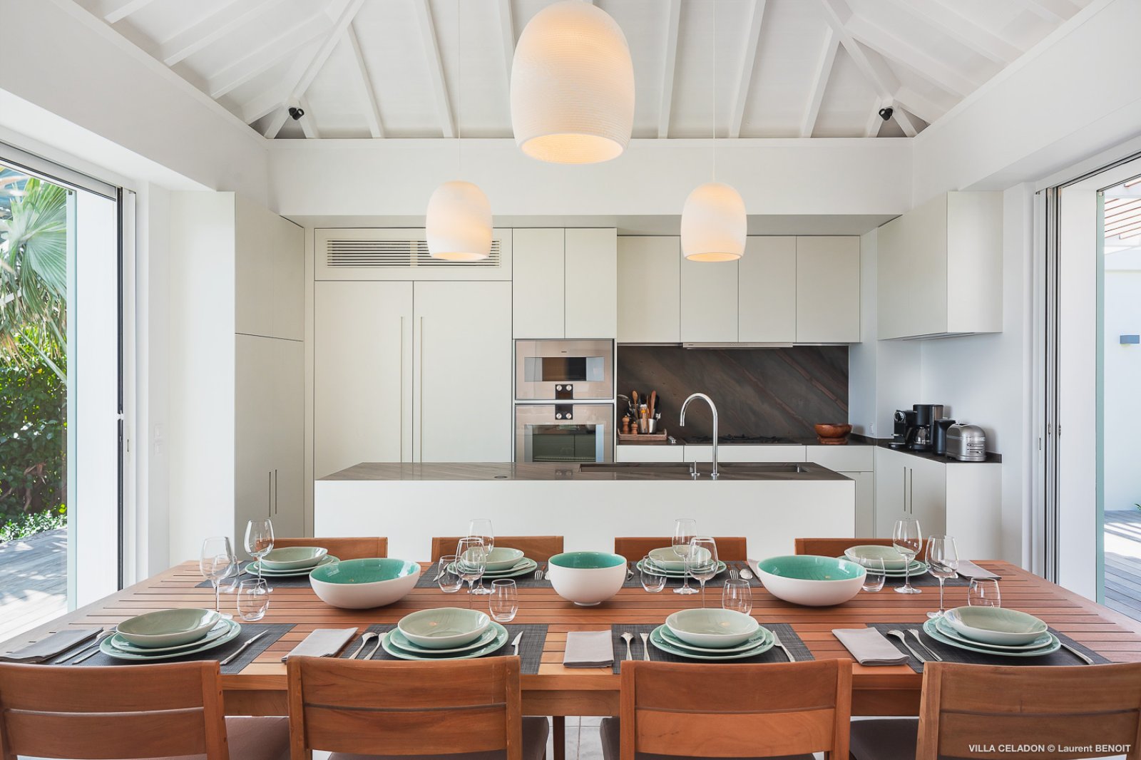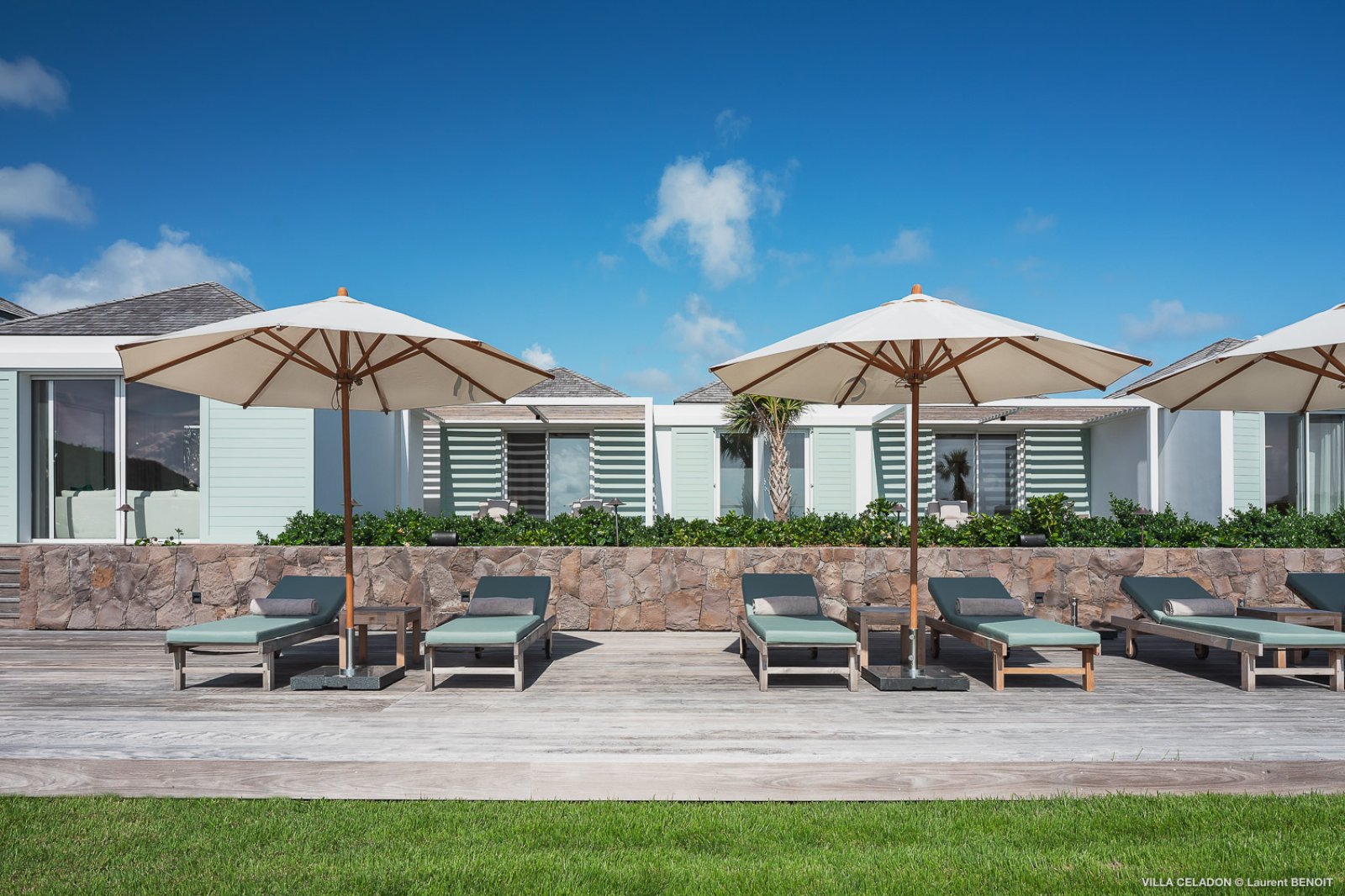 From the moment you arrive at the impressive entrance to Villa Celadon (CLD), you know that the luxury rental property is a departure from the ordinary. The villa is large, with five bedrooms and various outdoor and indoor living areas in a series of airy, breezy pavilions.