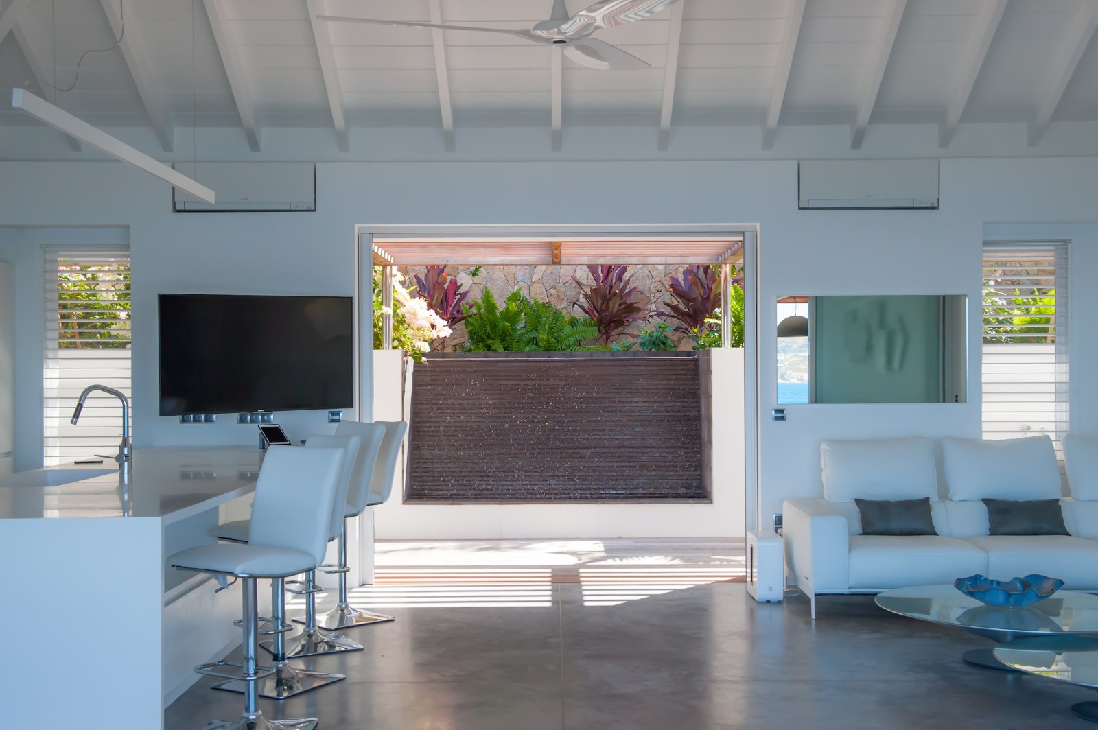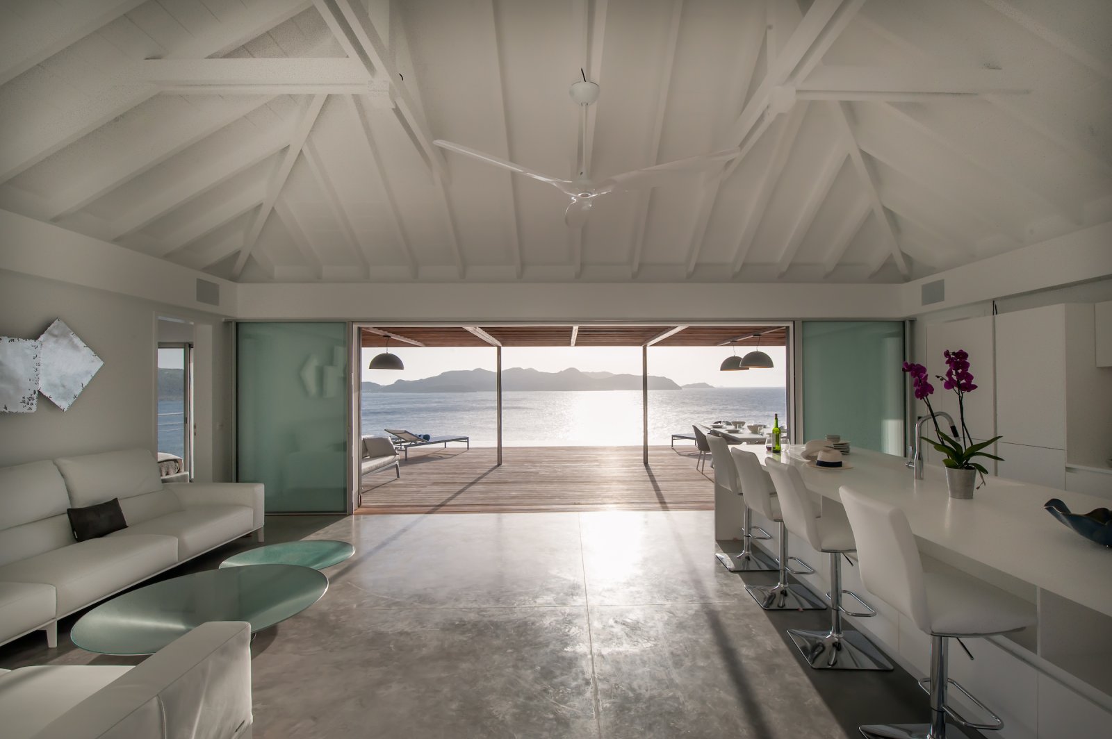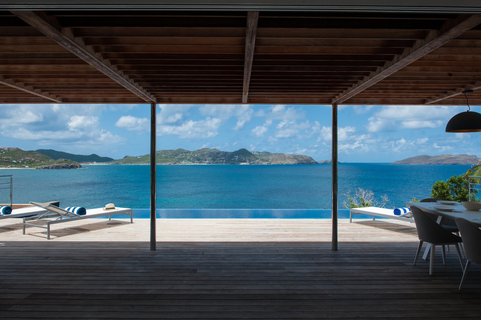 Renowned local architect Francois Pecard was the mastermind behind Villa Pointe Milou (POM), a newly built property on the island’s wild northeastern coast. The luxury rental home is airy and easy to live in. Throughout, it is true to the spirit of St. Barth and the Caribbean lifestyle.