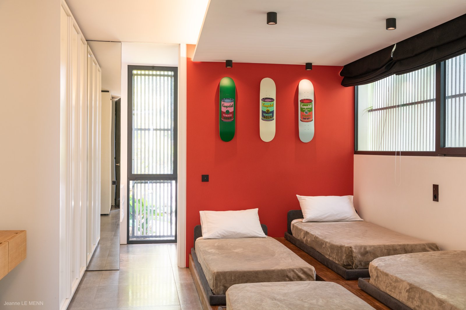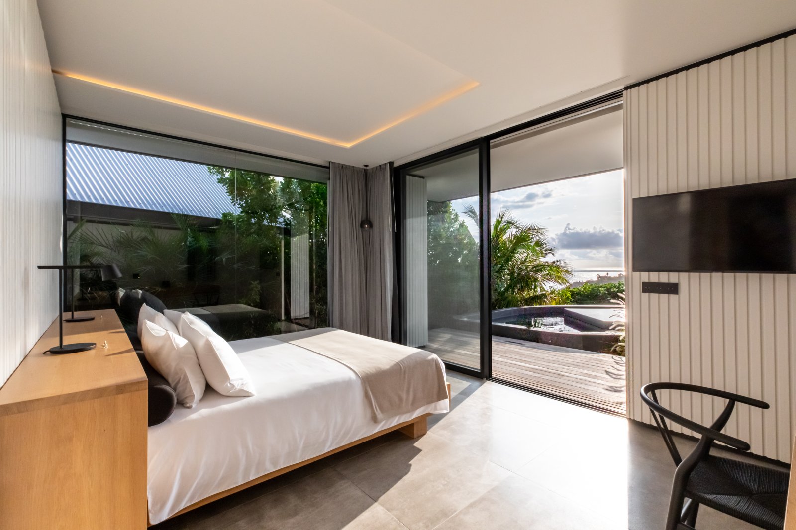 The villa comprises of four identical master bedrooms with ensuite bathrooms, making it ideal for groups of friends or families. Included in the four-bedroom-rate is the children’s room with six beds and a staff room with two beds, both with their own bathrooms. Villa Valentina can be rented in conjunction with the nearby one-bedroom Villa Bonbonniere for a total of five master bedrooms.