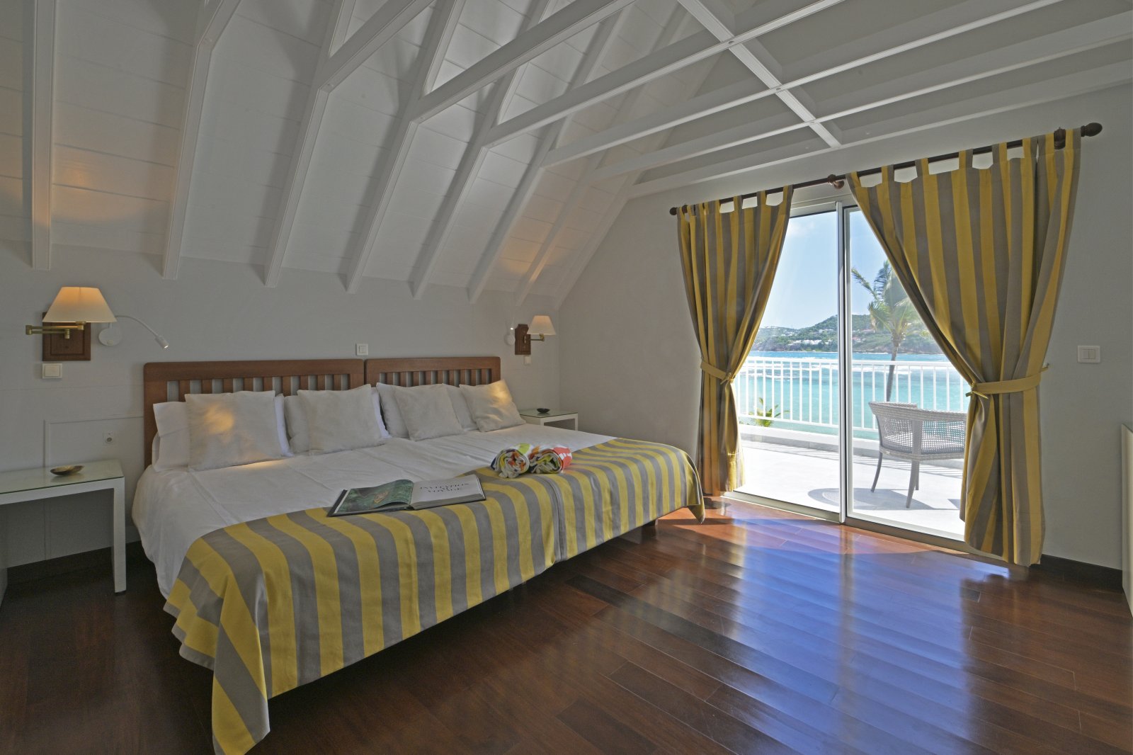 Similar in design and furnishings to its neighboring bungalows, Villa Val André and Villa Cap Frehél, Villa Dahouët (RLD1) is the ideal spot for those seeking a picture-perfect spot for a St. Barth idyll. Right on the beach at the far end of St. Jean Bay, Villa RLD1 looks out over the waves breaking on the reef, windsurfers gliding across the water, and the vision of the blue Atlantic beyond.