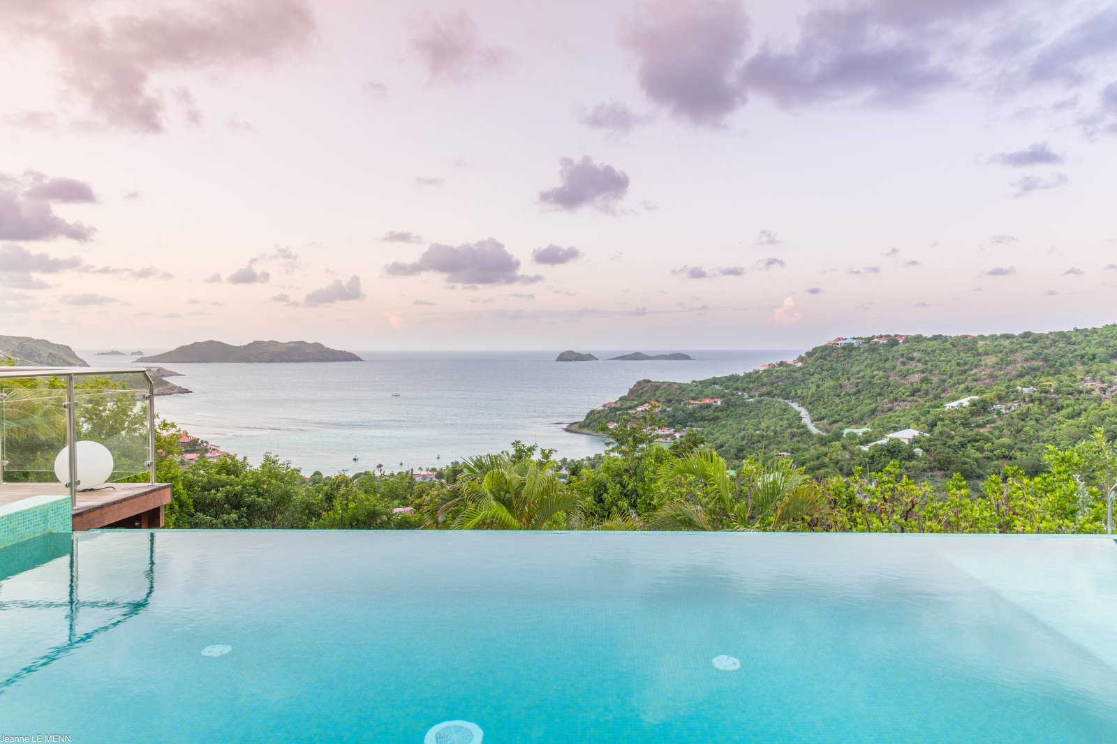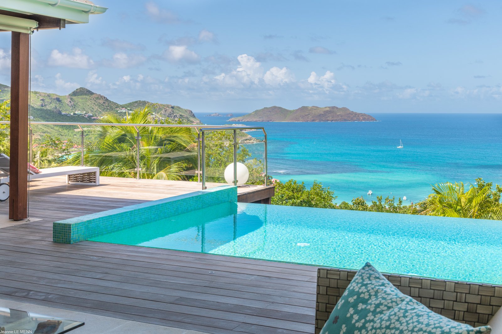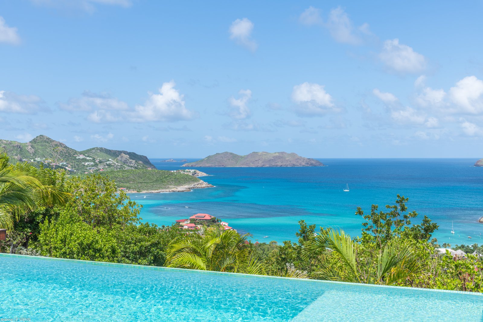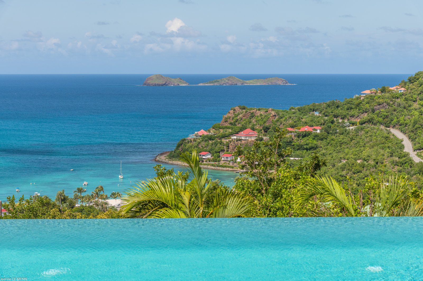 From a high vantage point on the hillside of St. Jean, Villa Isia (LIS) looks out over a breathtaking expanse of clear, blue water to the islets in the distance. Chic and modern in design and decor, and with advantages like a well-equipped kitchen (wine cellar available in high seaon) and a glistening blue infinity heated pool, this home will make relaxing simple.