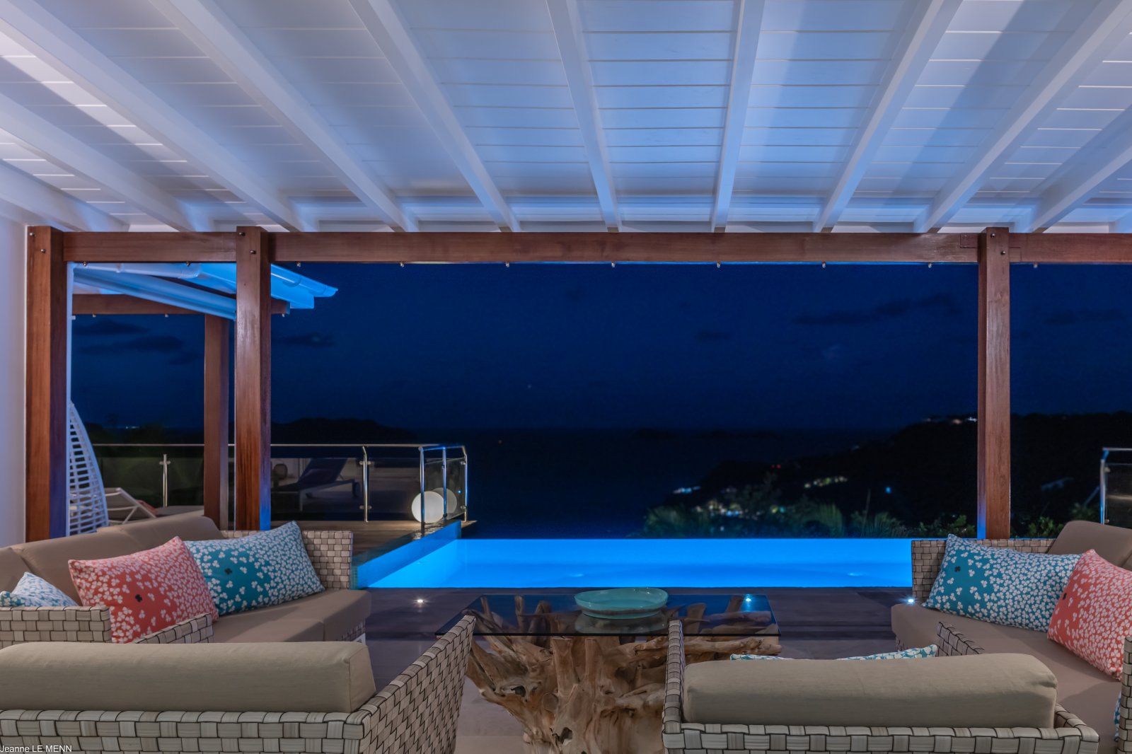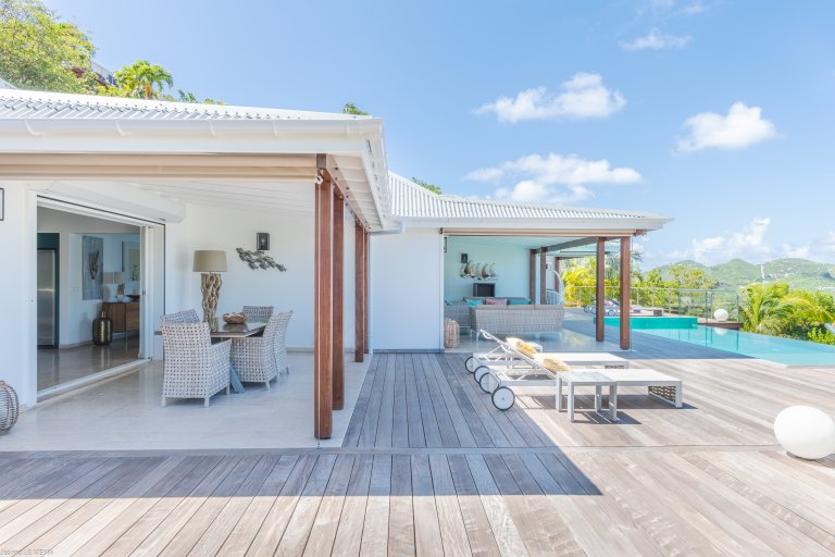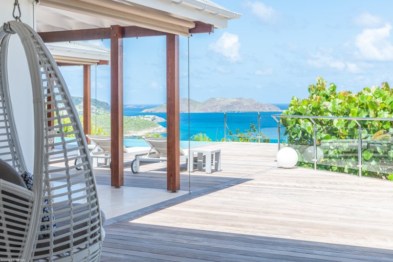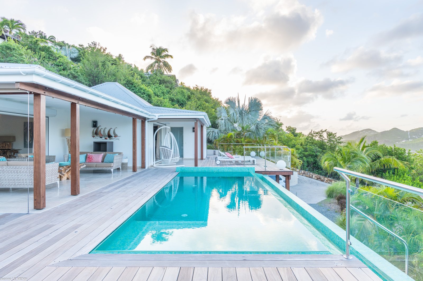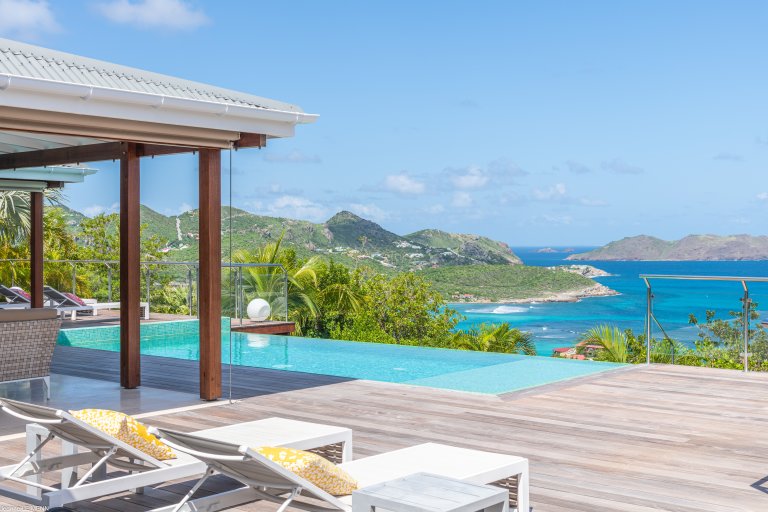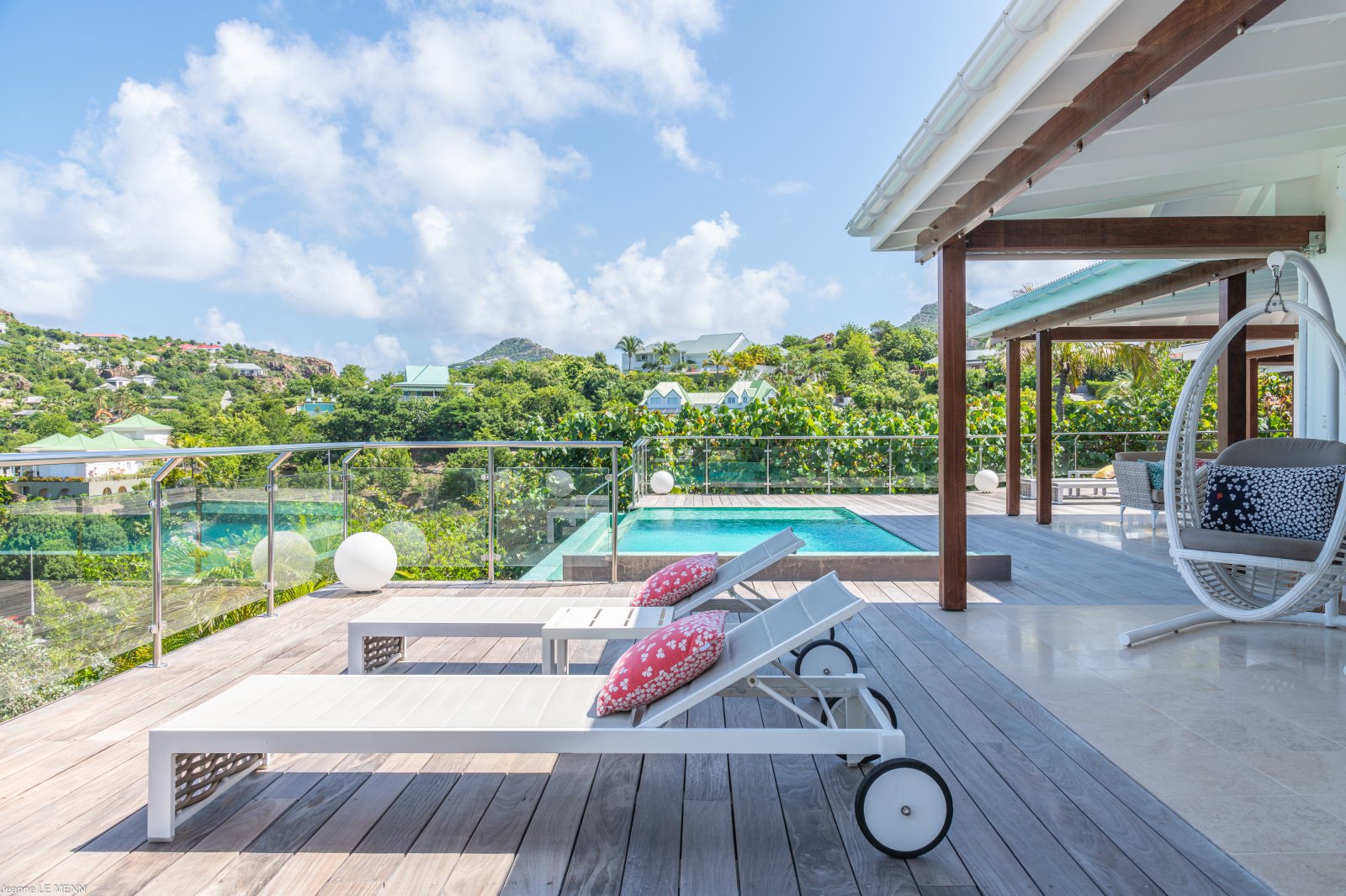 From a high vantage point on the hillside of St. Jean, Villa Isia (LIS) looks out over a breathtaking expanse of clear, blue water to the islets in the distance. Chic and modern in design and decor, and with advantages like a well-equipped kitchen (wine cellar available in high seaon) and a glistening blue infinity heated pool, this home will make relaxing simple.