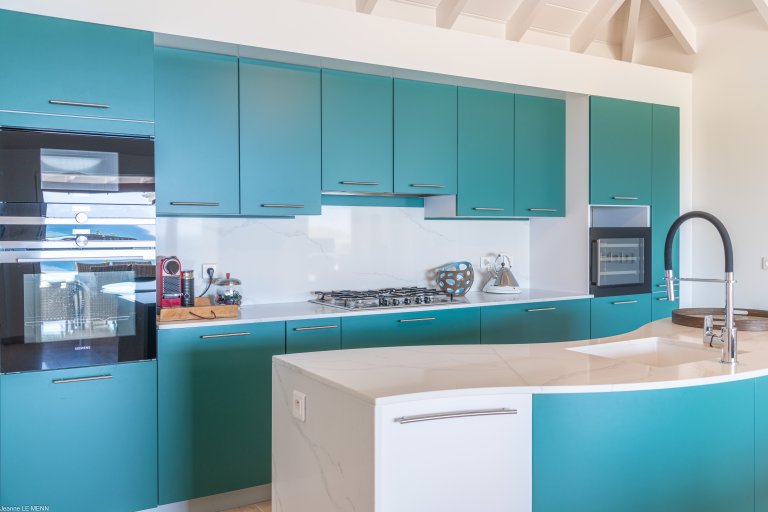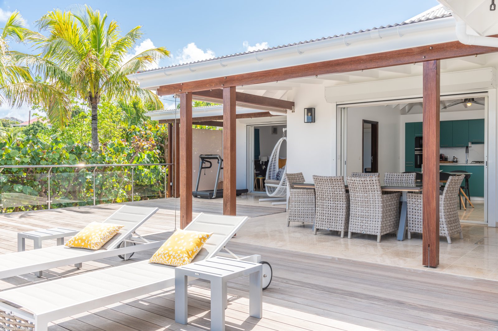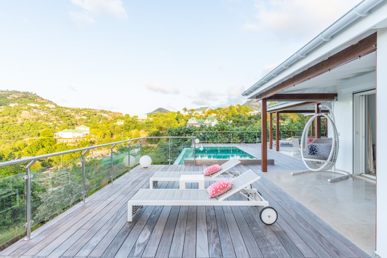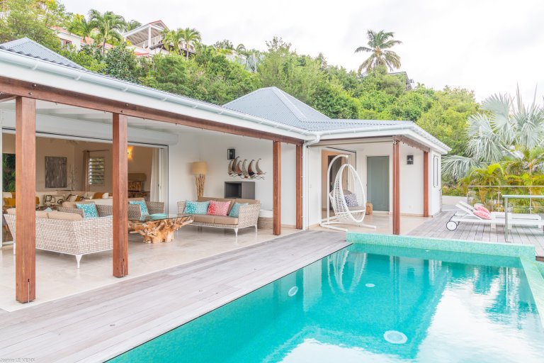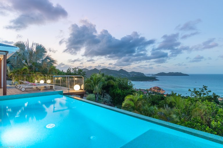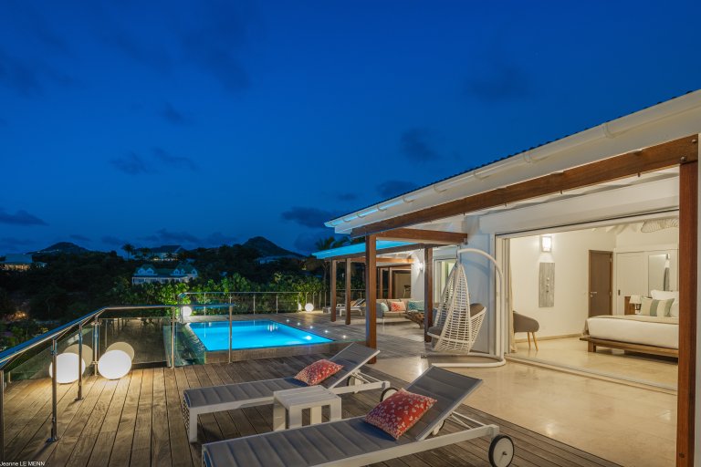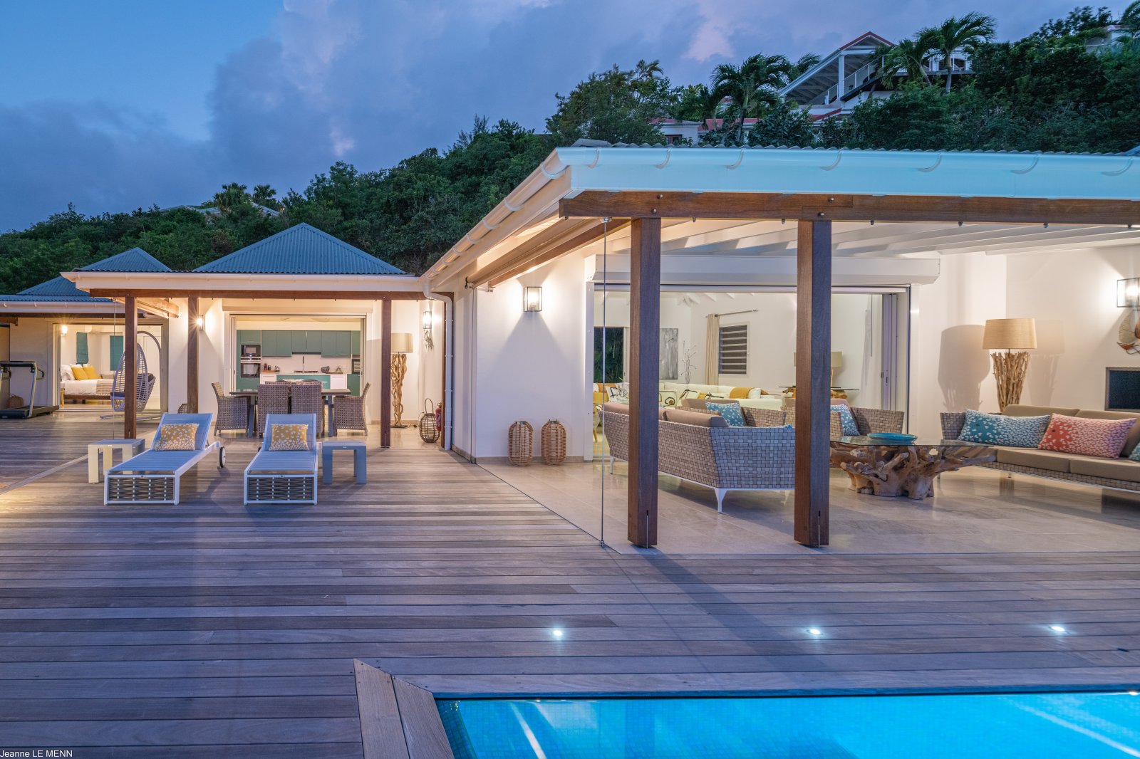From a high vantage point on the hillside of St. Jean, Villa Isia (LIS) looks out over a breathtaking expanse of clear, blue water to the islets in the distance. Chic and modern in design and decor, and with advantages like a well-equipped kitchen (wine cellar available in high seaon) and a glistening blue infinity heated pool, this home will make relaxing simple.