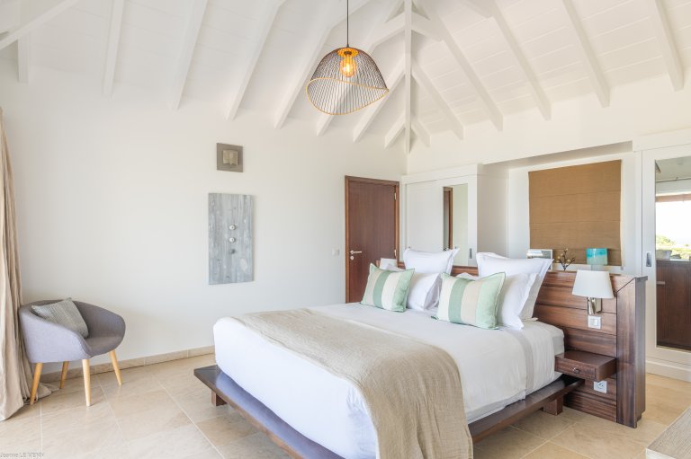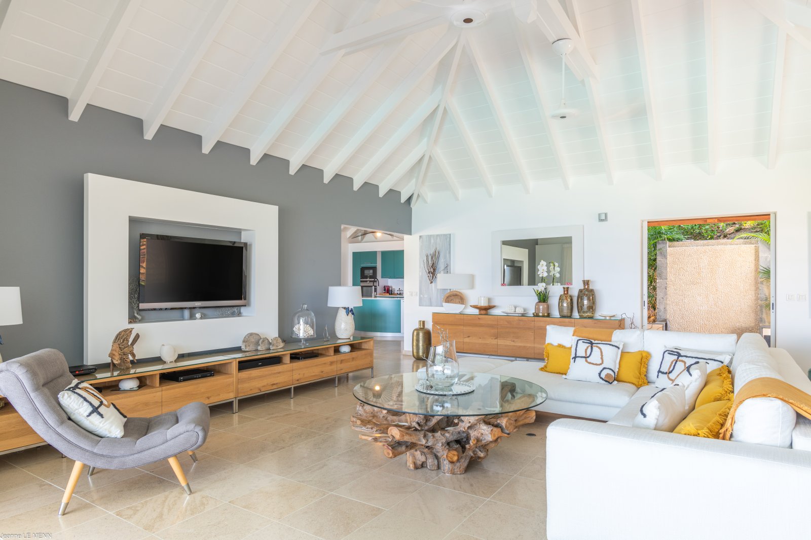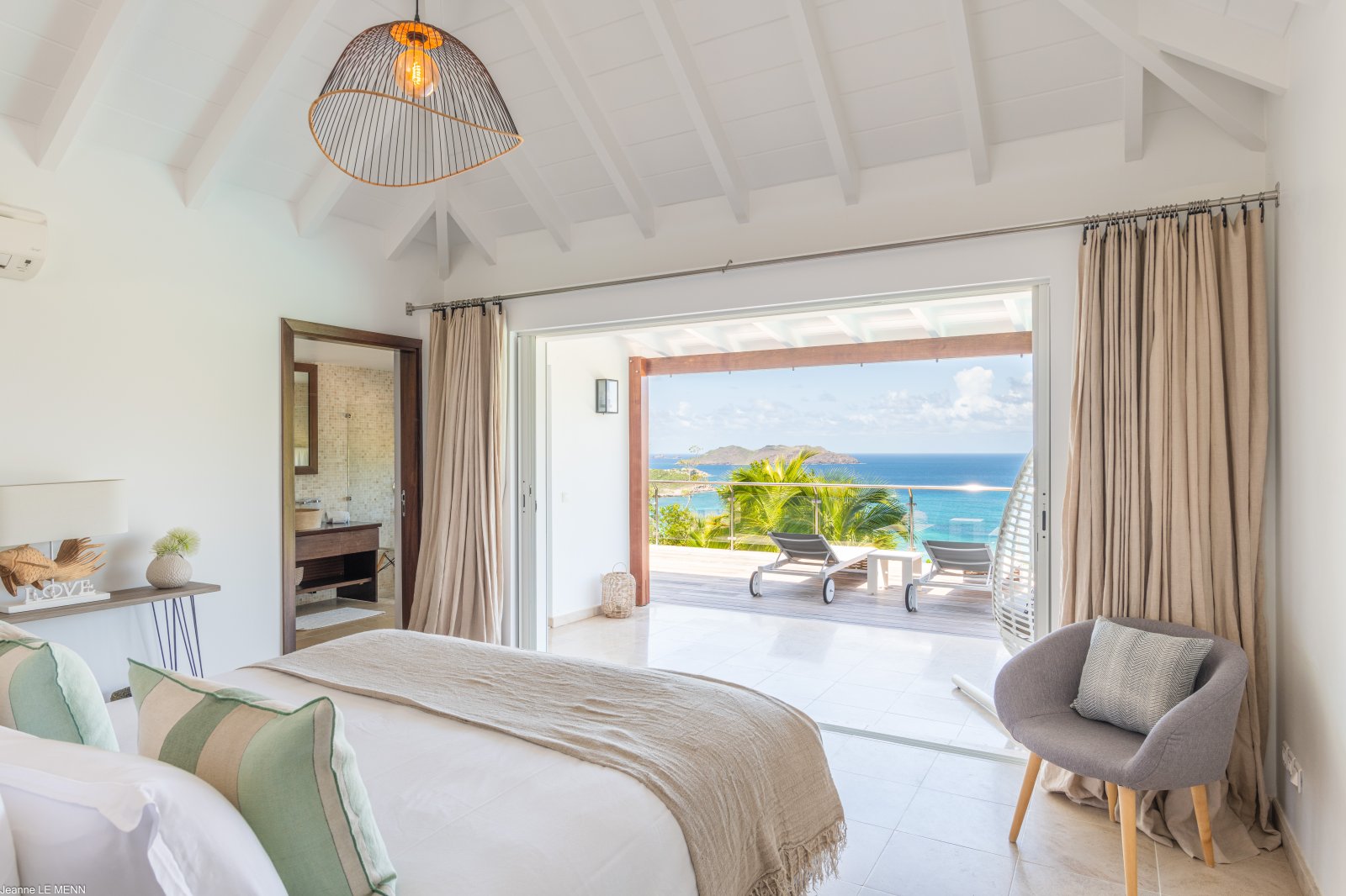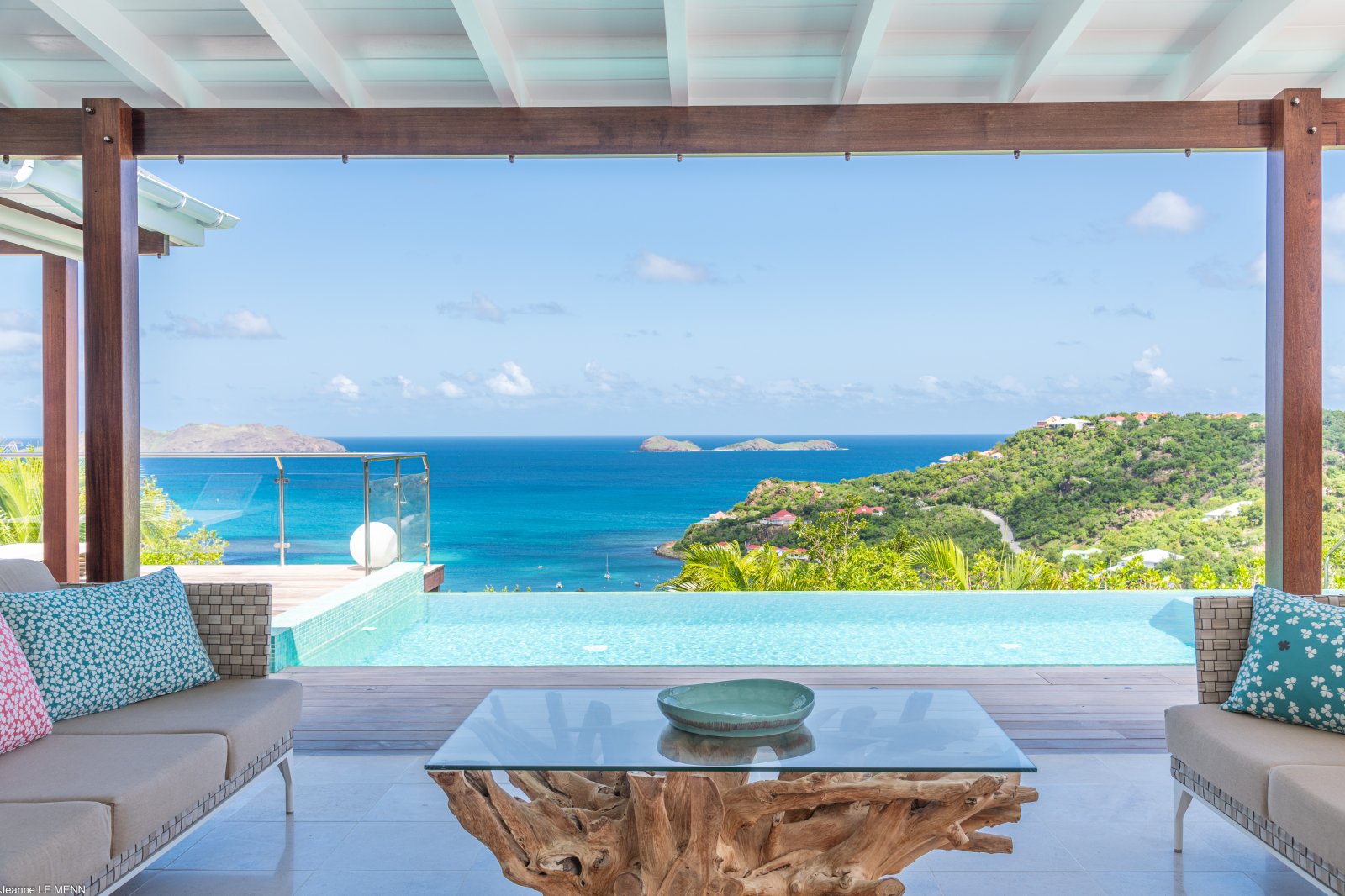 The bright, spacious living room looks out over the panoramic view, the gleaming infinity heated pool, and the terrace, which offers plenty of space for sunbathing, as well as shadier corners for an afternoon nap. The two bedrooms are of roughly equal size and amenities and are situated to either side of the living area for maximum privacy. Each opens to its own terrace area with seating and an ocean view. Tastefully decorated throughout, and with all modern amenities, Villa Isia (LIS) is a short drive from St Jean beach and the nearby shops and restaurants.